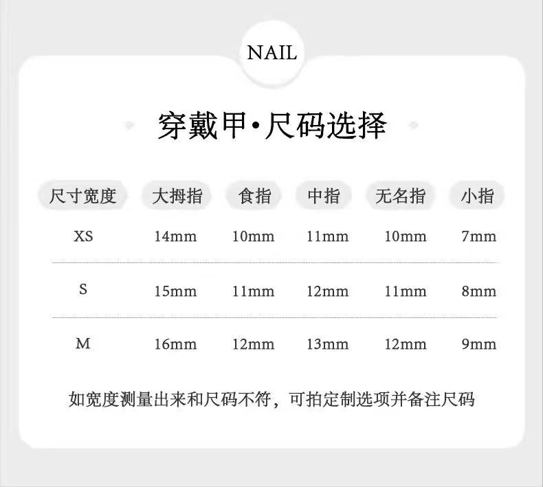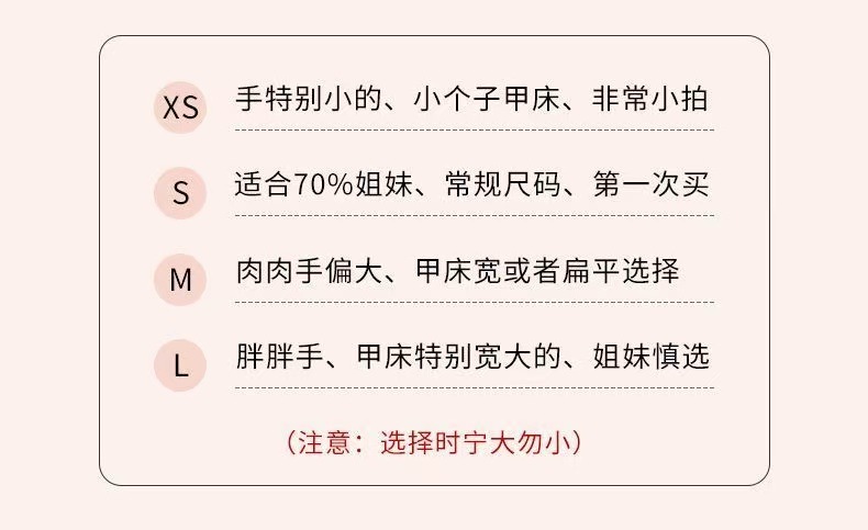 | m (fleshy hands/large or flat nail art bed choose)(M(肉肉手/甲床大或扁平选择)) | USD $0.37 | 99982 piece available |