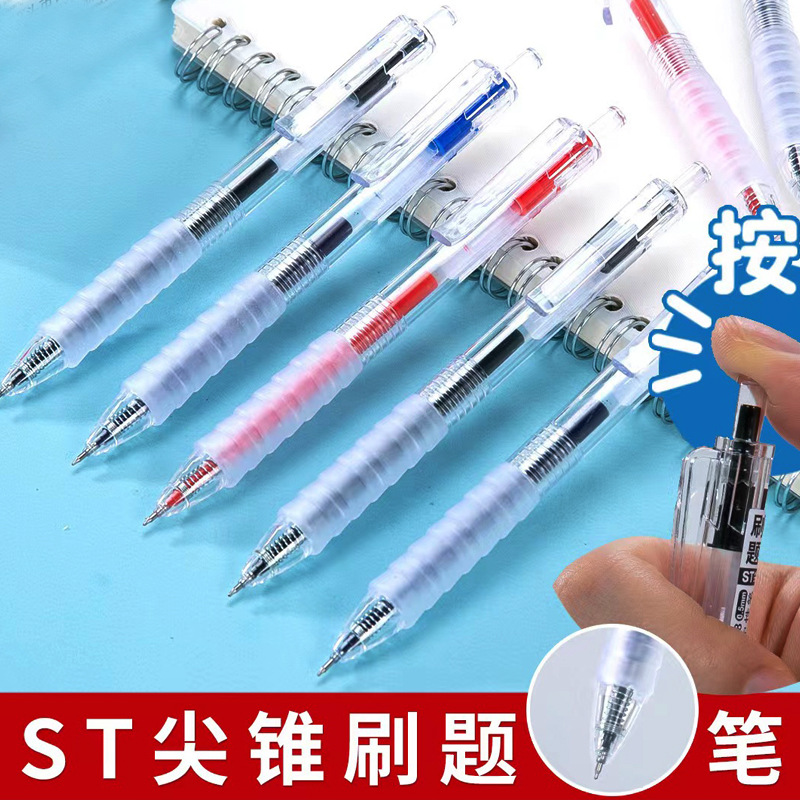 K35按动式中性笔按压圆珠笔红黑蓝子弹头签字笔办公学生碳素跳笔