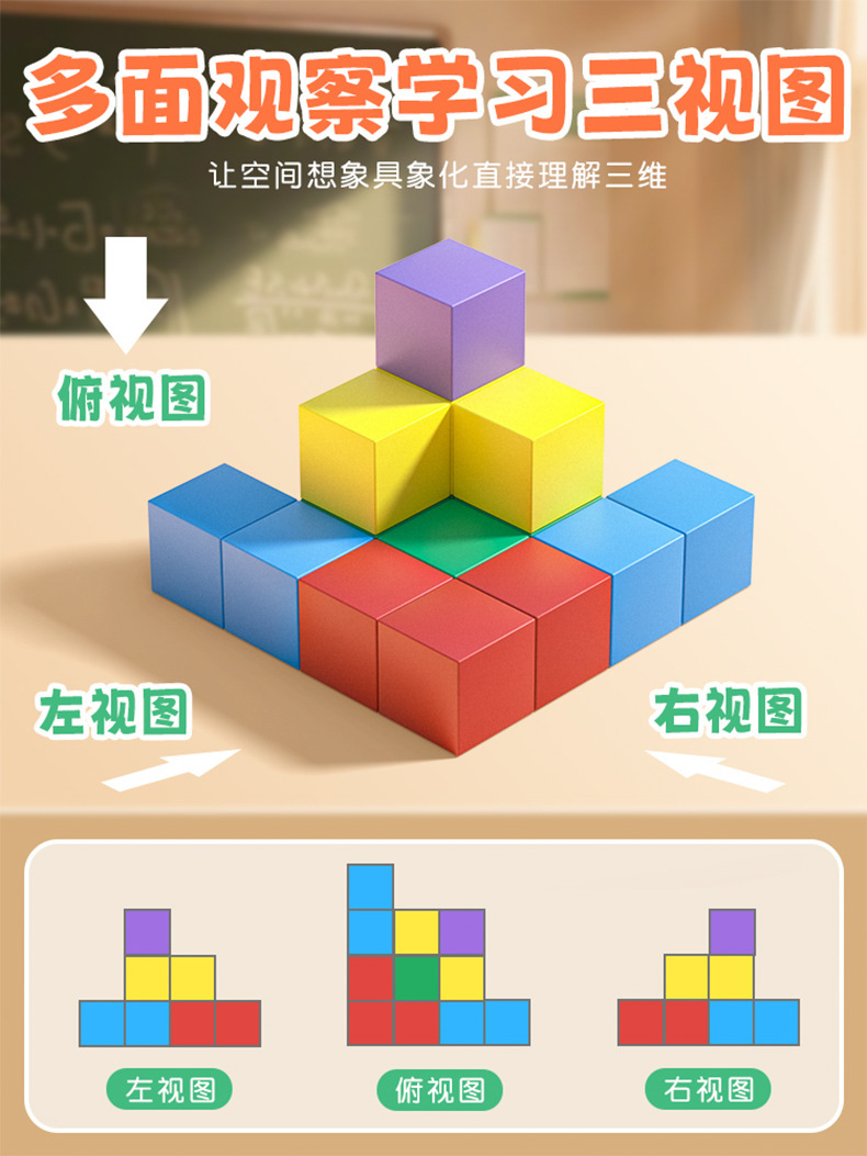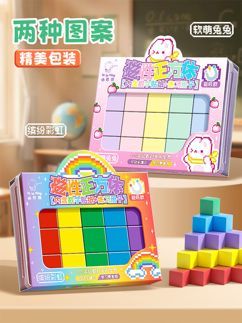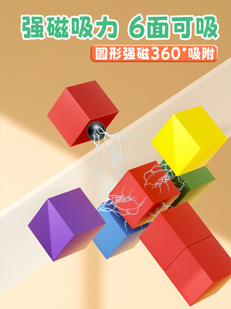 彩色磁性六面正方体教具磁力立体图形几何体模型益智数学教具积木