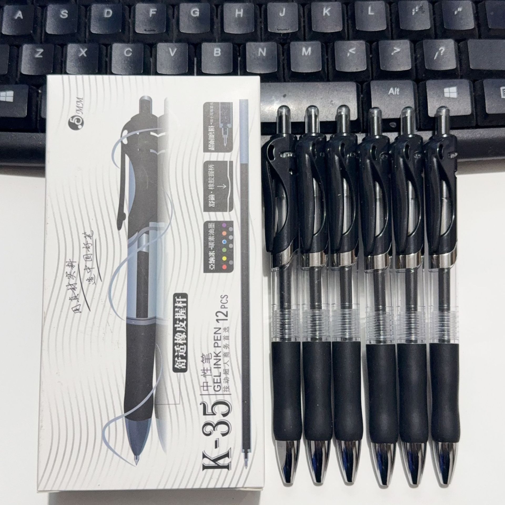 按动中性笔K35子弹头签字笔考试刷题黑笔文具圆珠笔水笔笔芯厂家