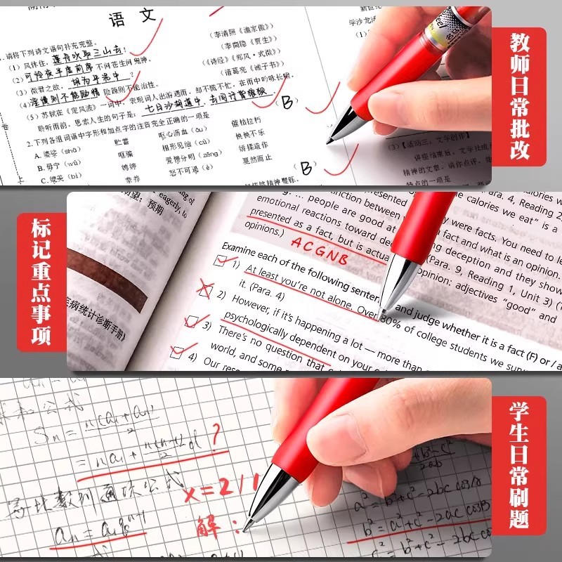 新款红笔学生专用红色中性笔老师批改作业按动0.5圆珠笔水笔签字
