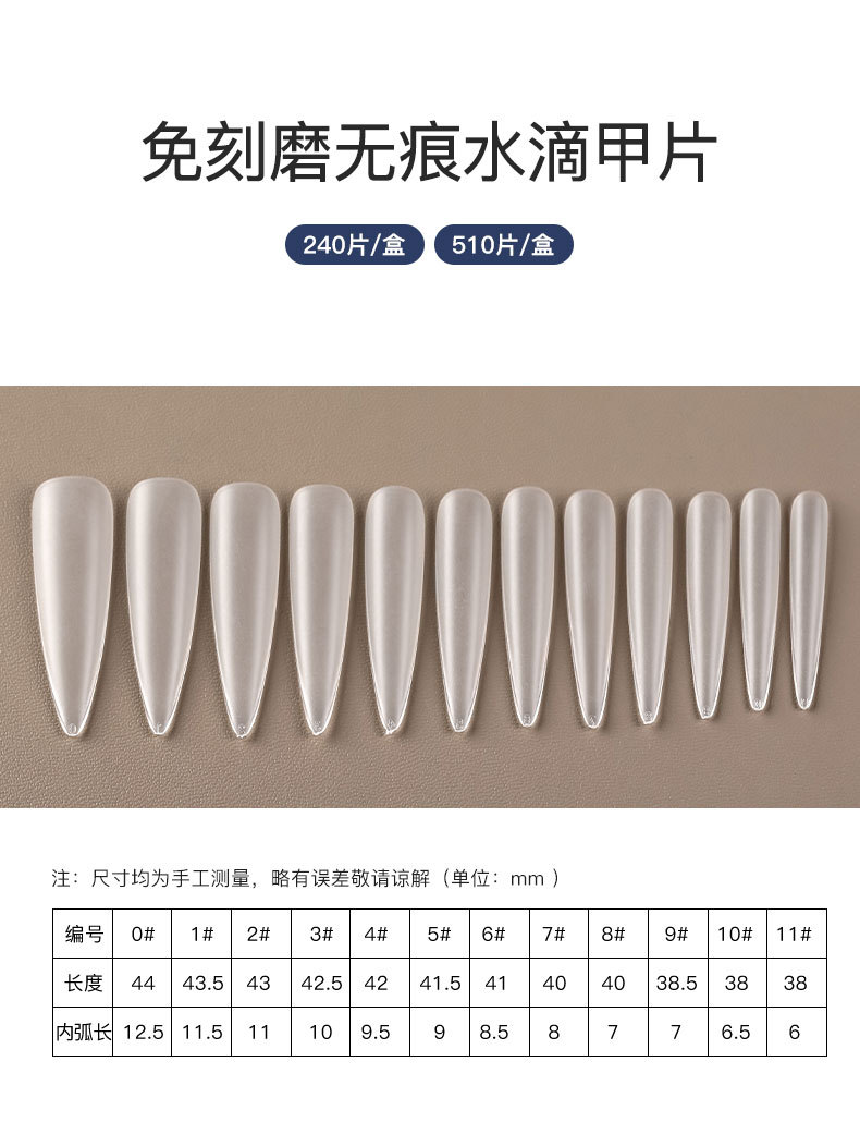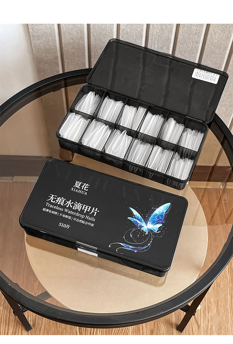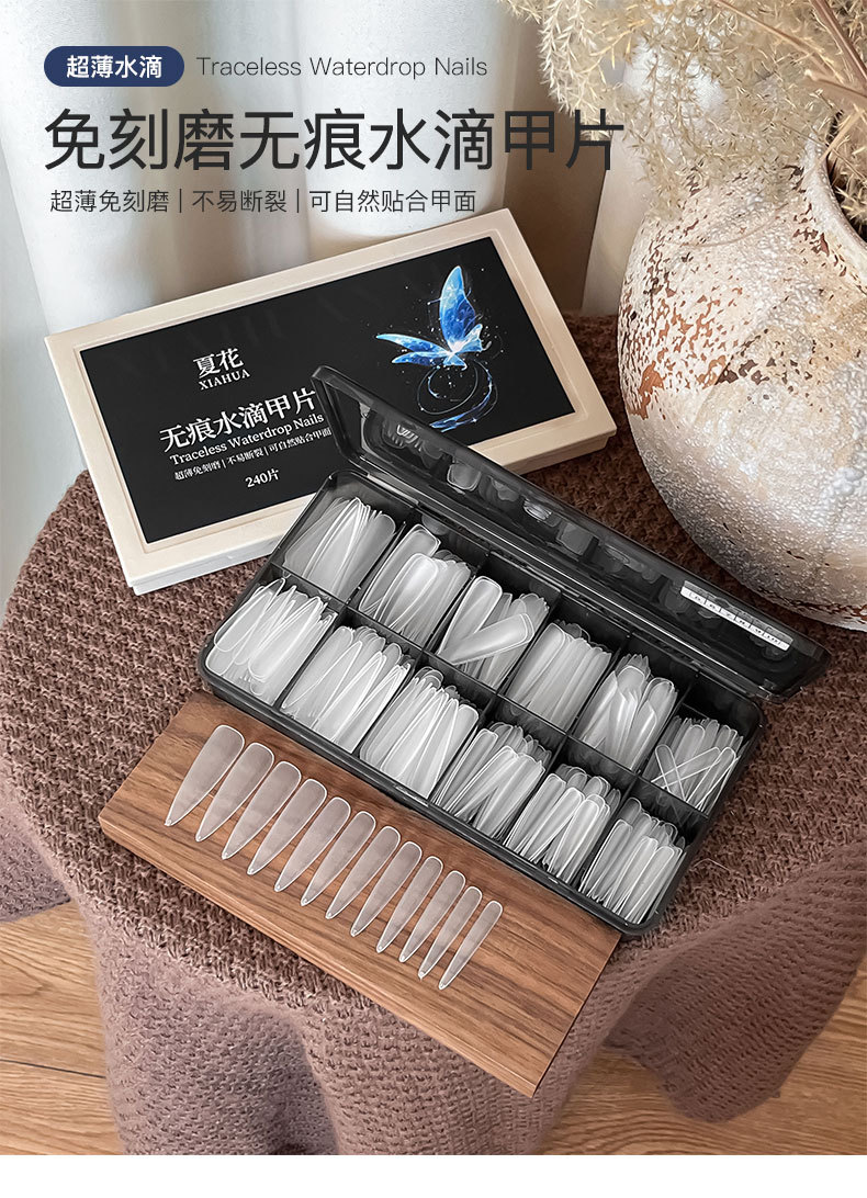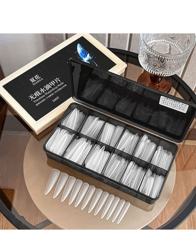 免刻磨无痕水滴甲片超薄磨砂梯形加长盒装美甲店专用指甲贴片批发