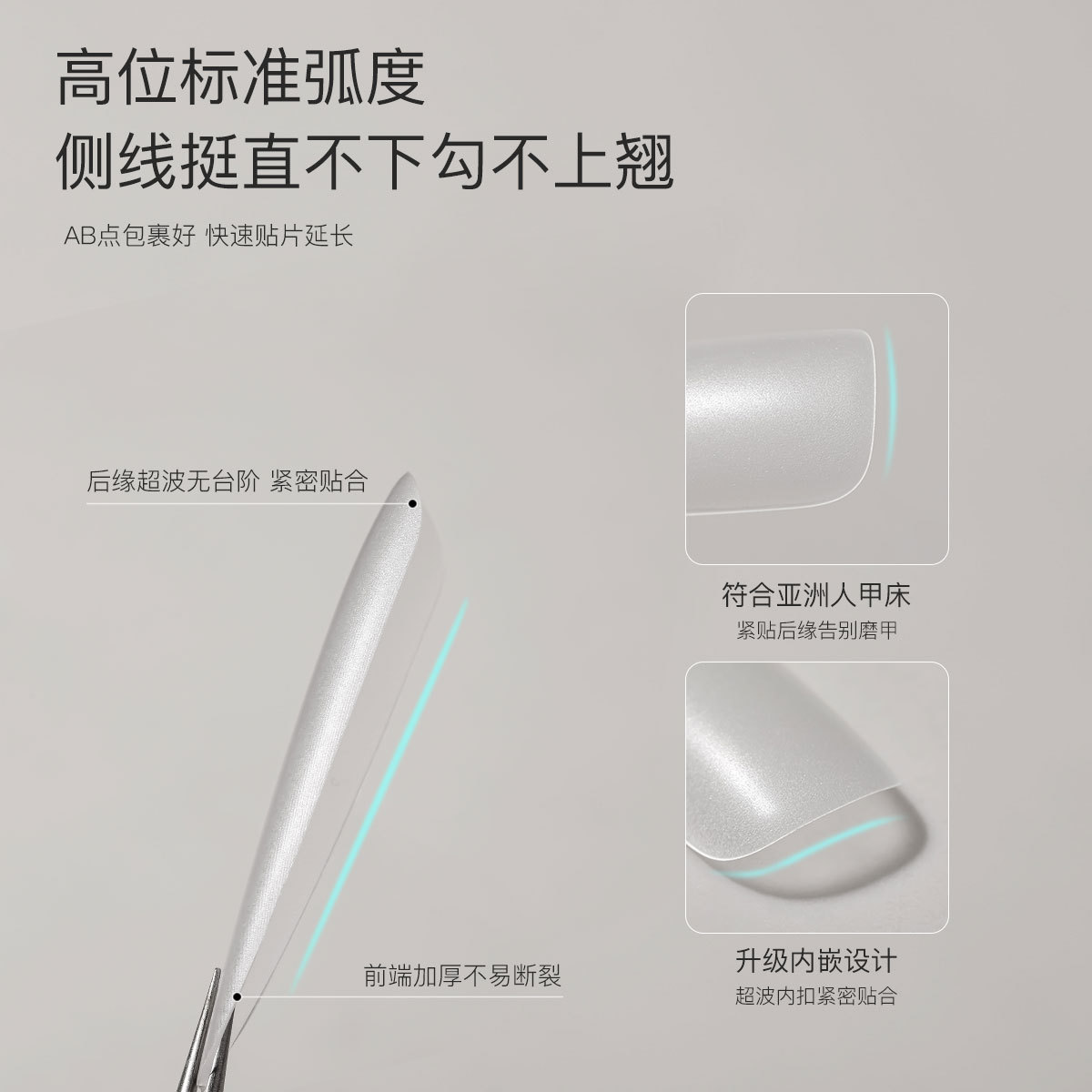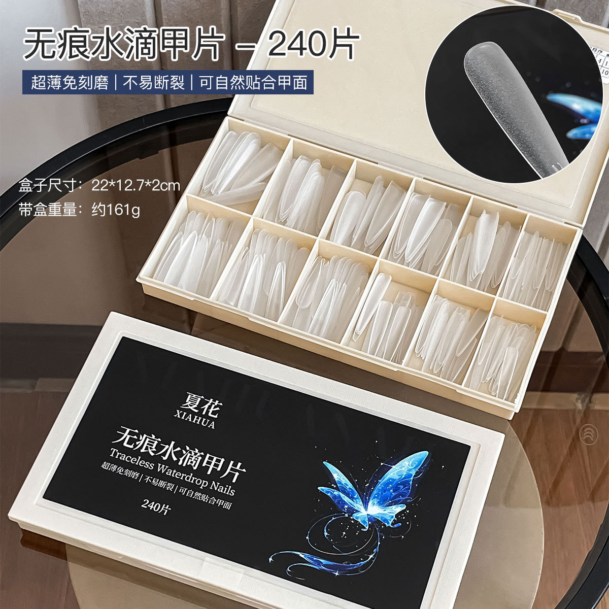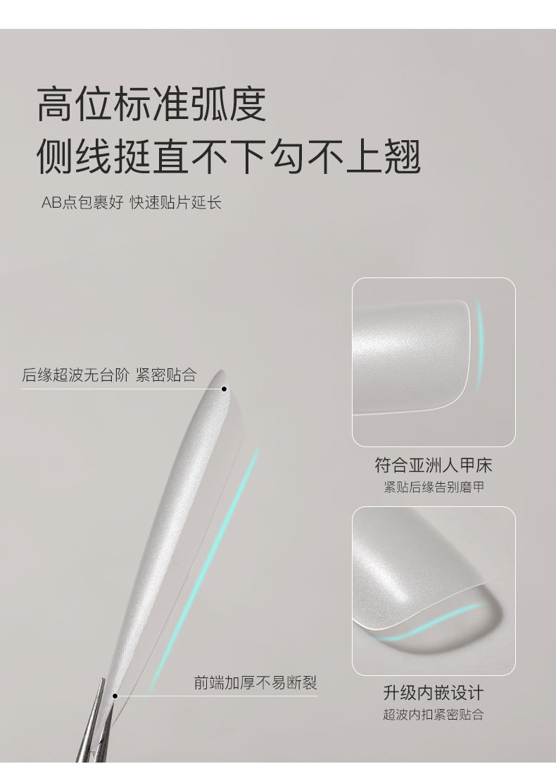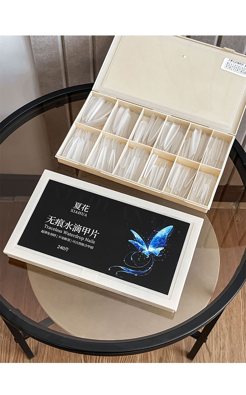 免刻磨无痕水滴甲片超薄磨砂梯形加长盒装美甲店专用指甲贴片批发