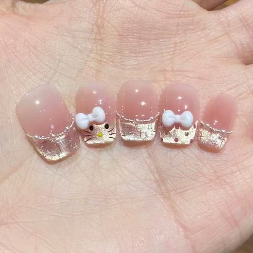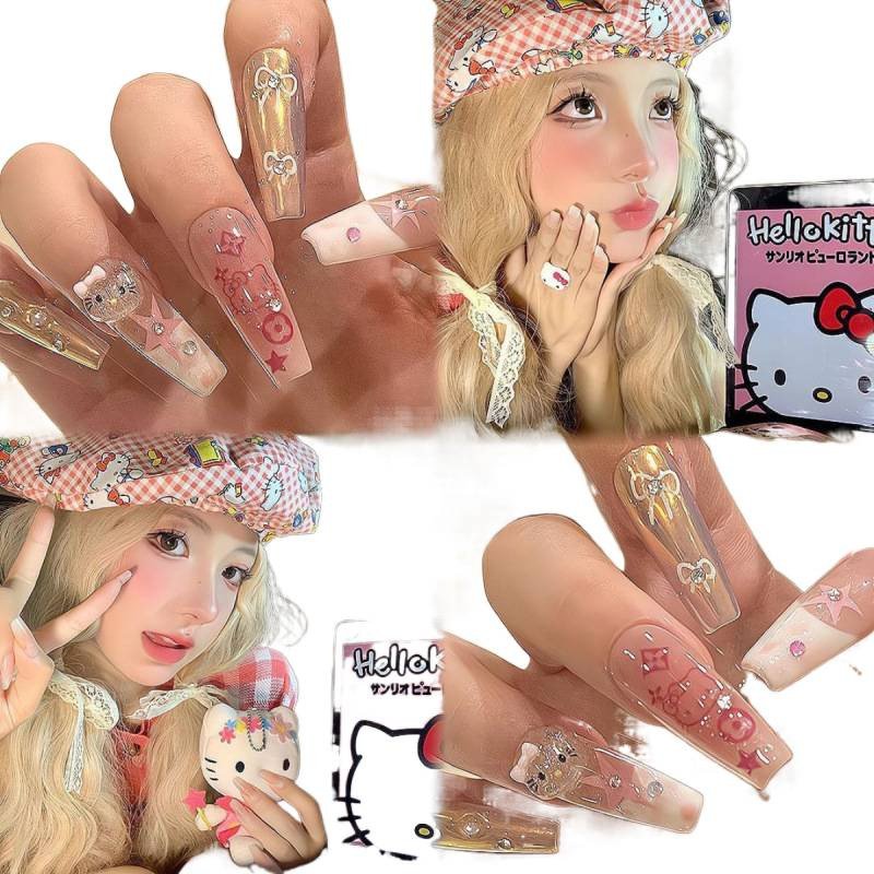 kitty美甲卡通可爱手工穿戴甲指甲爆款热卖长甲小红书hellokitty