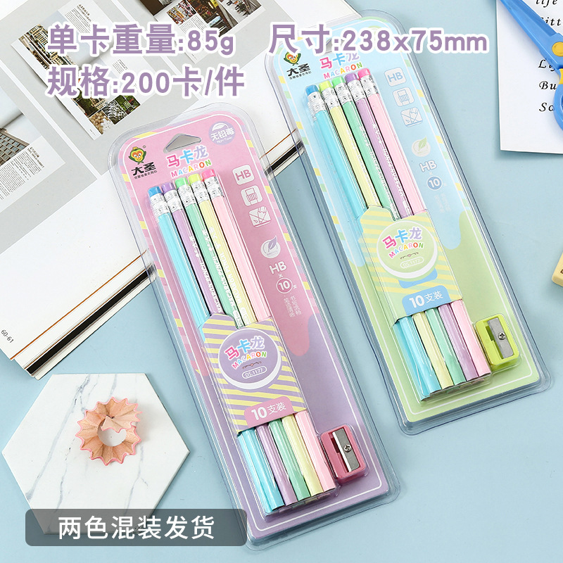 马卡龙铅笔卡通HB杨木带橡皮擦儿童幼儿园小学生练字笔文具批发