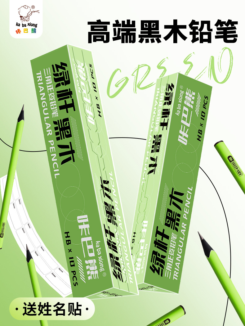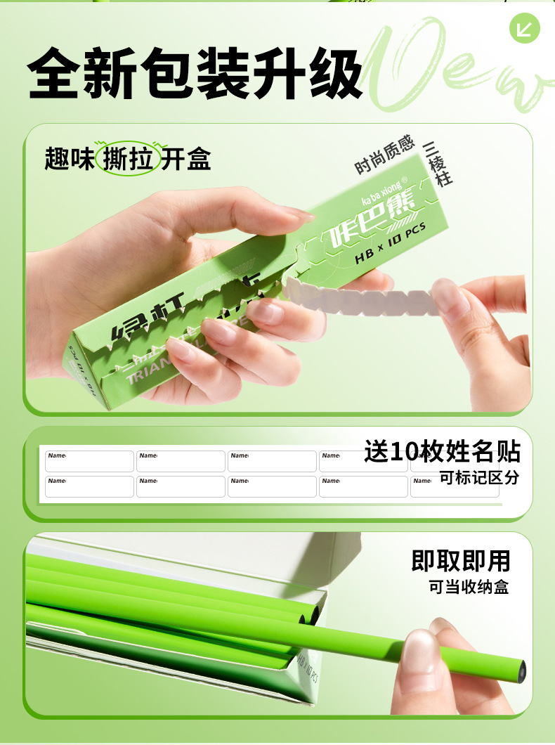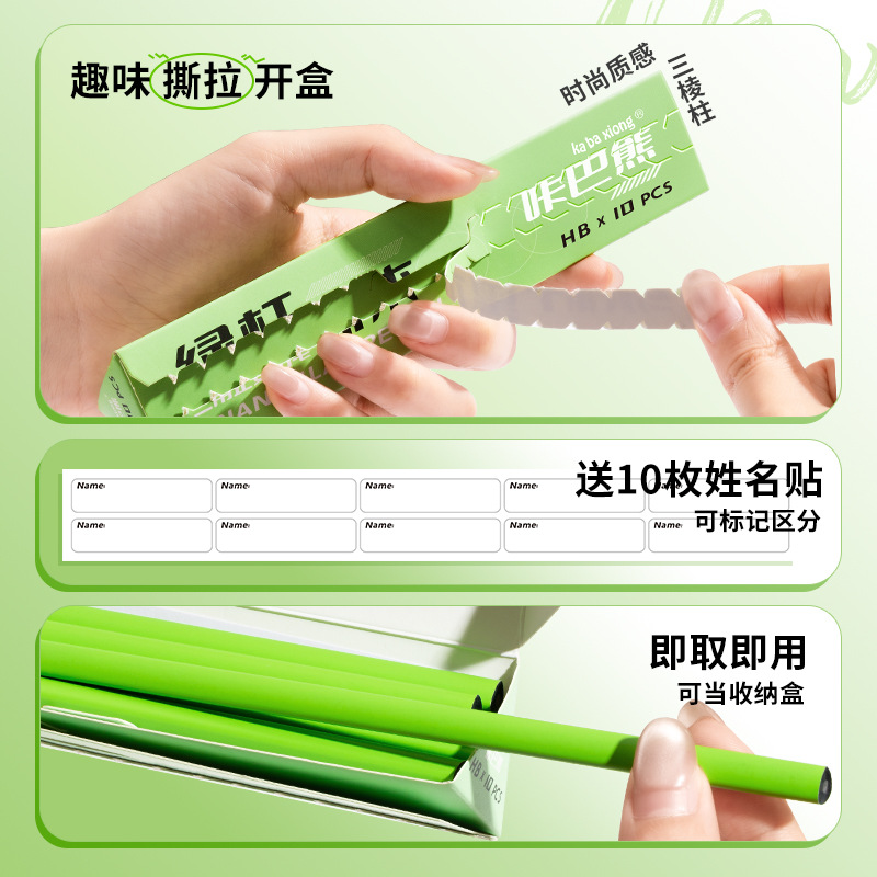 咔巴熊三角正姿铅笔HB小学生用一二年级儿童2B练字笔素描笔绘画笔