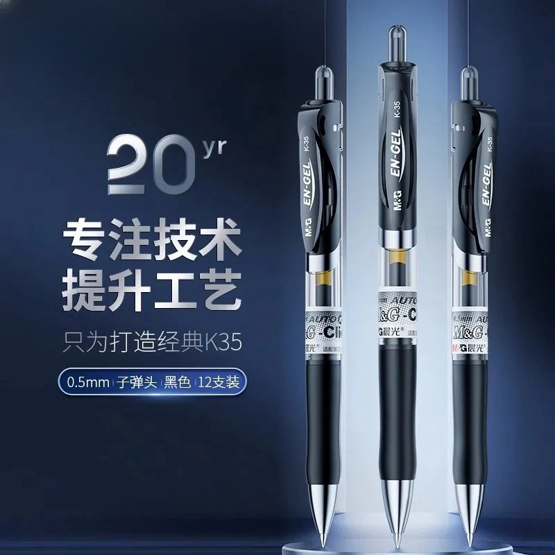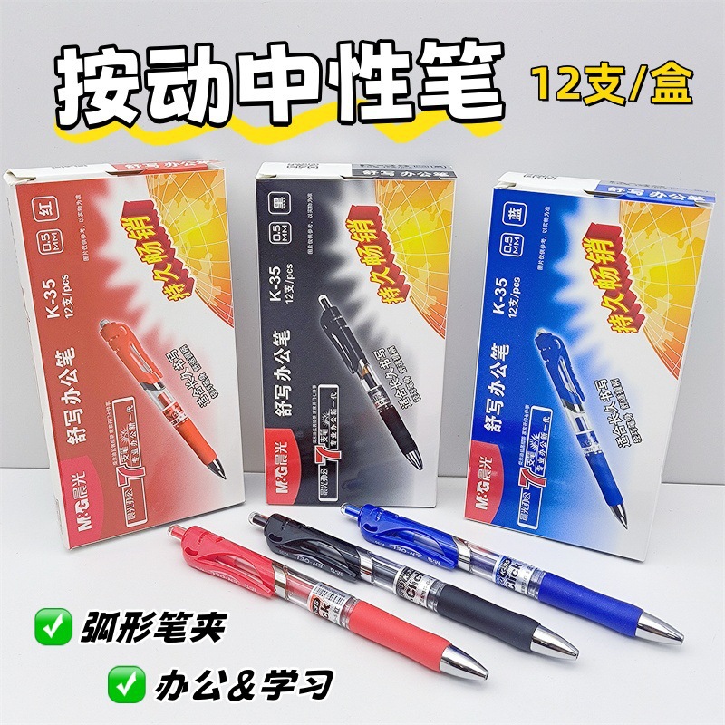 包邮晨光0.5mm中性笔k35子弹头笔红黑蓝色笔签字笔办公笔12支每盒