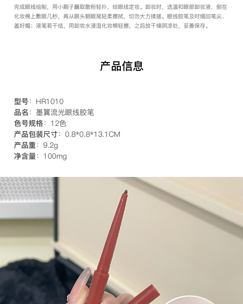 HERORANGE~墨翼流光眼线胶笔自然持久防水防汗卧蚕下至极细眼线笔