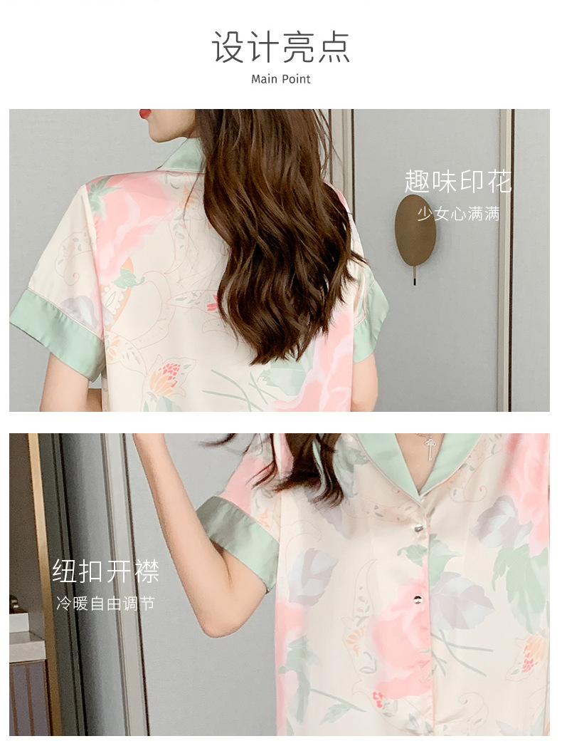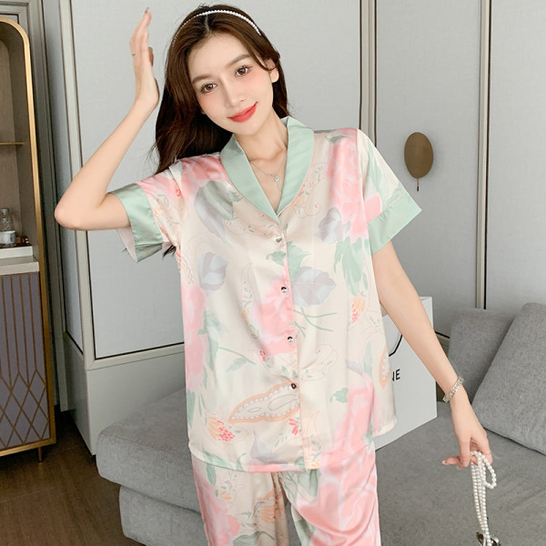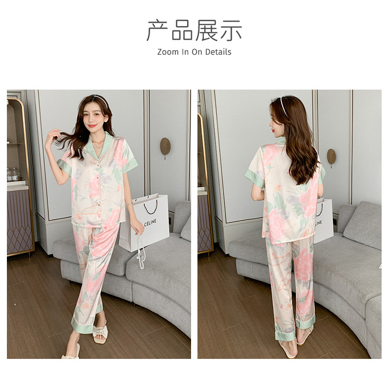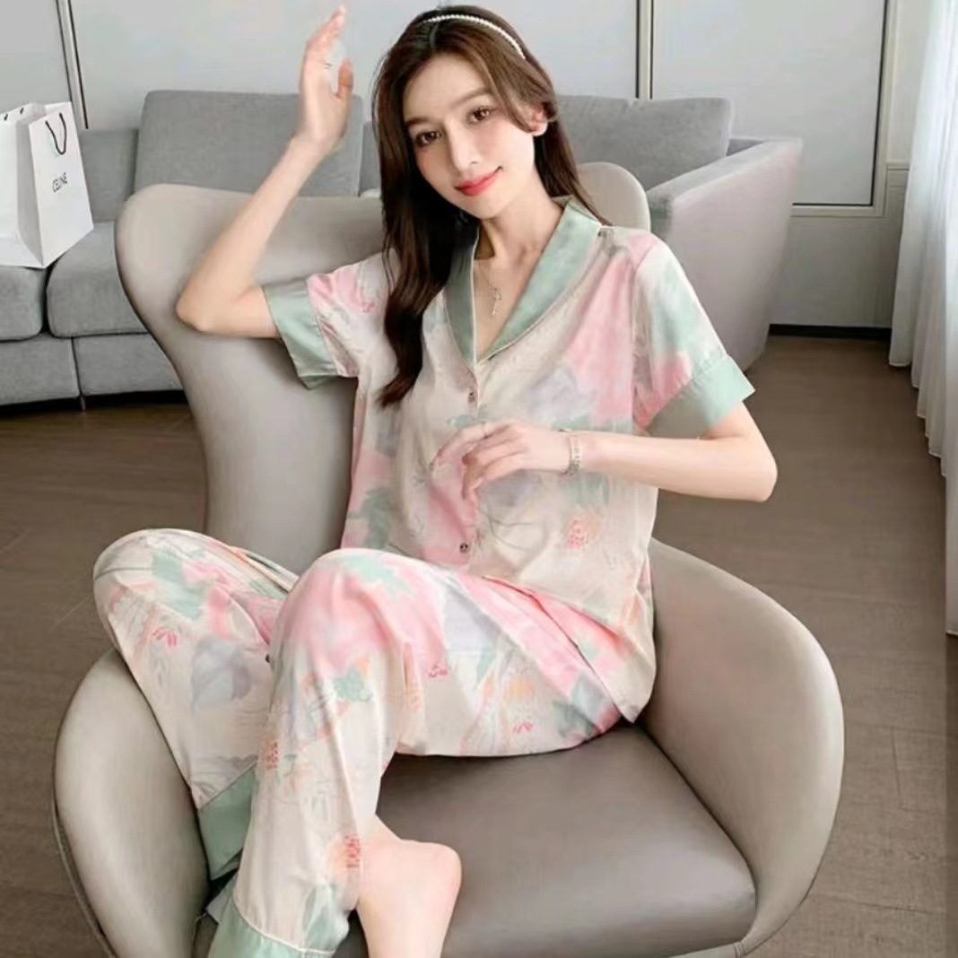 睡衣女直播春夏季短袖长裤宽松女士荷花家居服两件套外穿高级感