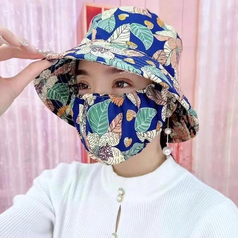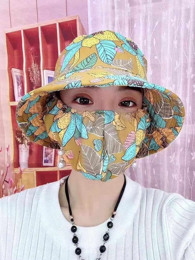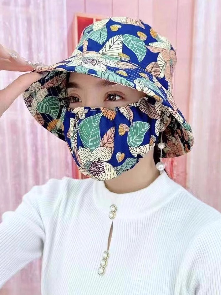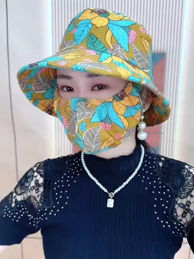 2026新款印花防晒帽子夏季薄款透气户外遮阳帽骑行护脸渔夫帽