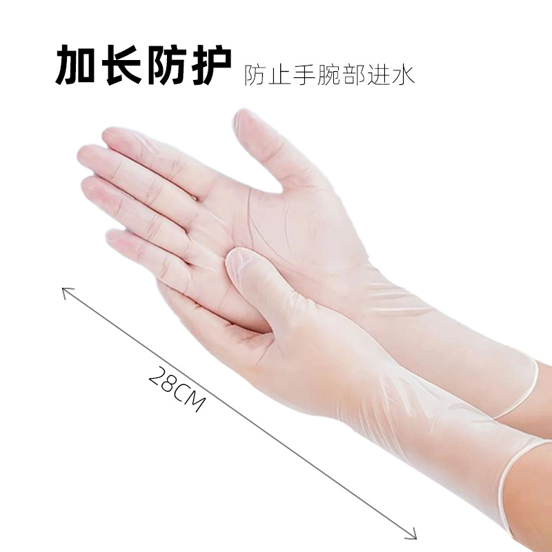 现货批发袋装食品级PVC一次性手套 透明无粉厨房劳保加长防护手套