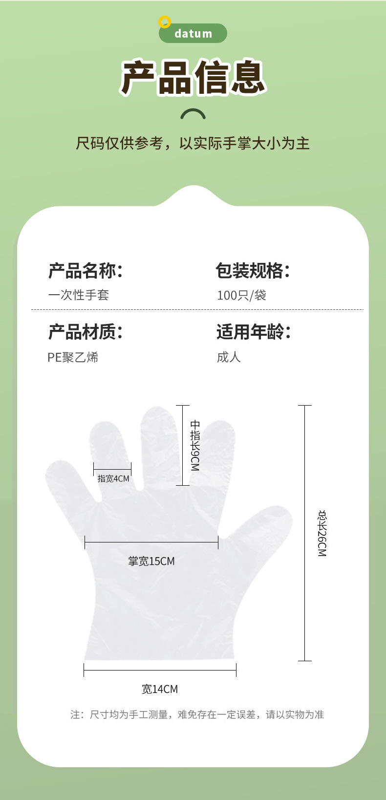 一次性手套独包小包 餐饮店外卖披萨炸鸡专用PE塑料独立包装手套