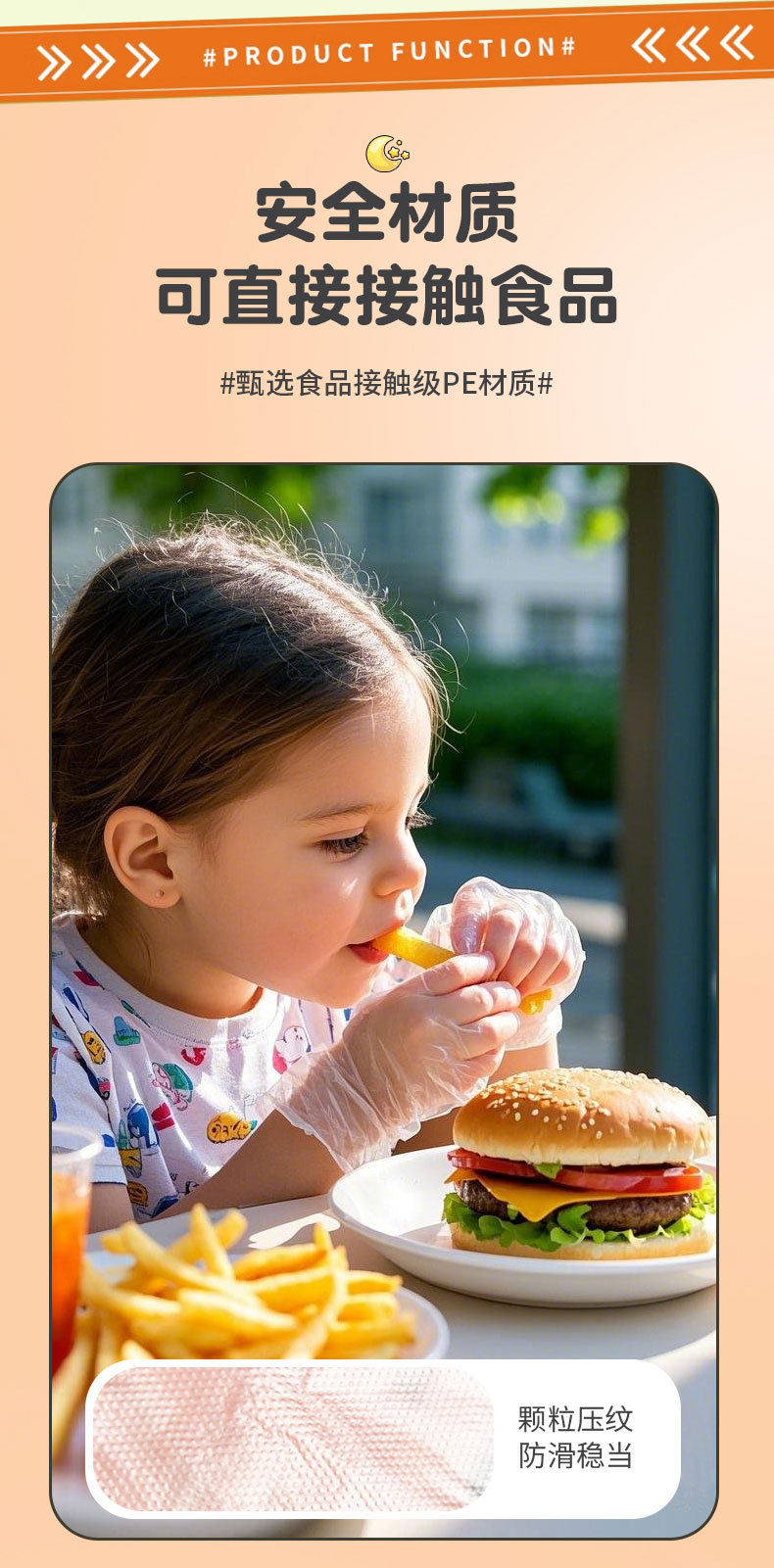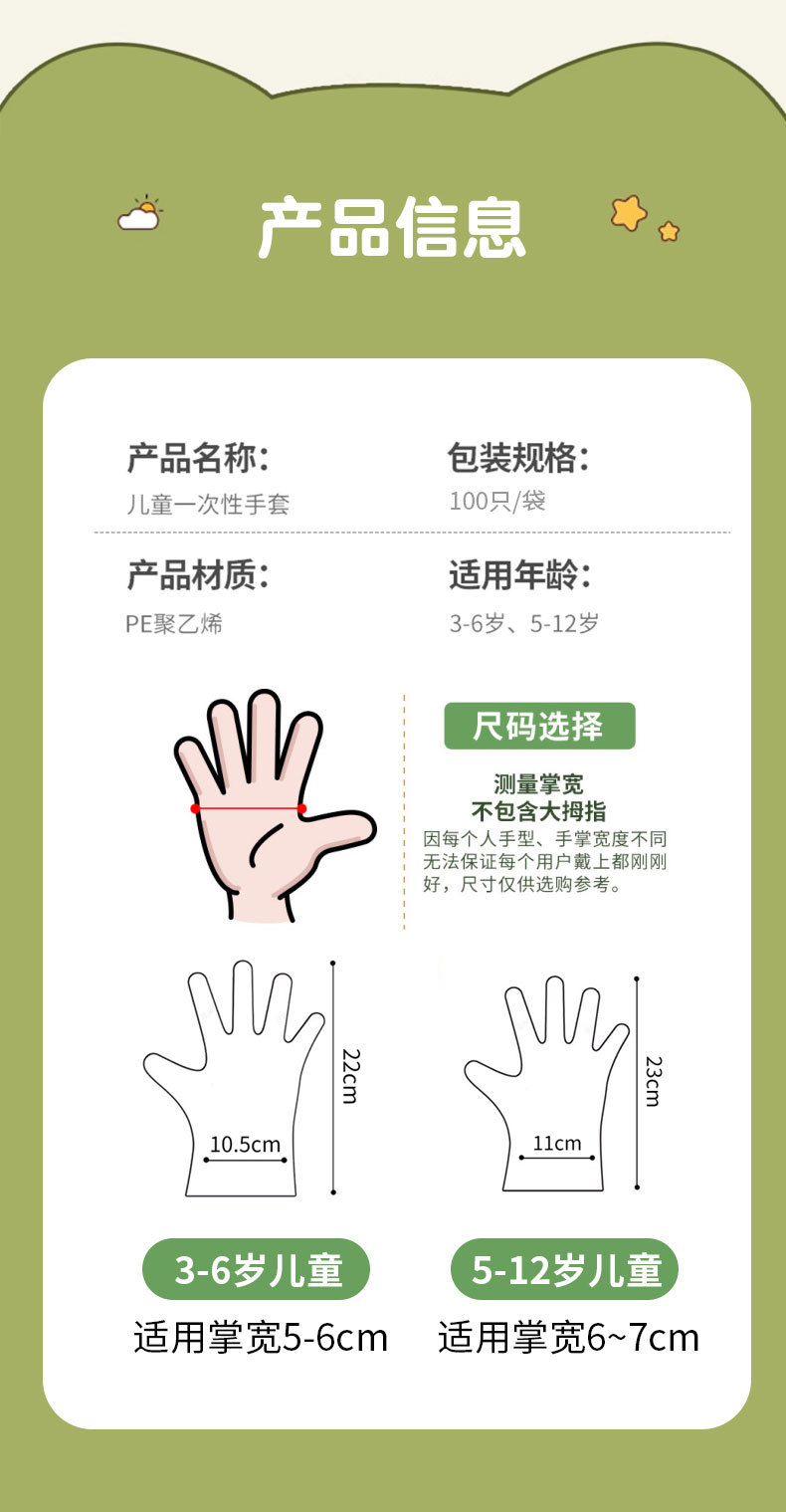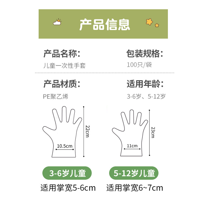 一次性儿童手套食品级独立包装宝宝小朋友小孩塑料手套加厚100只