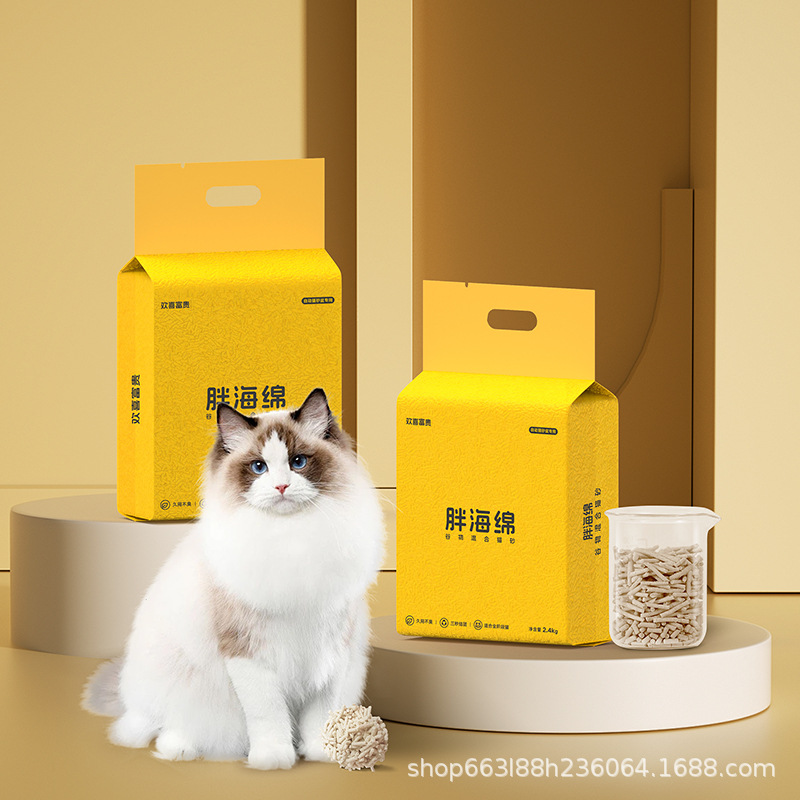 有陪同配方欢喜富贵胖海绵谷物混合猫砂除臭吸水结团网易净味无尘
