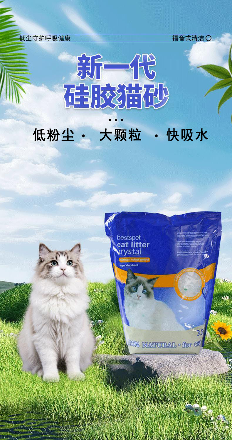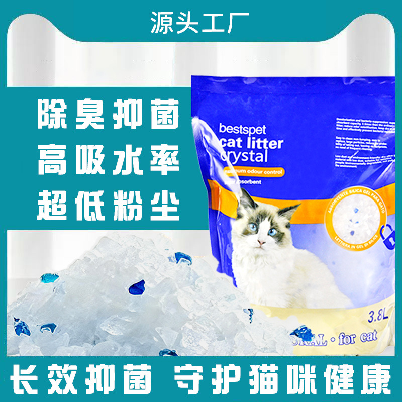 源头工厂代发大颗粒水晶猫砂除异味吸附低尘宠物用品批发硅胶猫砂