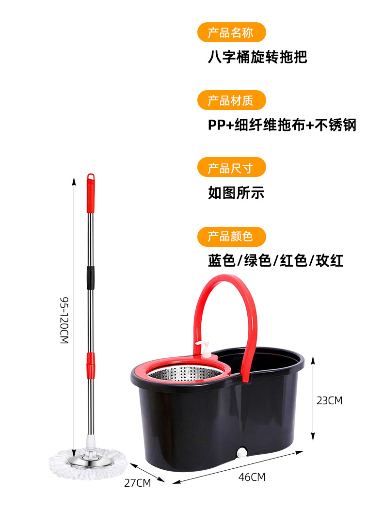 金属篮八字桶自动甩干懒人墩布双驱动免手洗旋转八字桶拖把套装