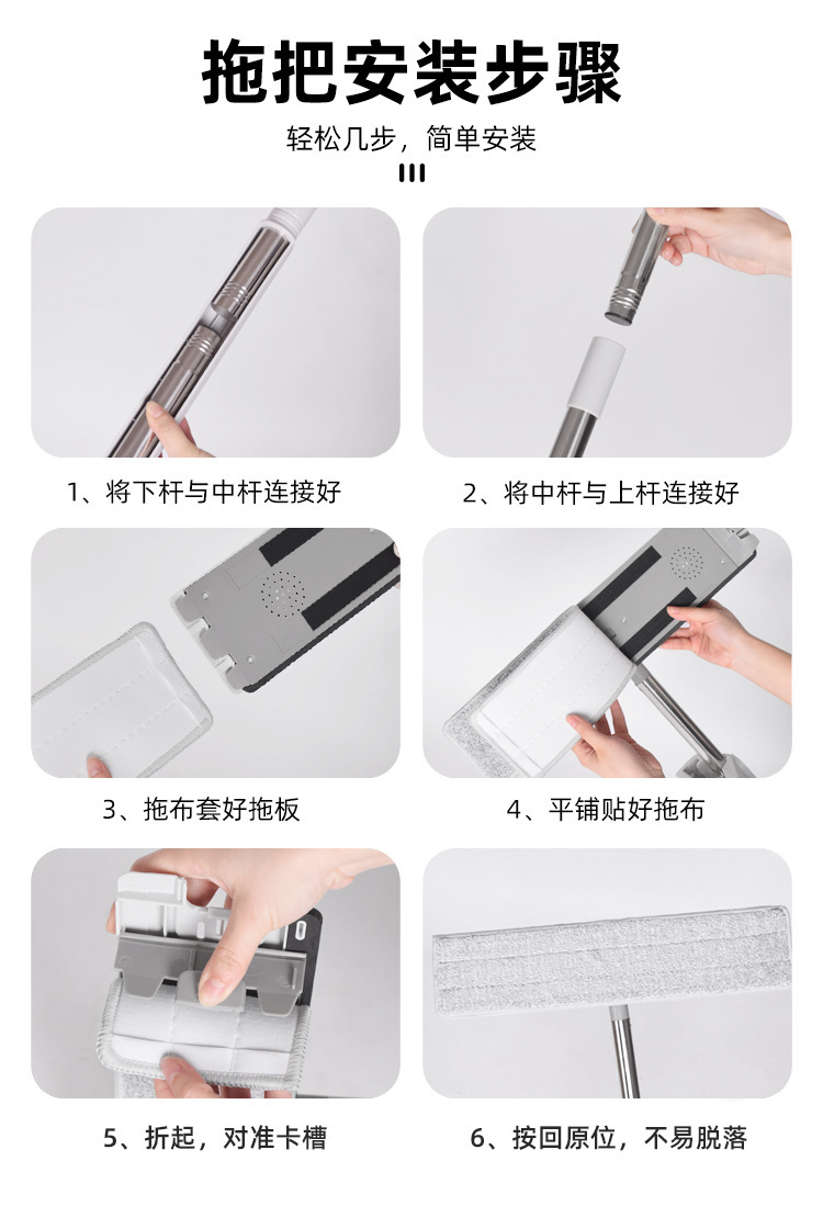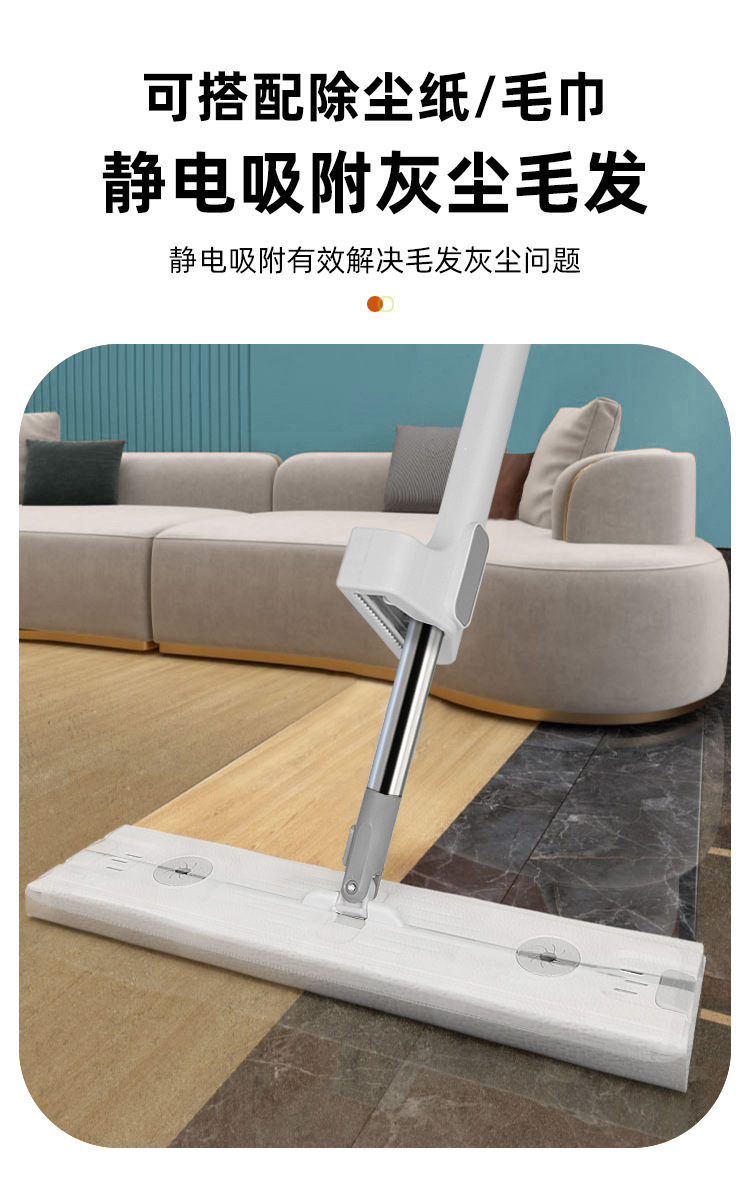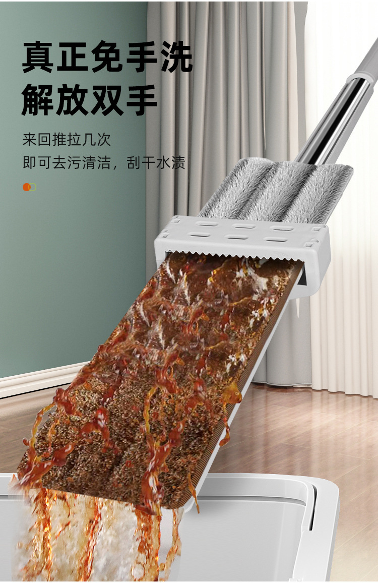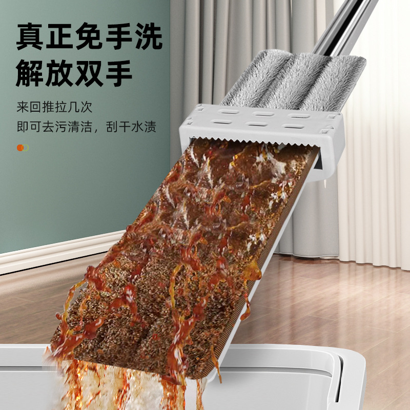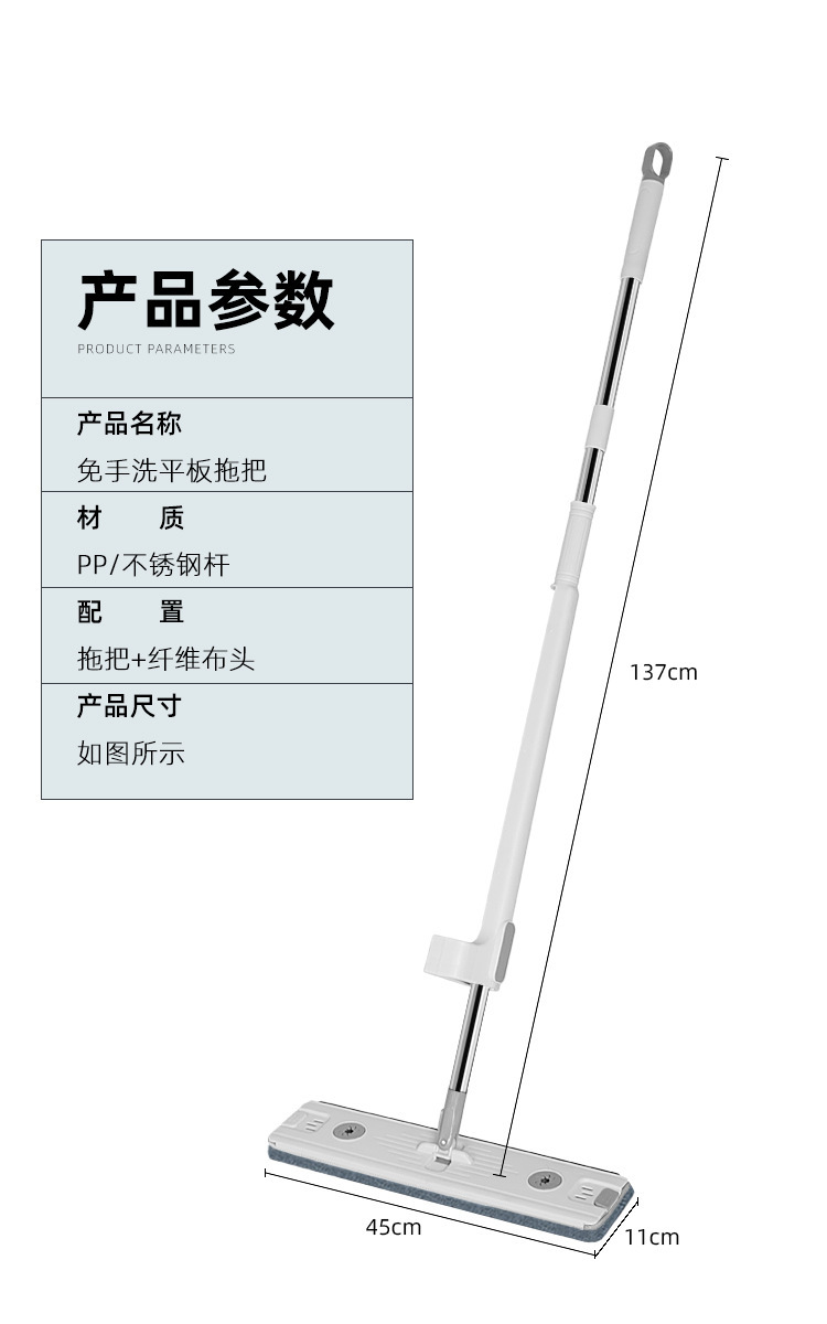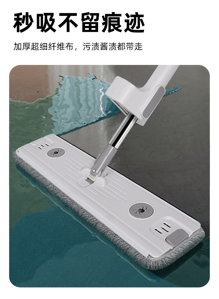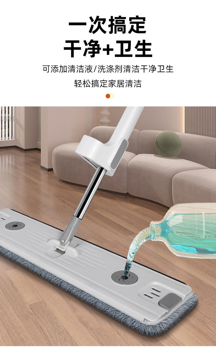 免手洗平板拖把家用45厘米面板拖把自挤水墩布干湿两用可加清洗液