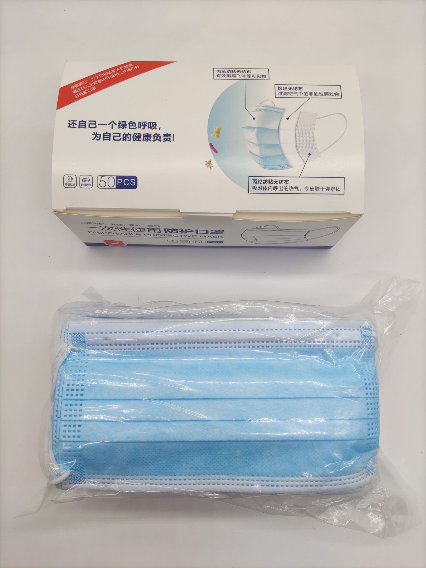 一次性日用防护口罩民用三层无纺布含熔喷布口罩成人防疫防尘口罩