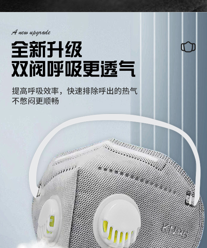 KN95口罩防尘防工业粉尘活性炭头戴式带阀防甲醛煤矿井下打磨专用