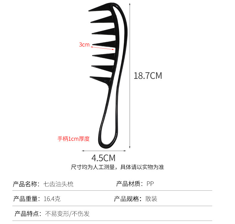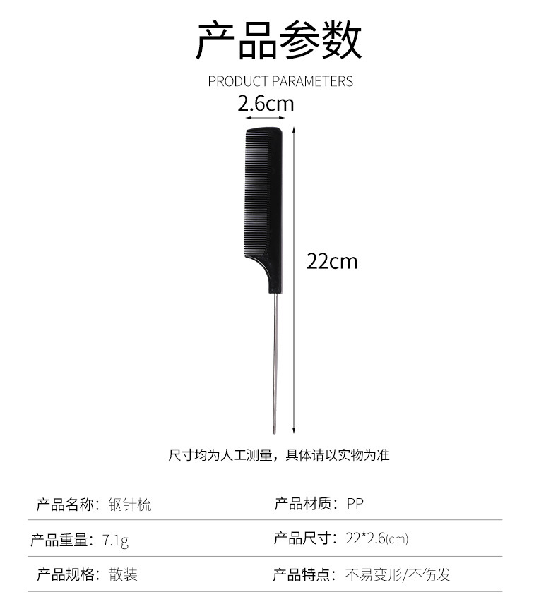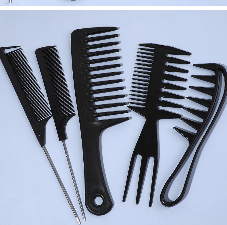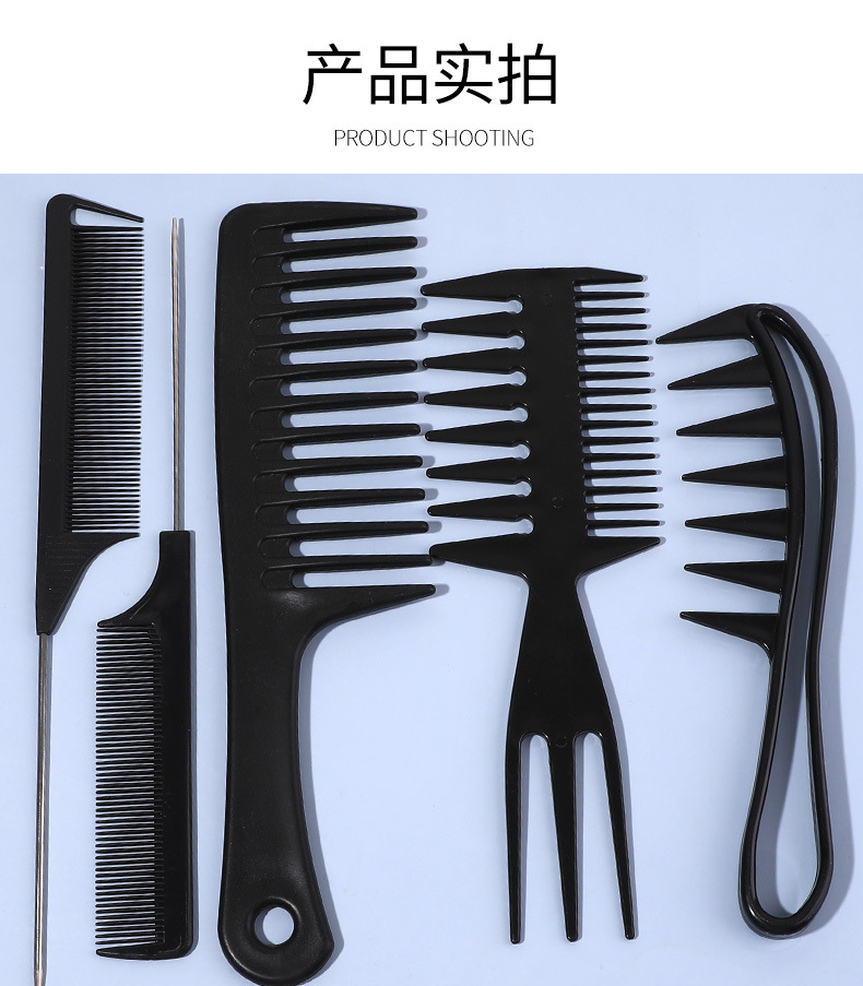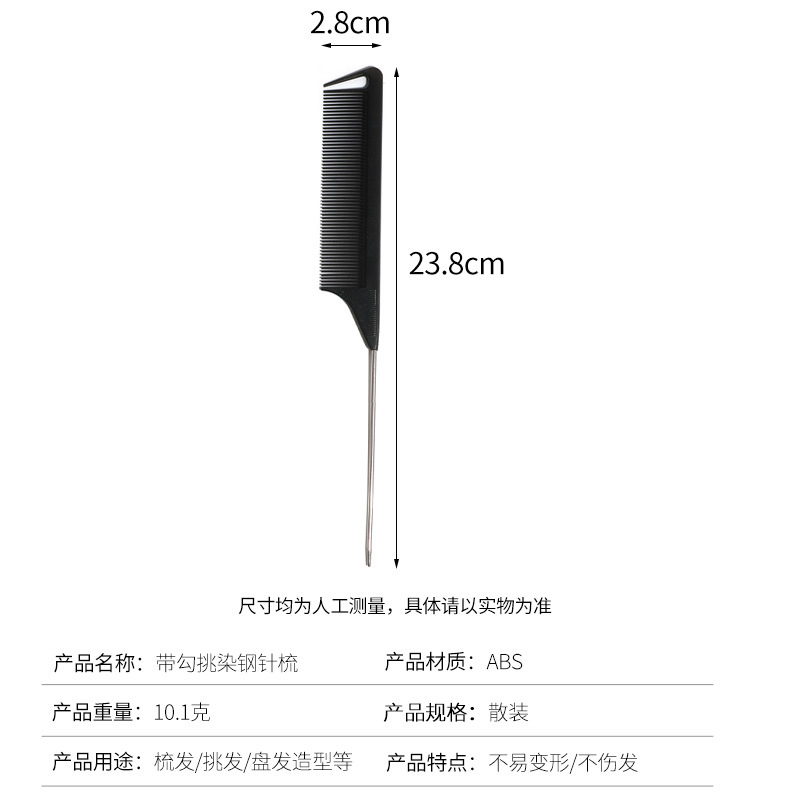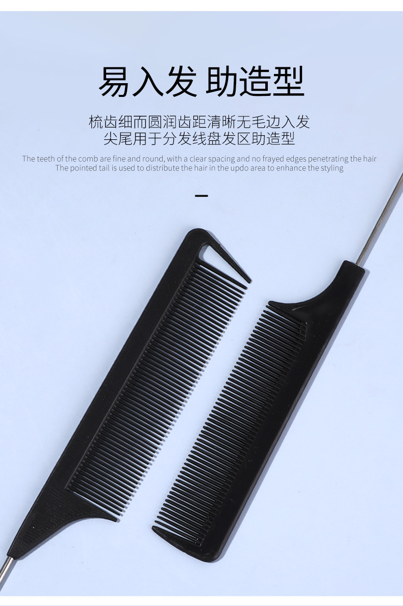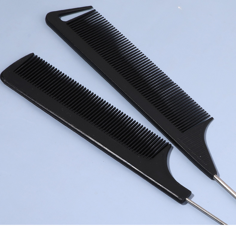 散装黑色塑料梳子批发 家用发廊钢针梳 密齿顺发卷发梳 美发梳