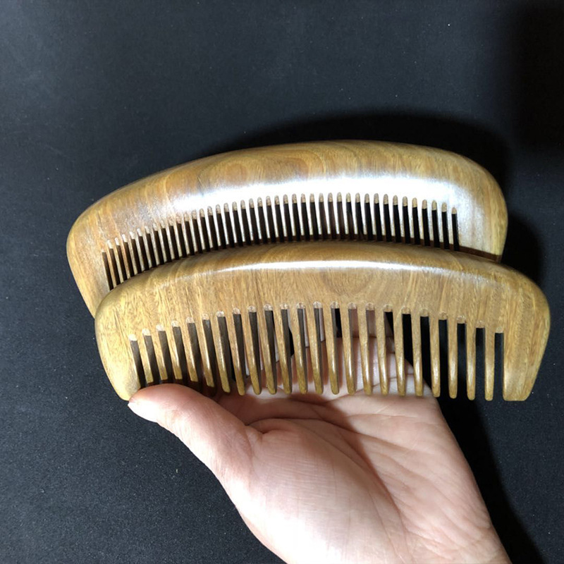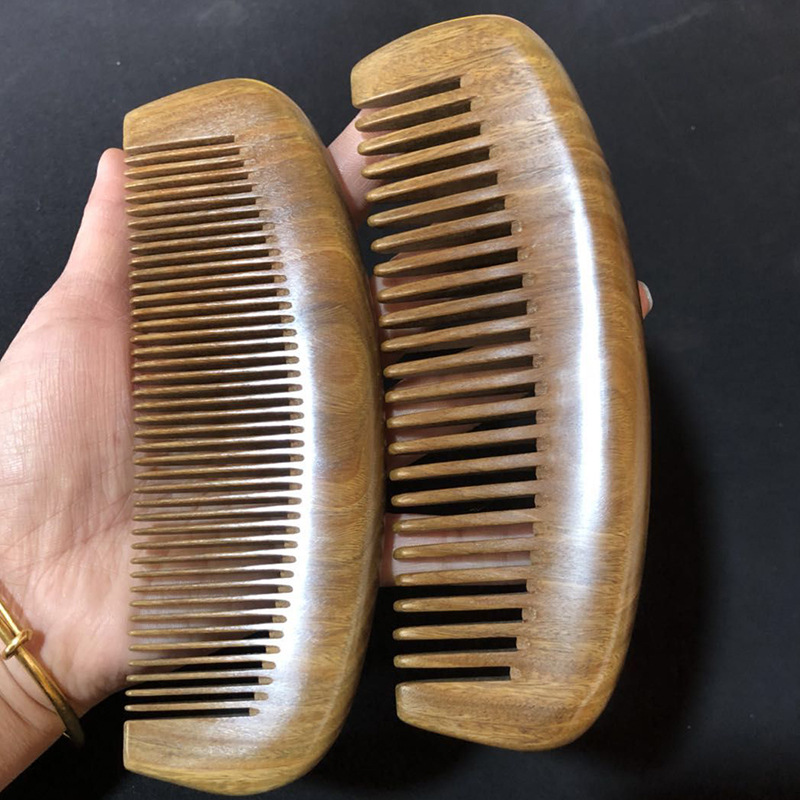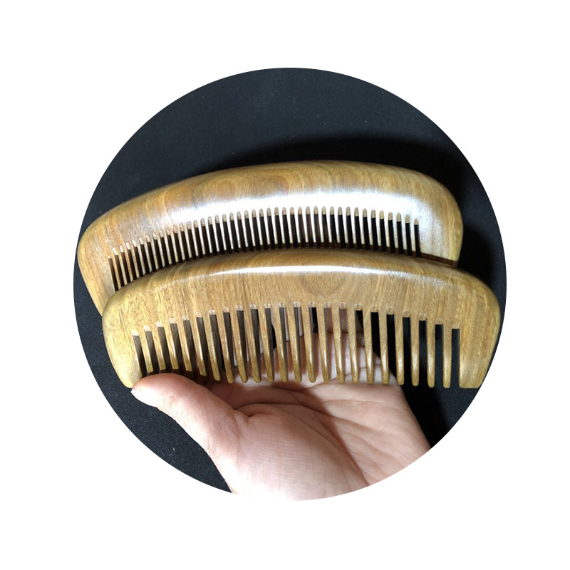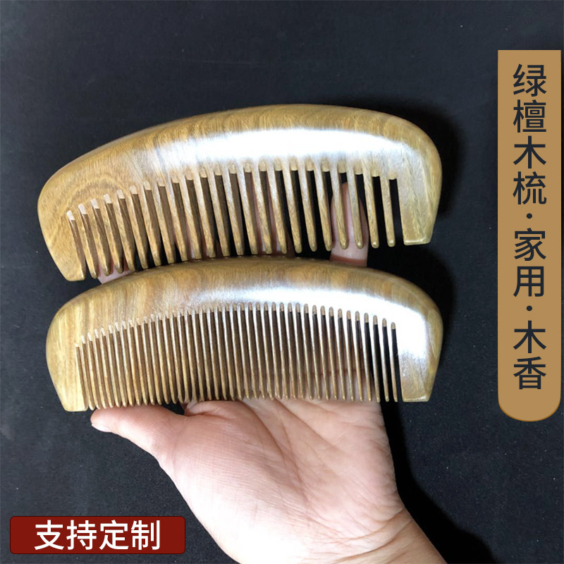 绿檀香木梳子批发厂家供应月梳加厚木梳宽密齿搭配发货来样印logo