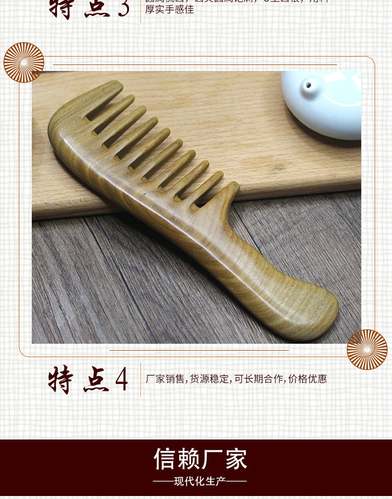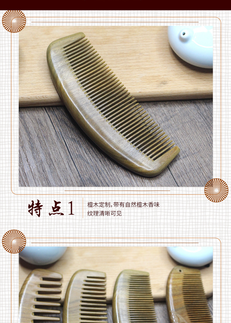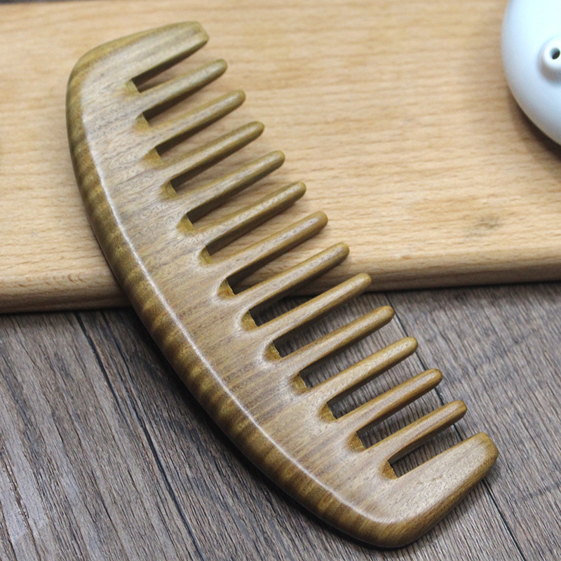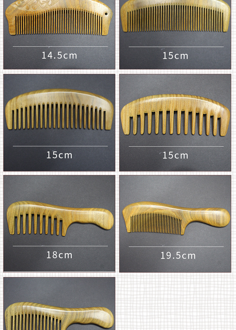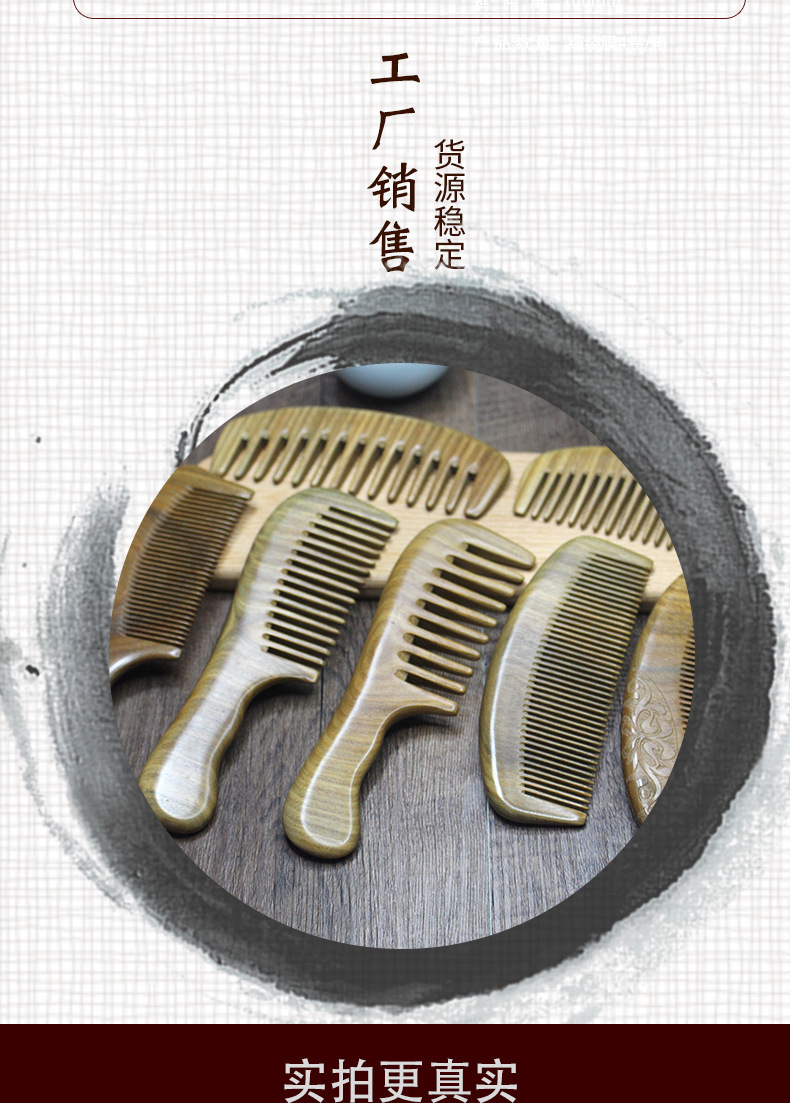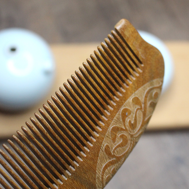 巴拉圭绿檀木雕花梳大号长柄宽齿便携檀香梳家用护发养发绿檀木梳