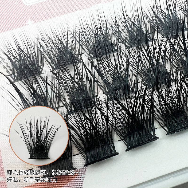 厂家批发热熔稻叶假睫毛三排大容量单簇分段式眼睫毛浓密大眼睫毛
