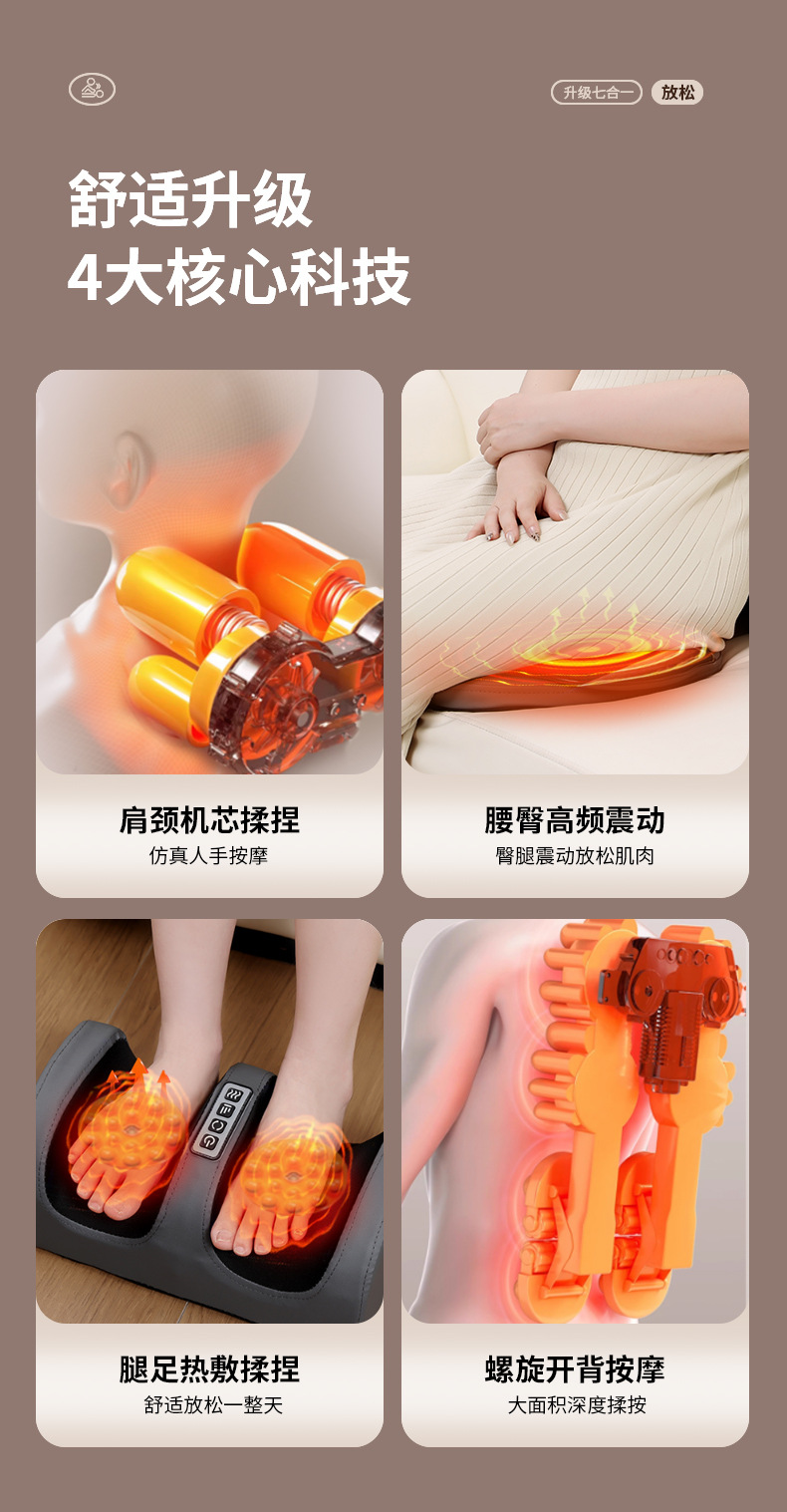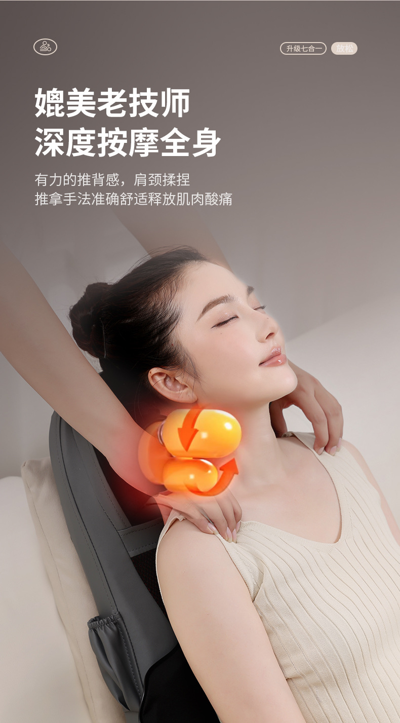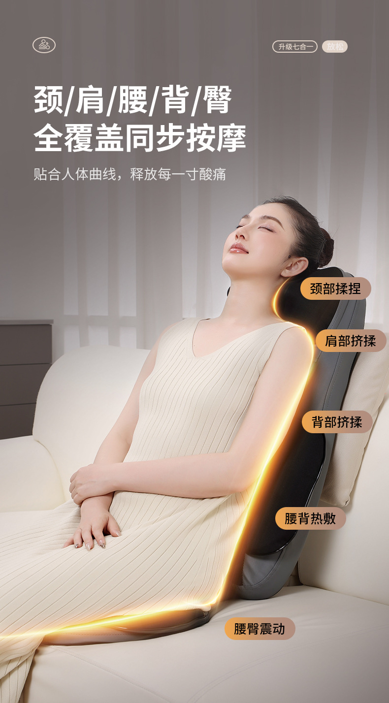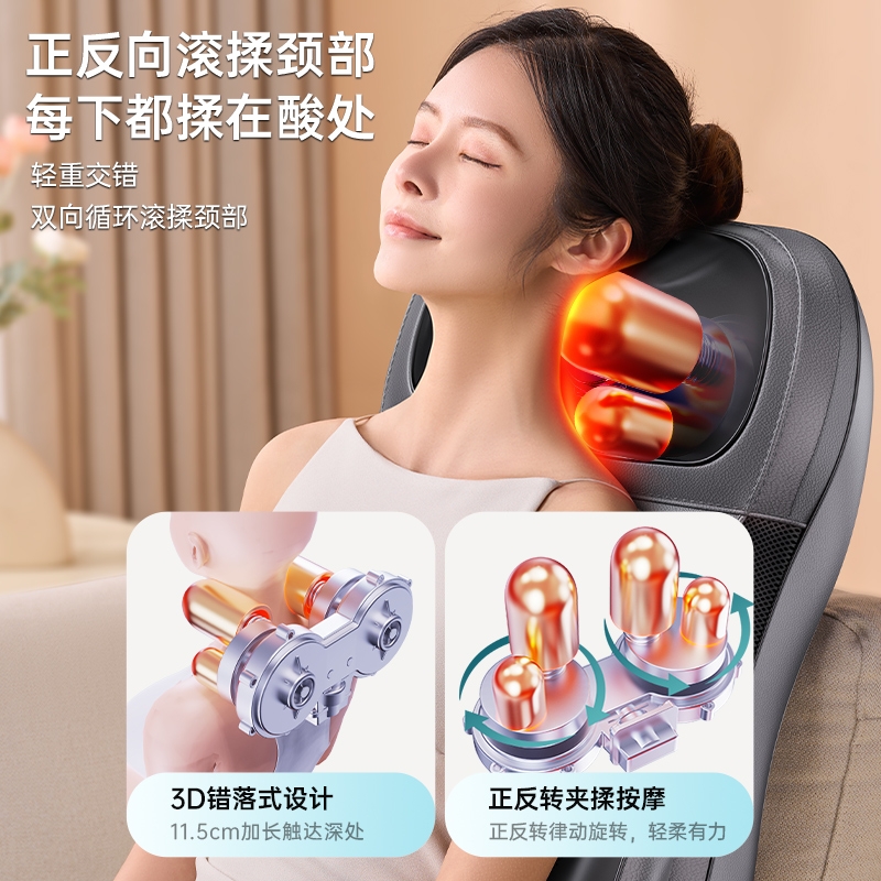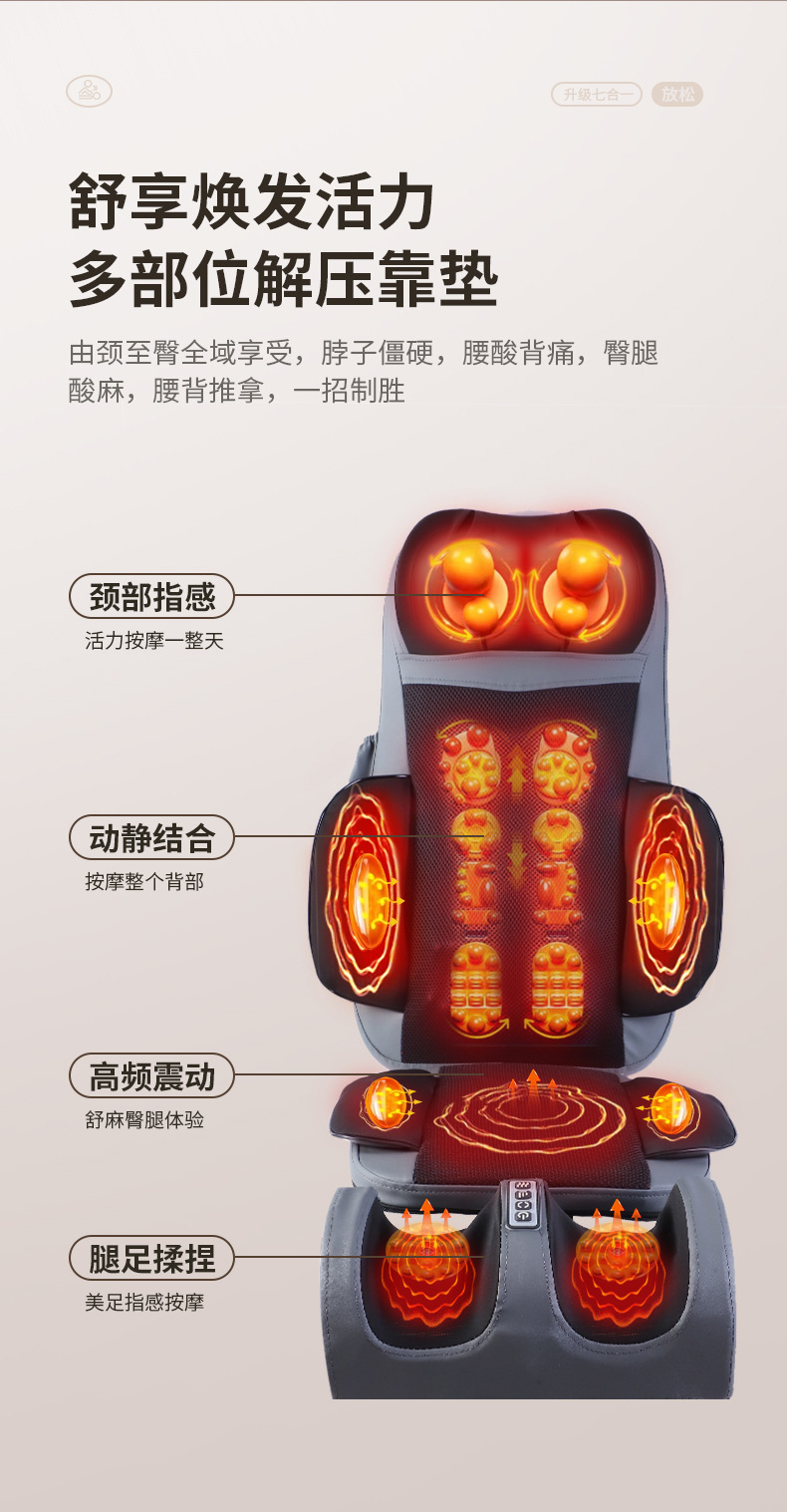 肩颈腰椎三节按摩靠垫多功能按摩器腰部背部揉捏按摩椅垫沙发靠垫