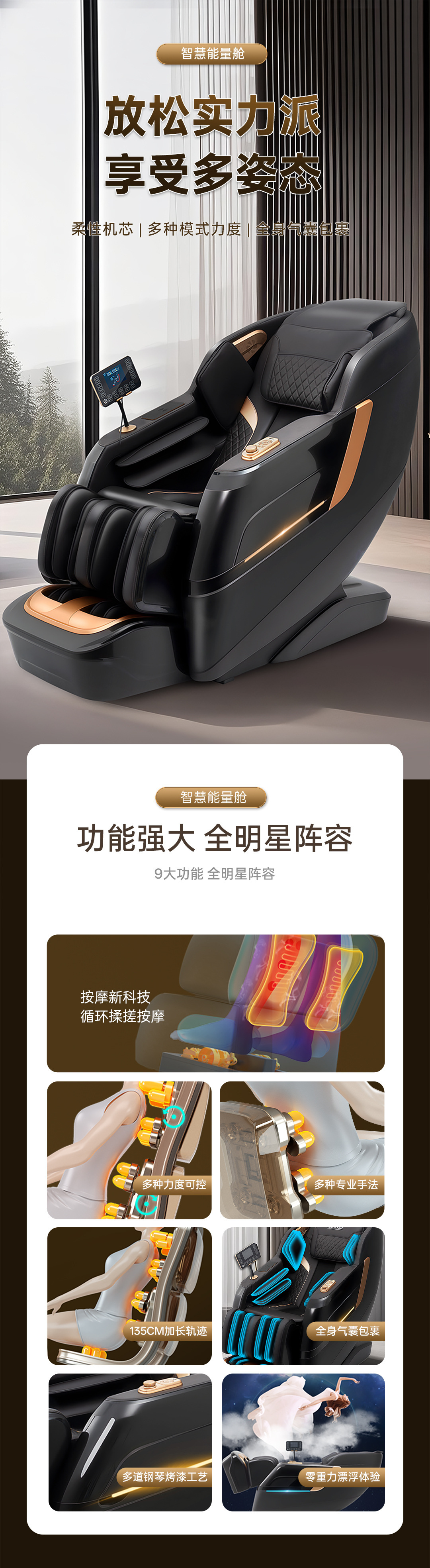 AI语音控制太空舱豪华多功能智能家用揉捏气囊全身全自动按摩椅