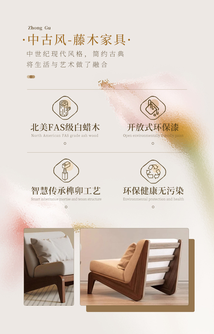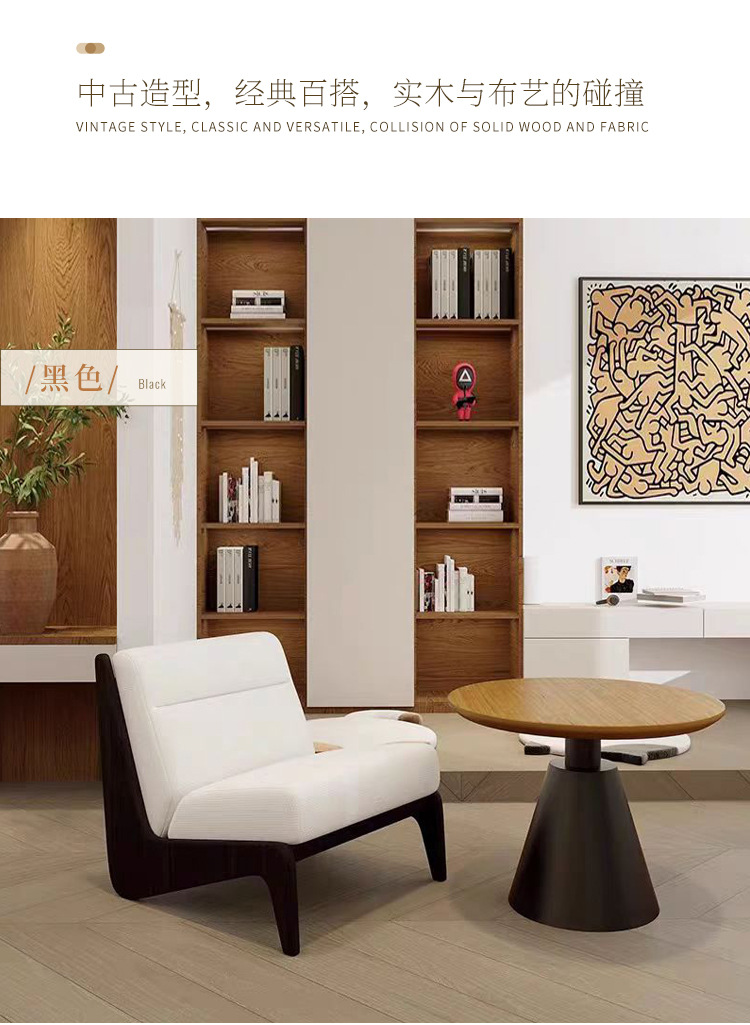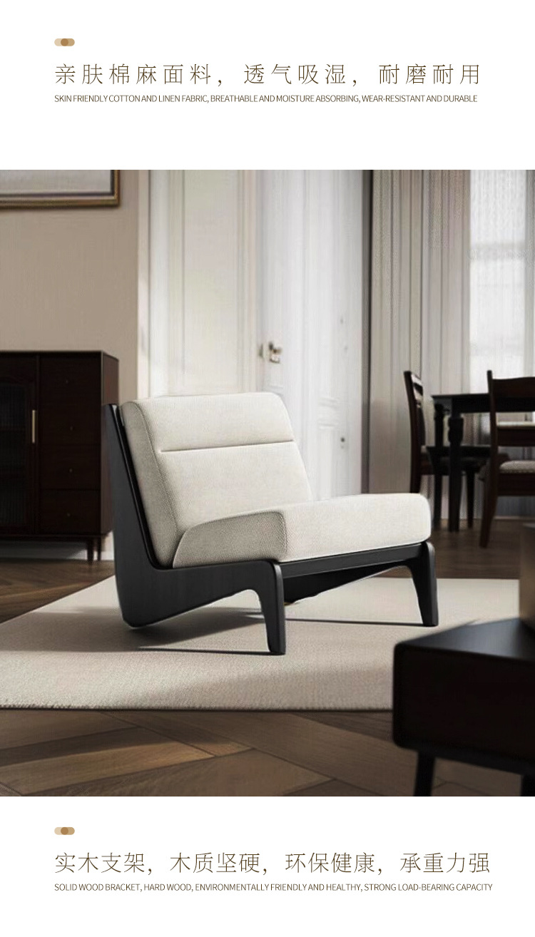 法式中古风实木沙发椅家用客厅靠背单人椅子民宿阳台设计师休闲椅