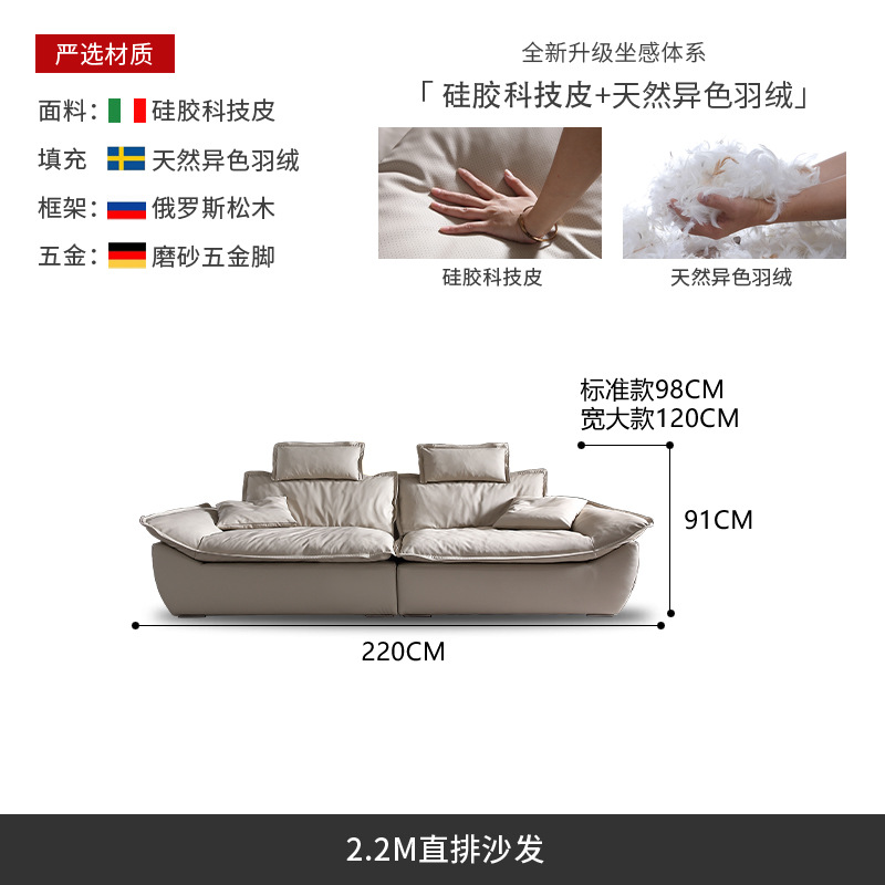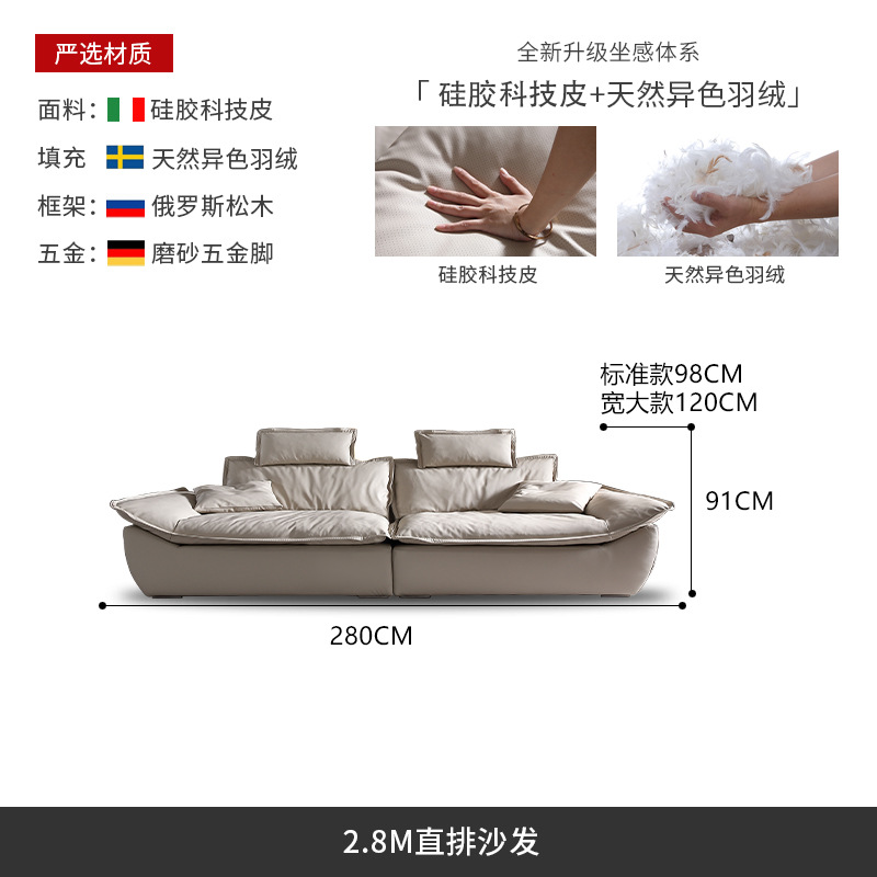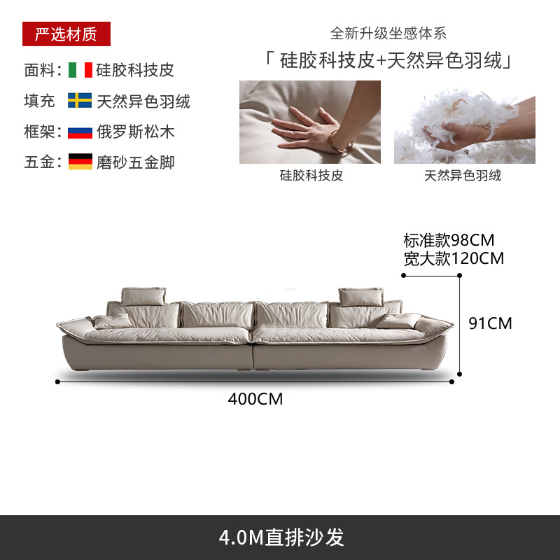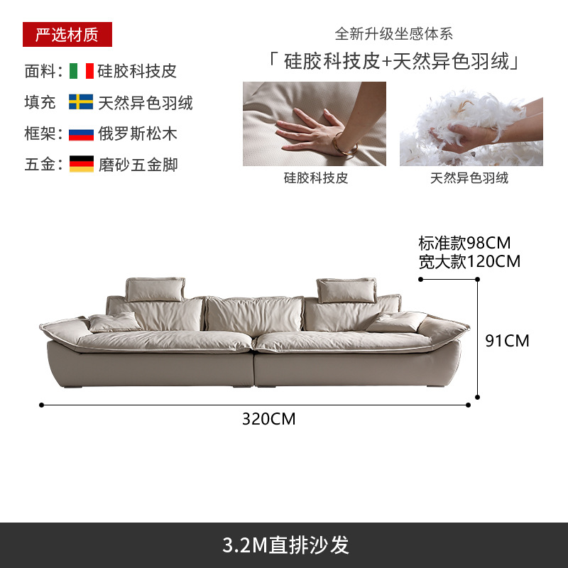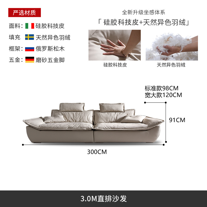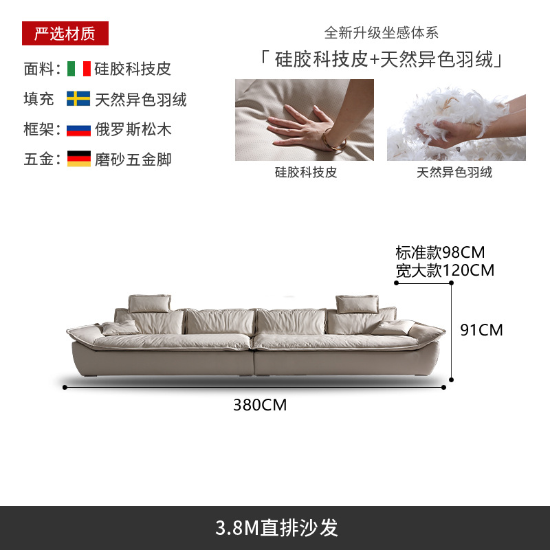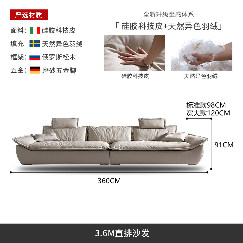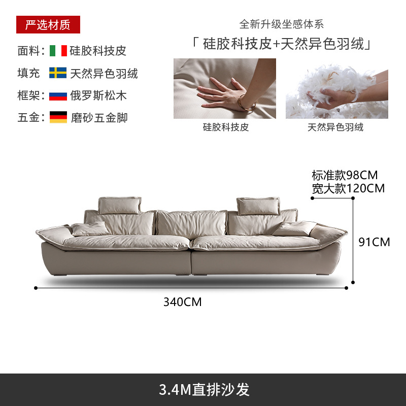 意式超深坐宽高靠背沙发客厅奶油侘寂风轻奢直排硅胶皮轻奢风