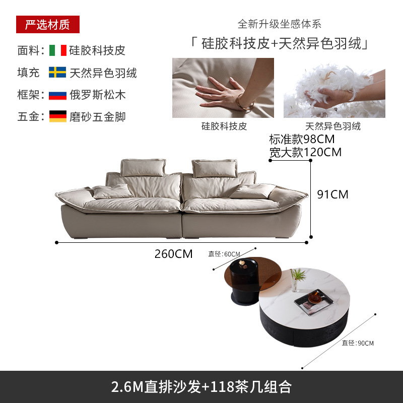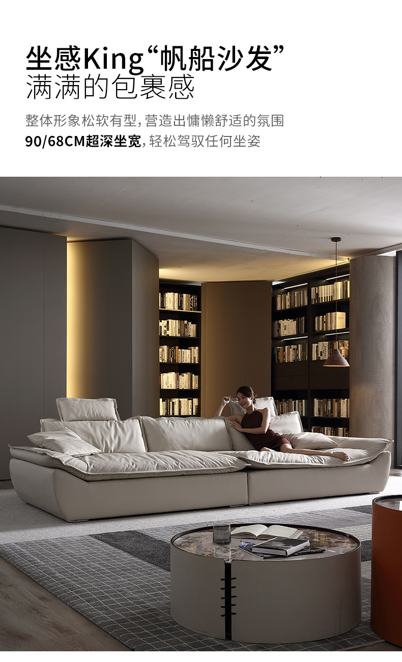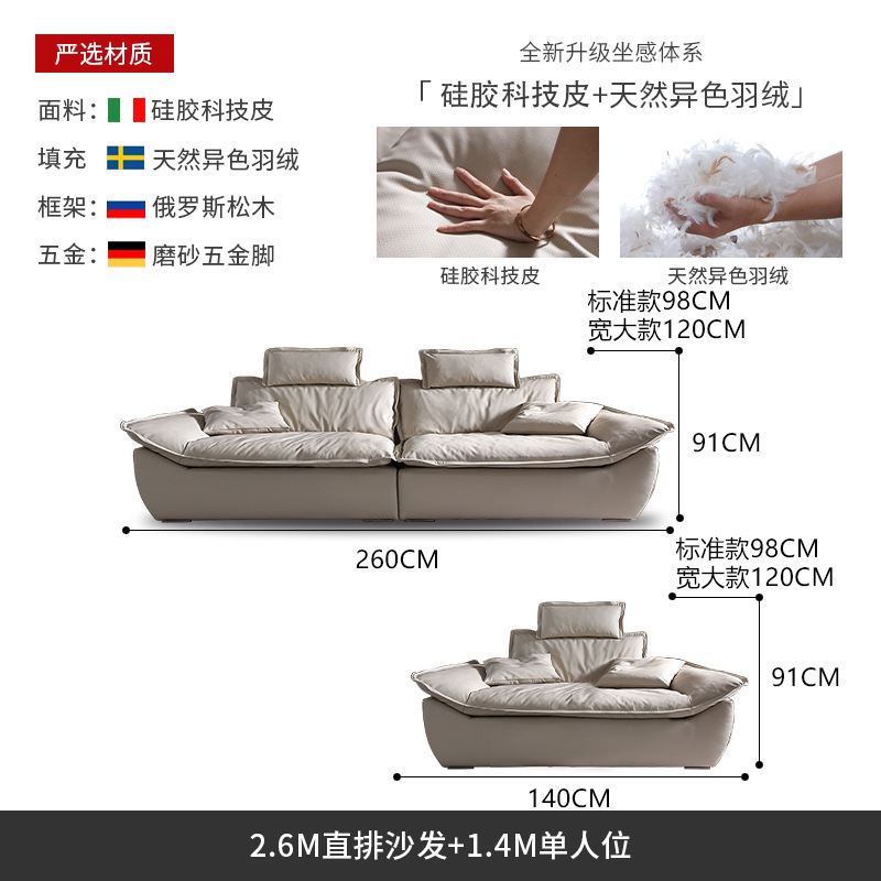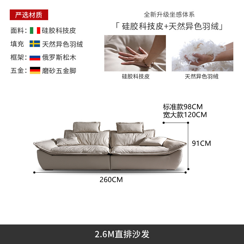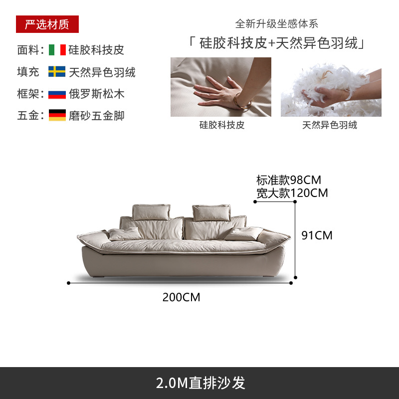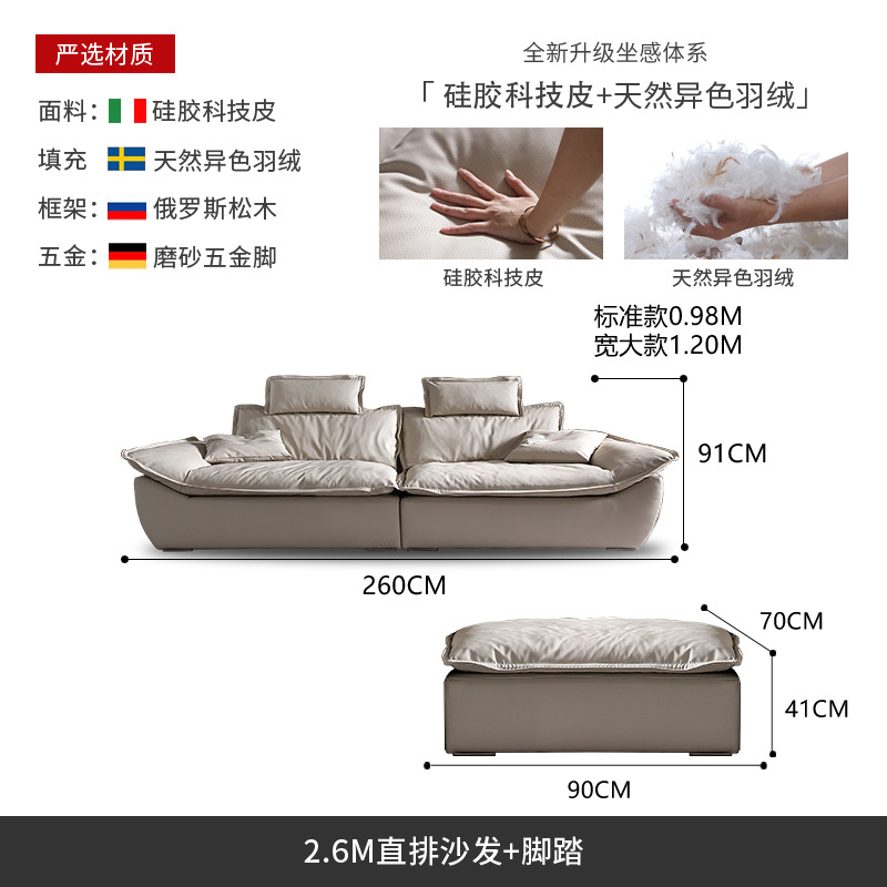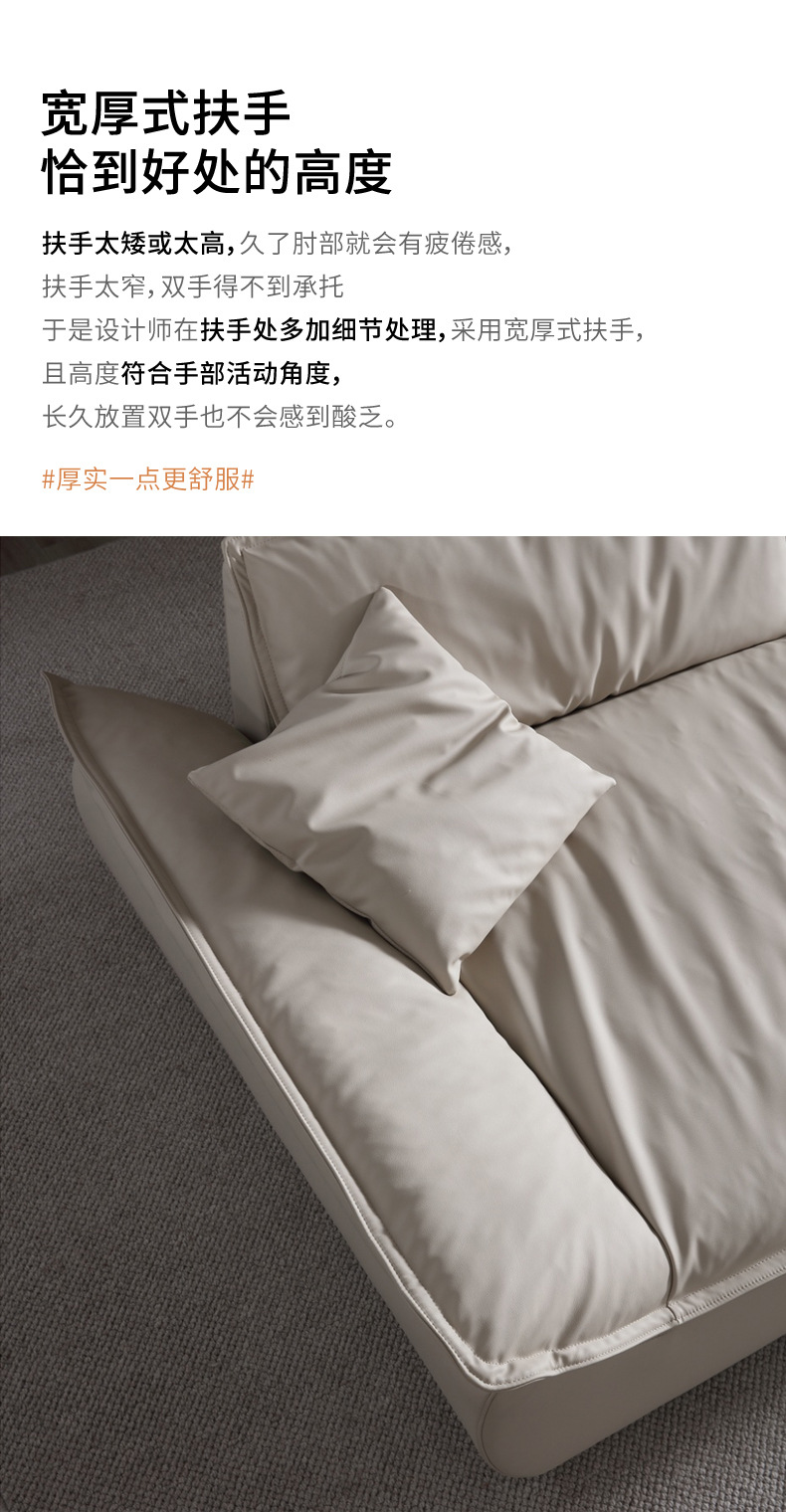 意式超深坐宽高靠背沙发客厅奶油侘寂风轻奢直排硅胶皮轻奢风