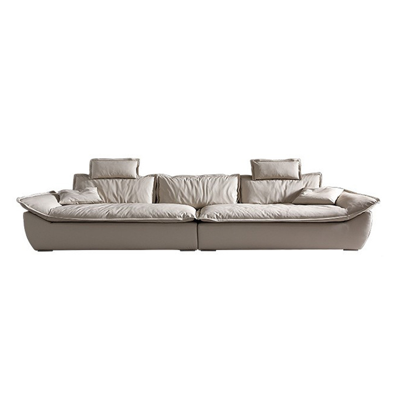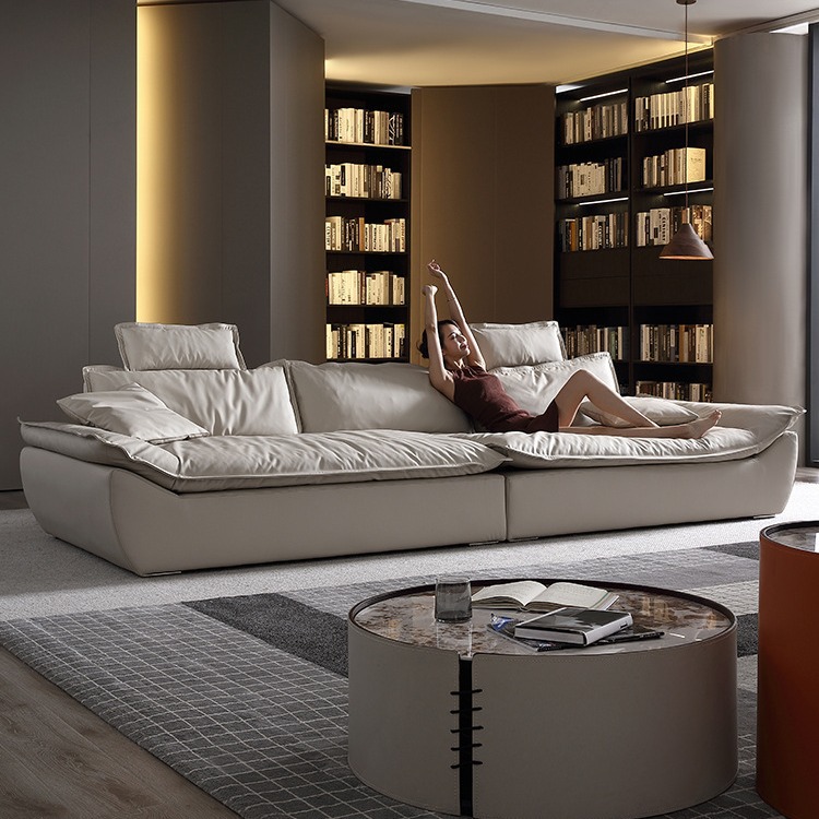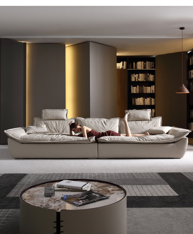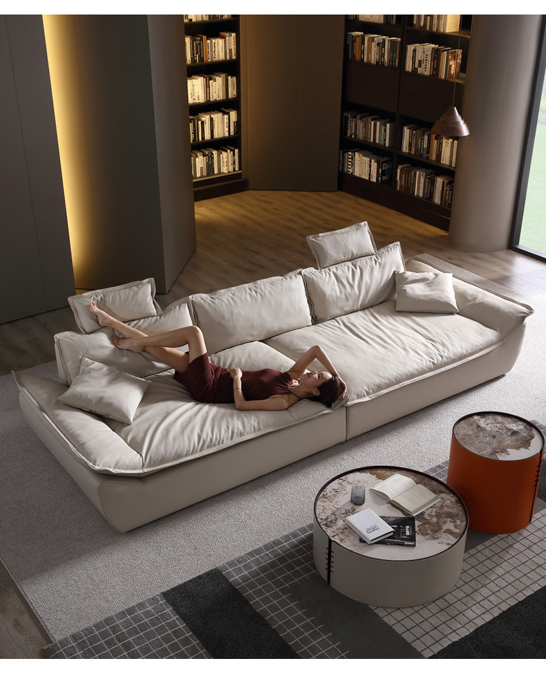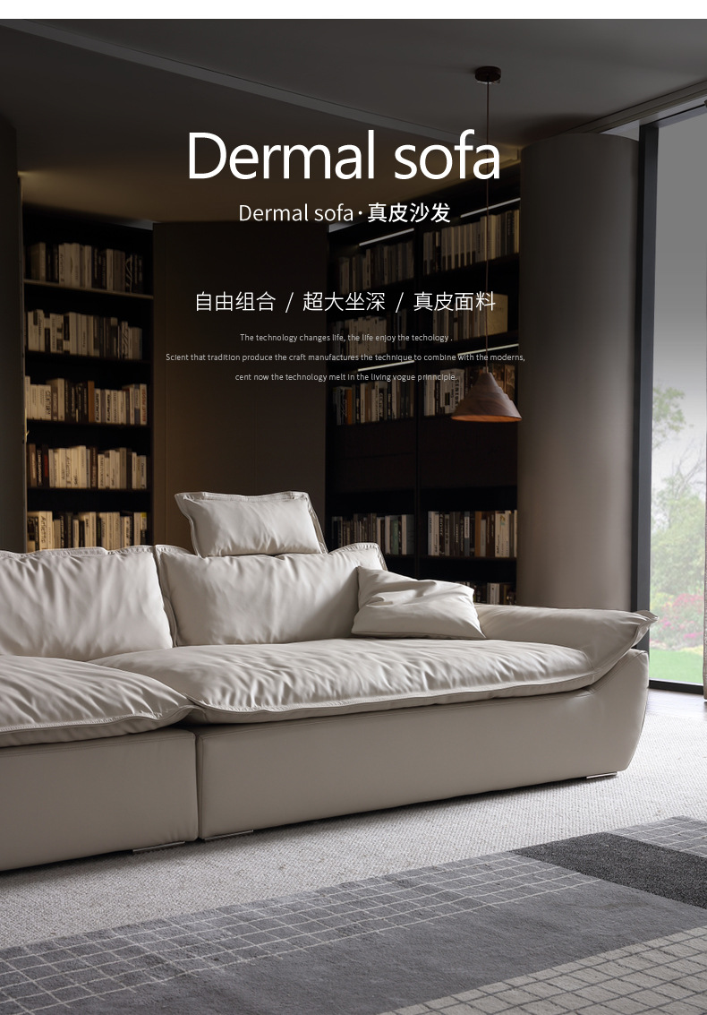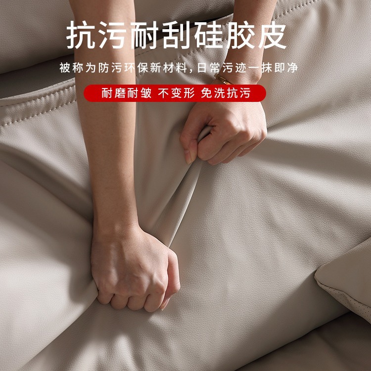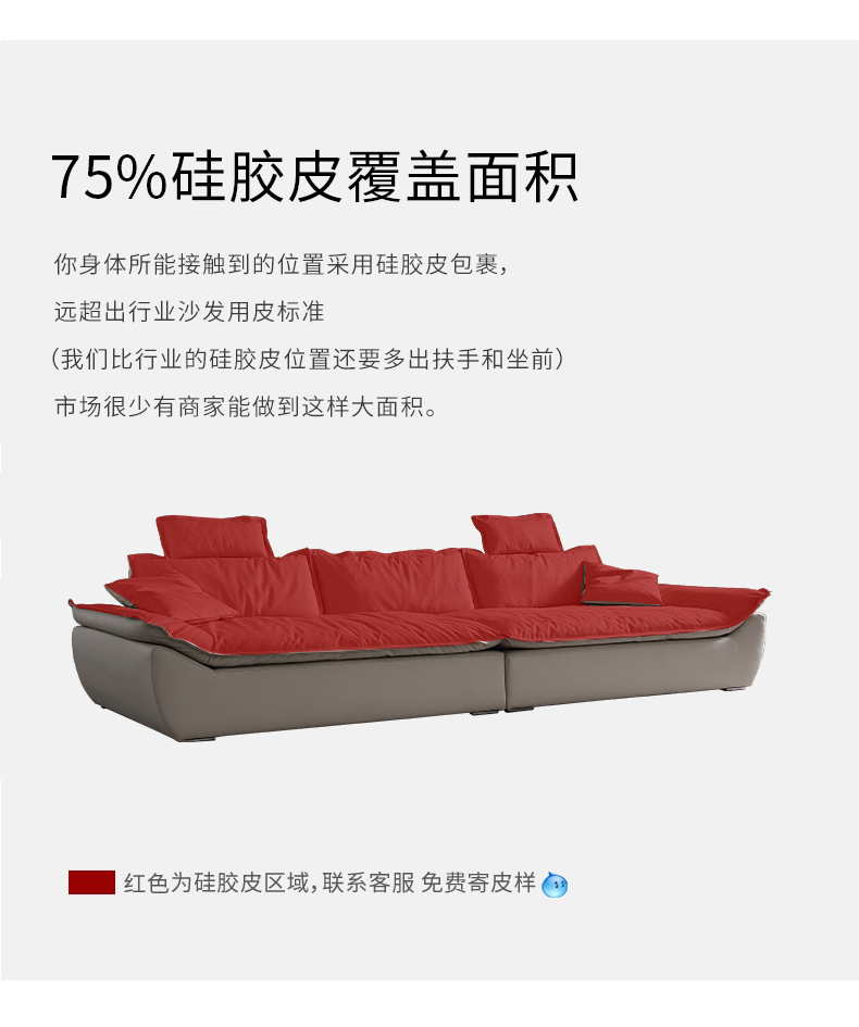 意式超深坐宽高靠背沙发客厅奶油侘寂风轻奢直排硅胶皮轻奢风