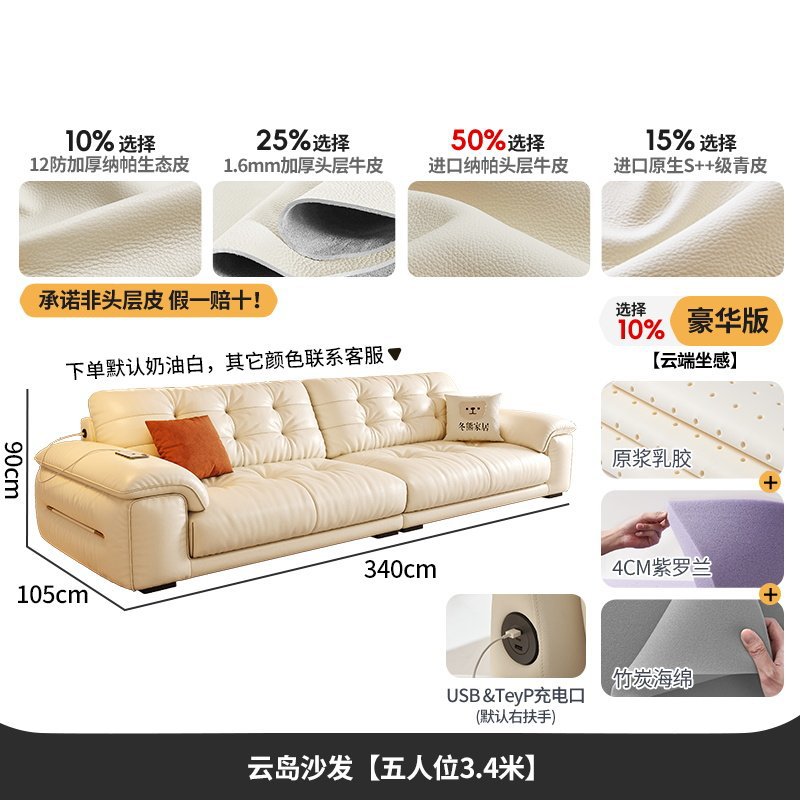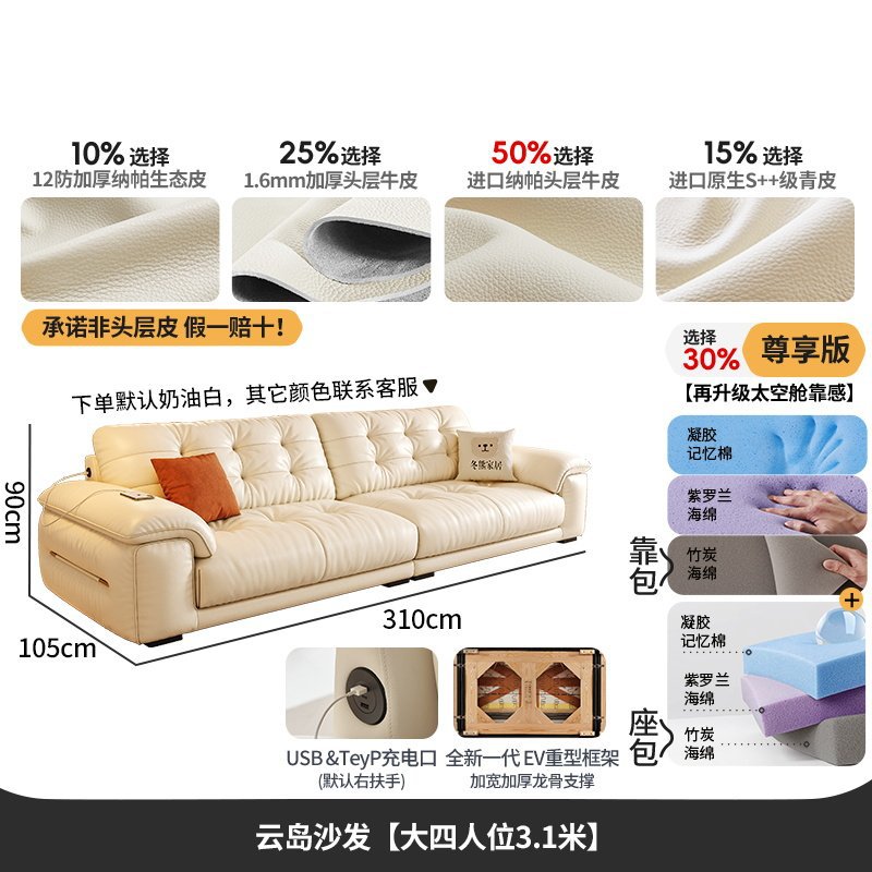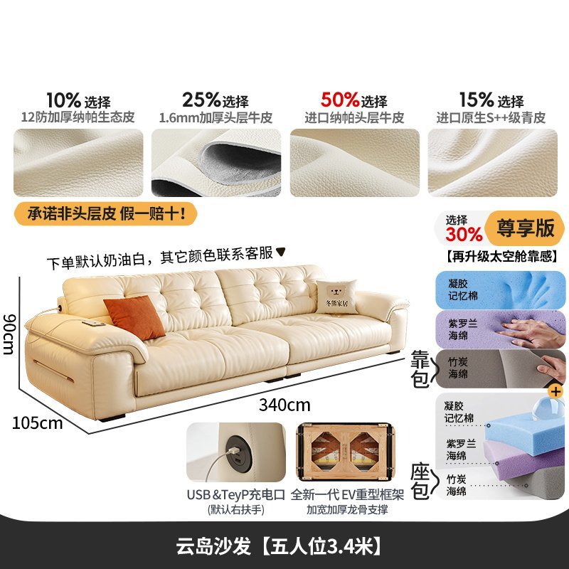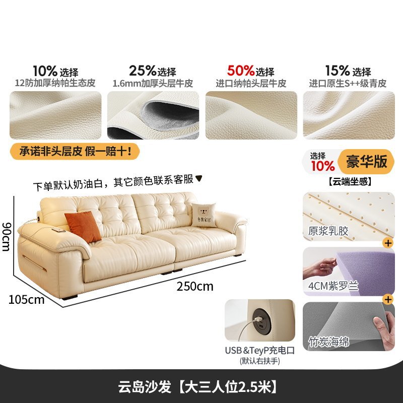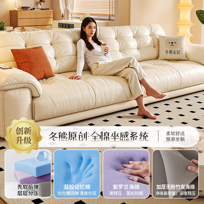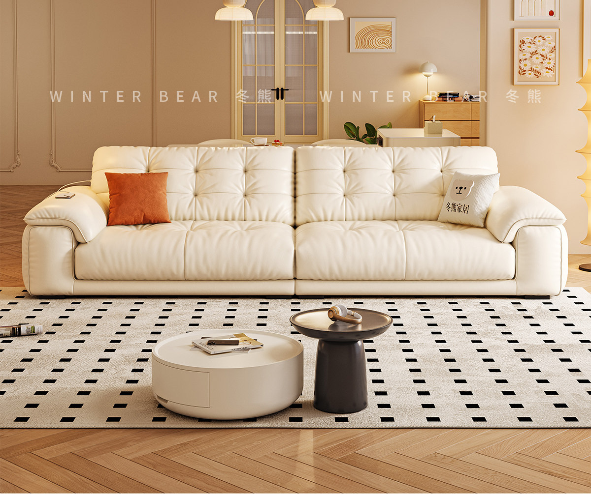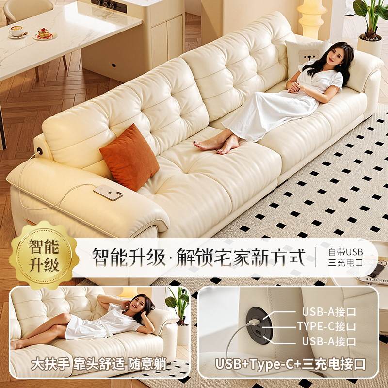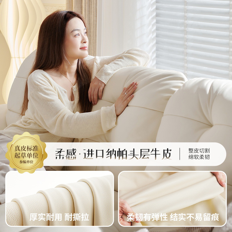 桐语特 真皮沙发法式奶油风云朵泡芙客厅小户型现代头层牛皮沙发