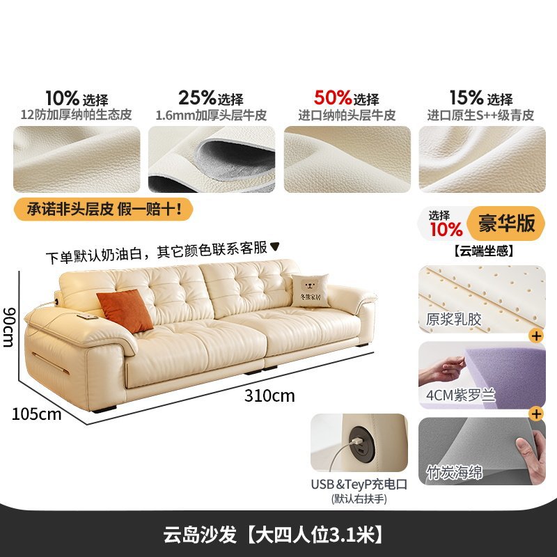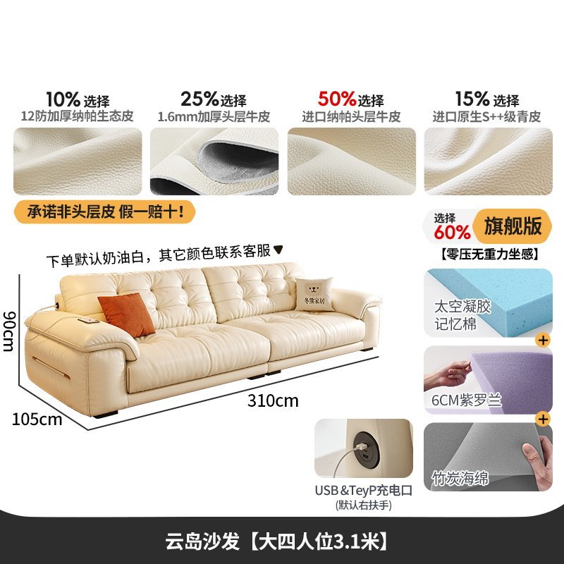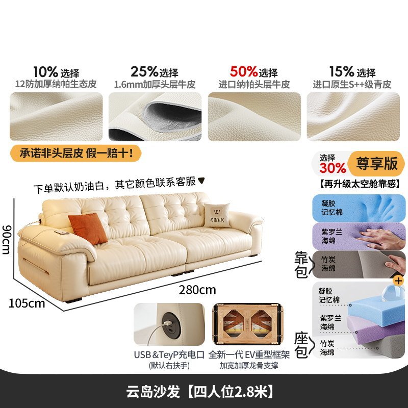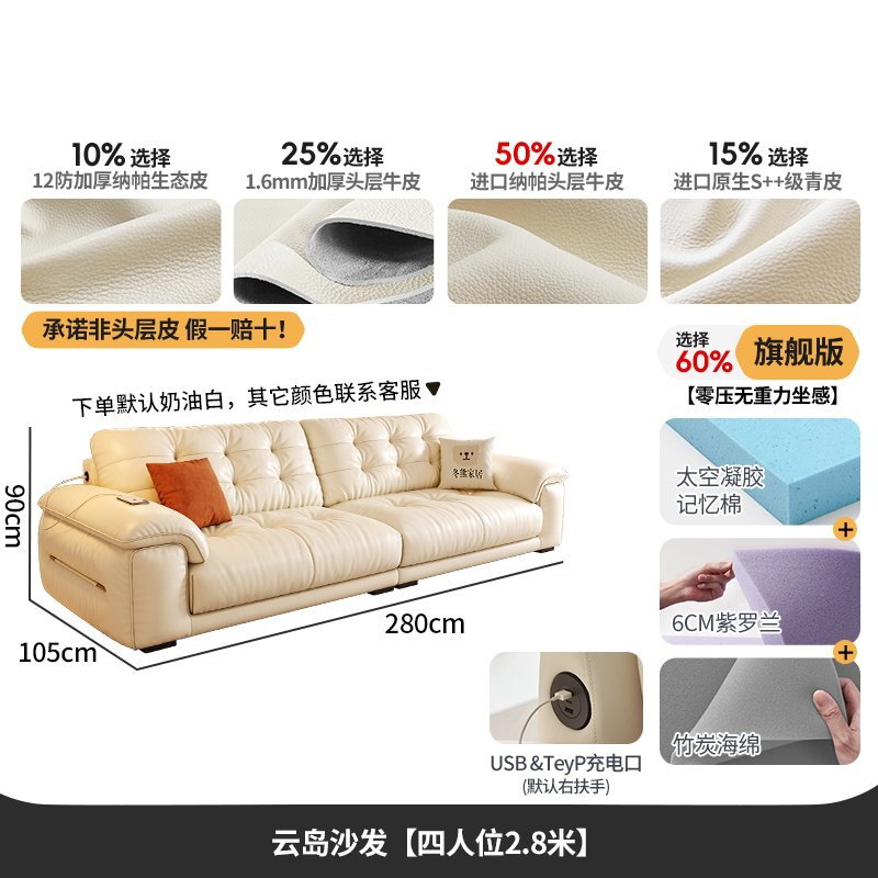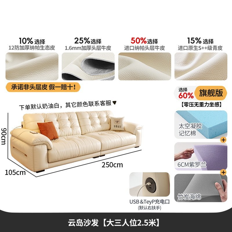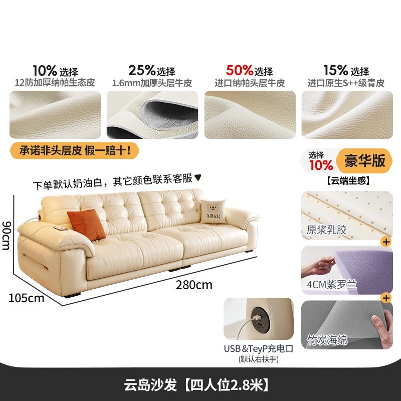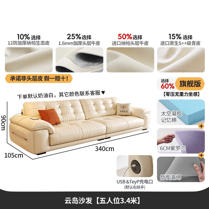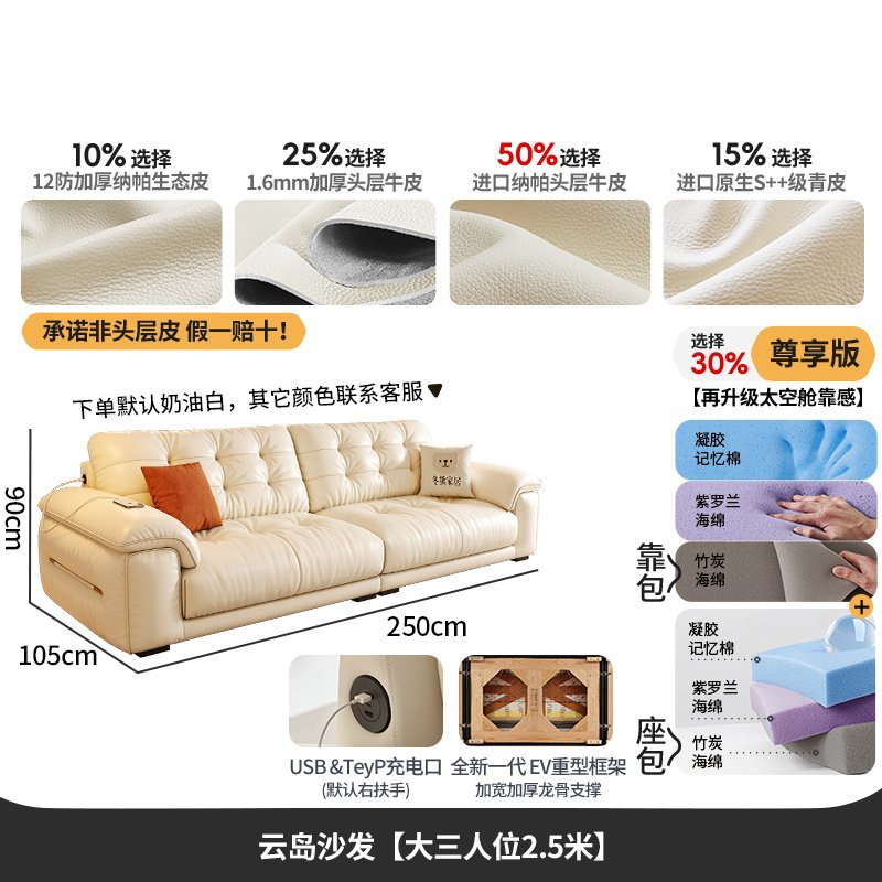 桐语特 真皮沙发法式奶油风云朵泡芙客厅小户型现代头层牛皮沙发