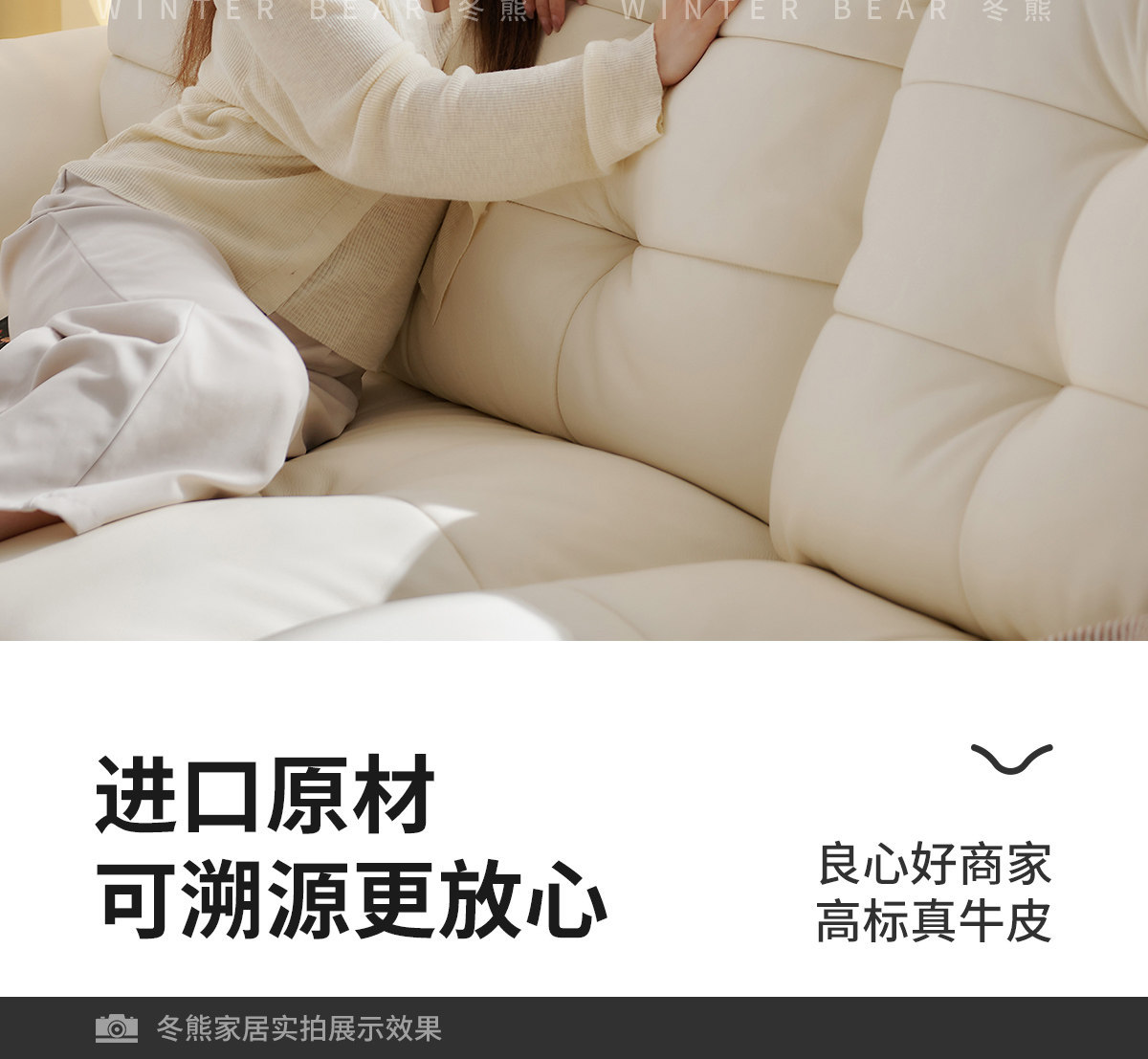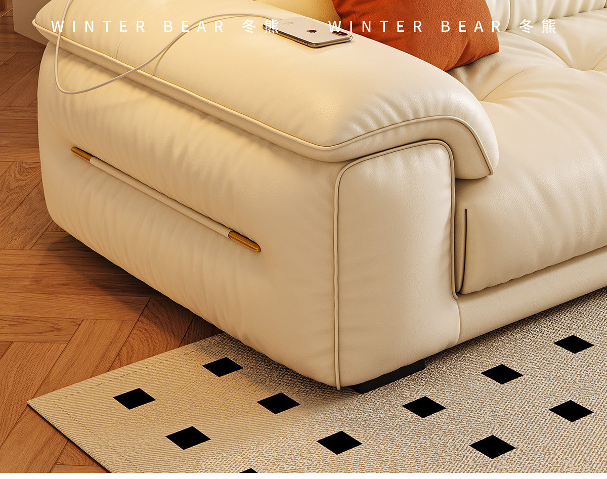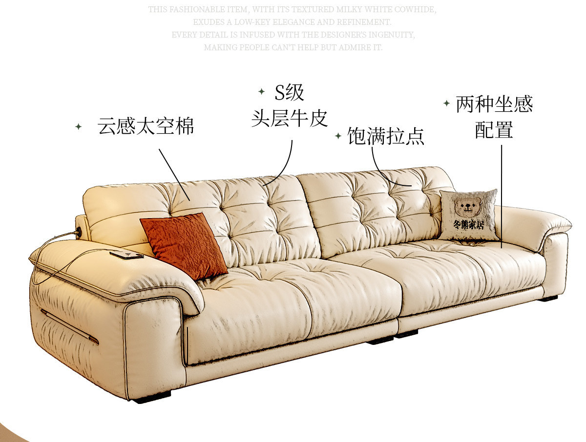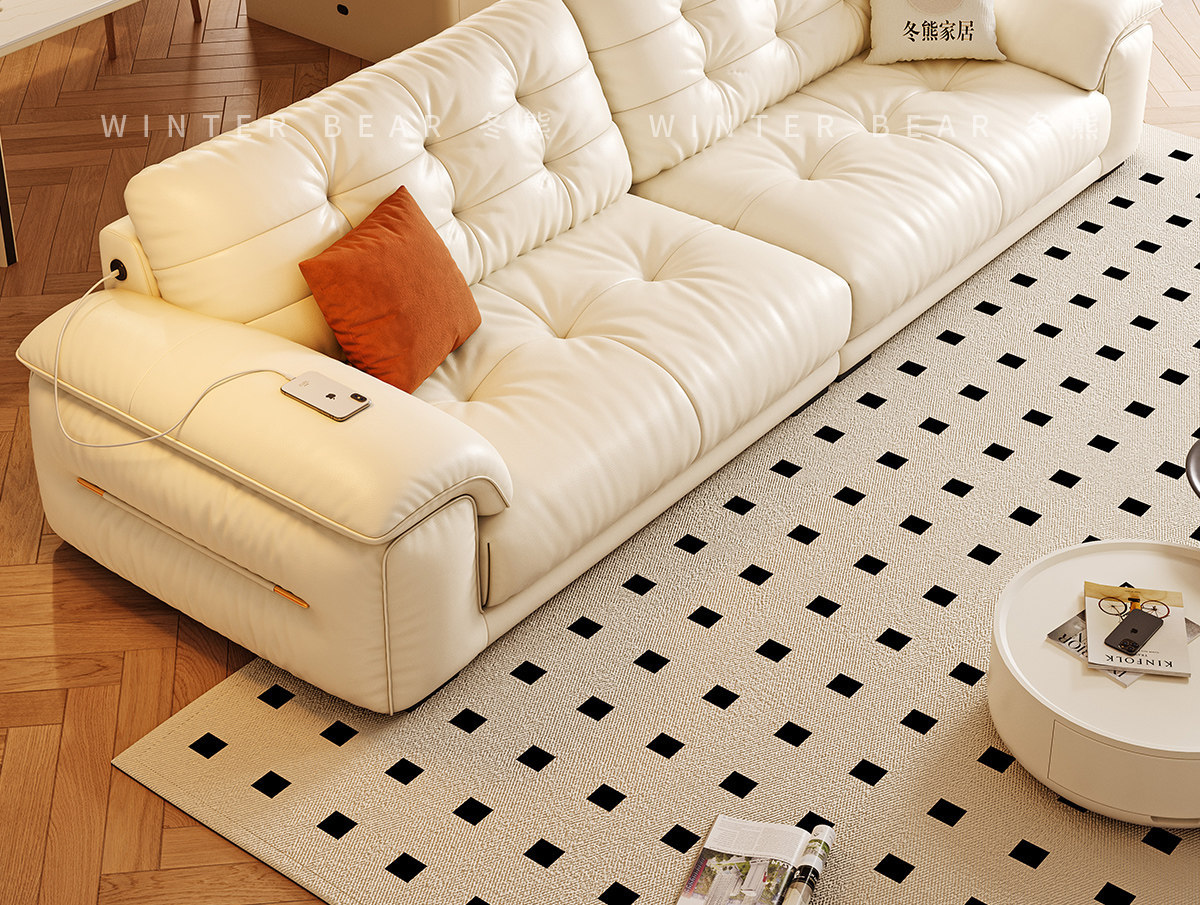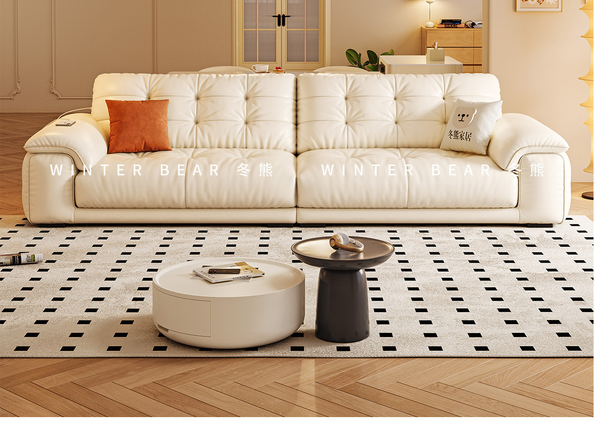 桐语特 真皮沙发法式奶油风云朵泡芙客厅小户型现代头层牛皮沙发