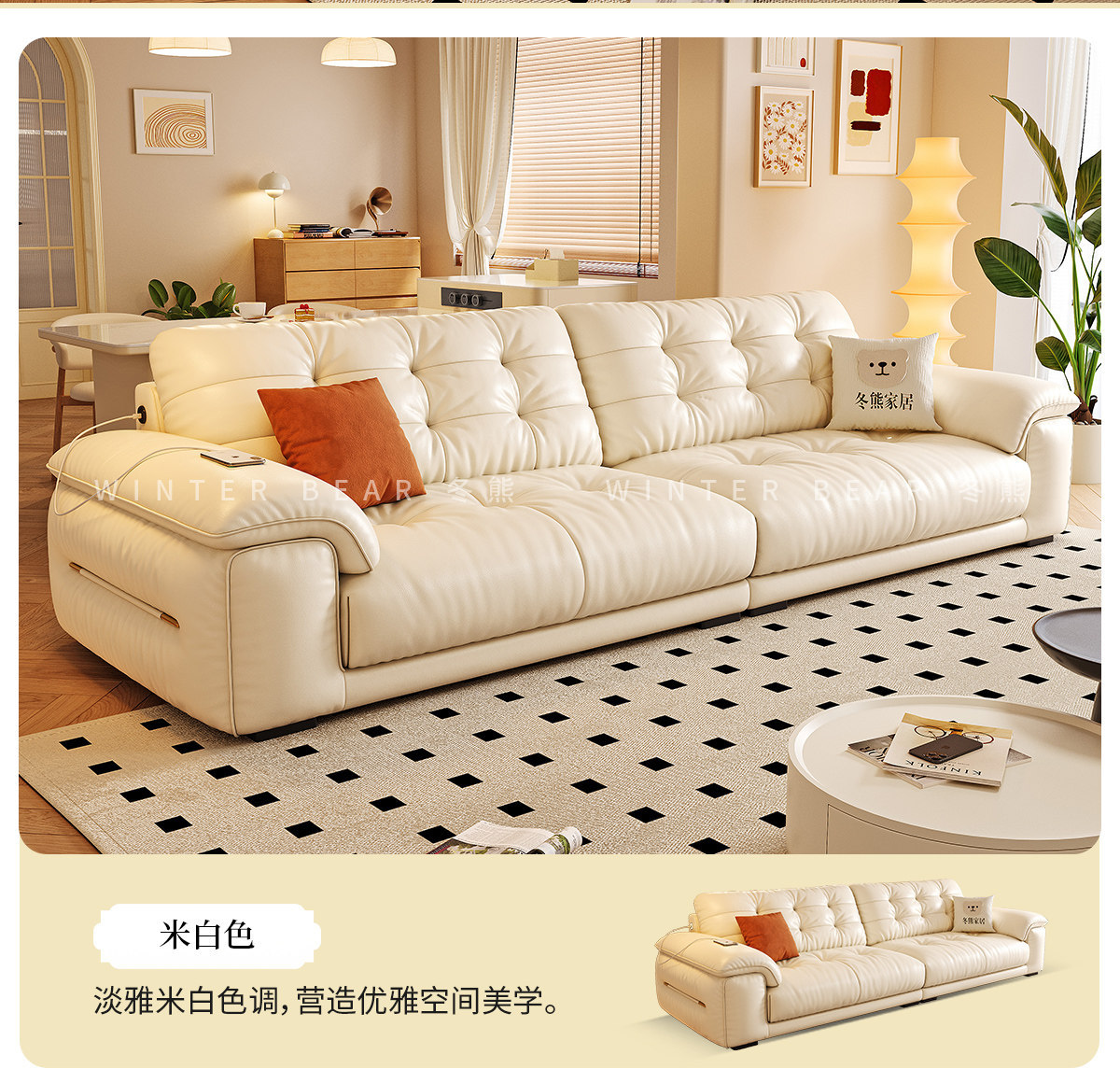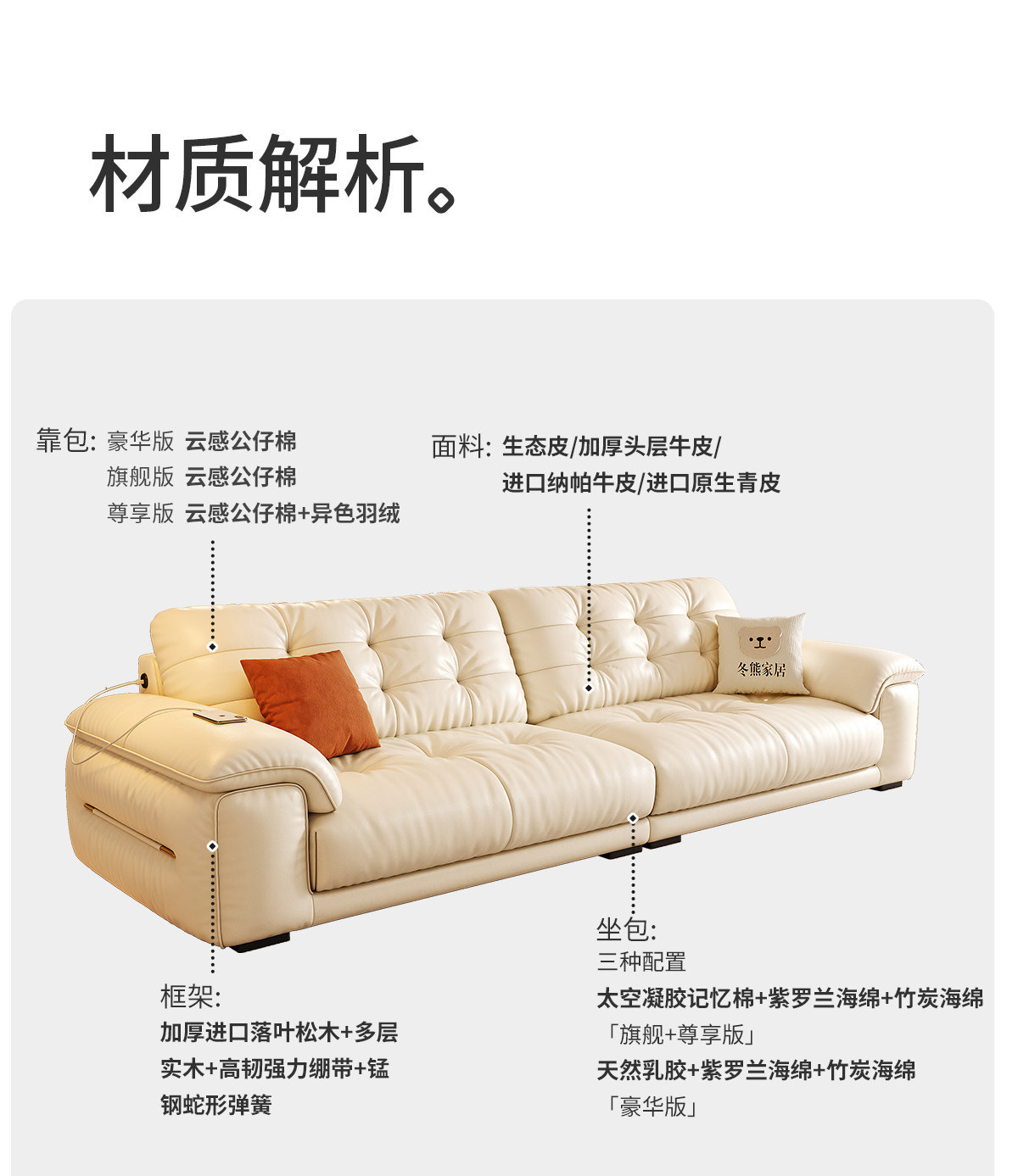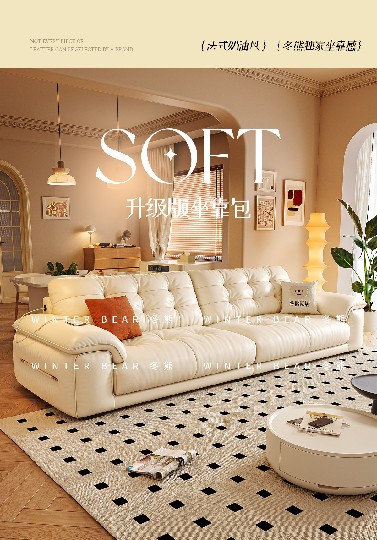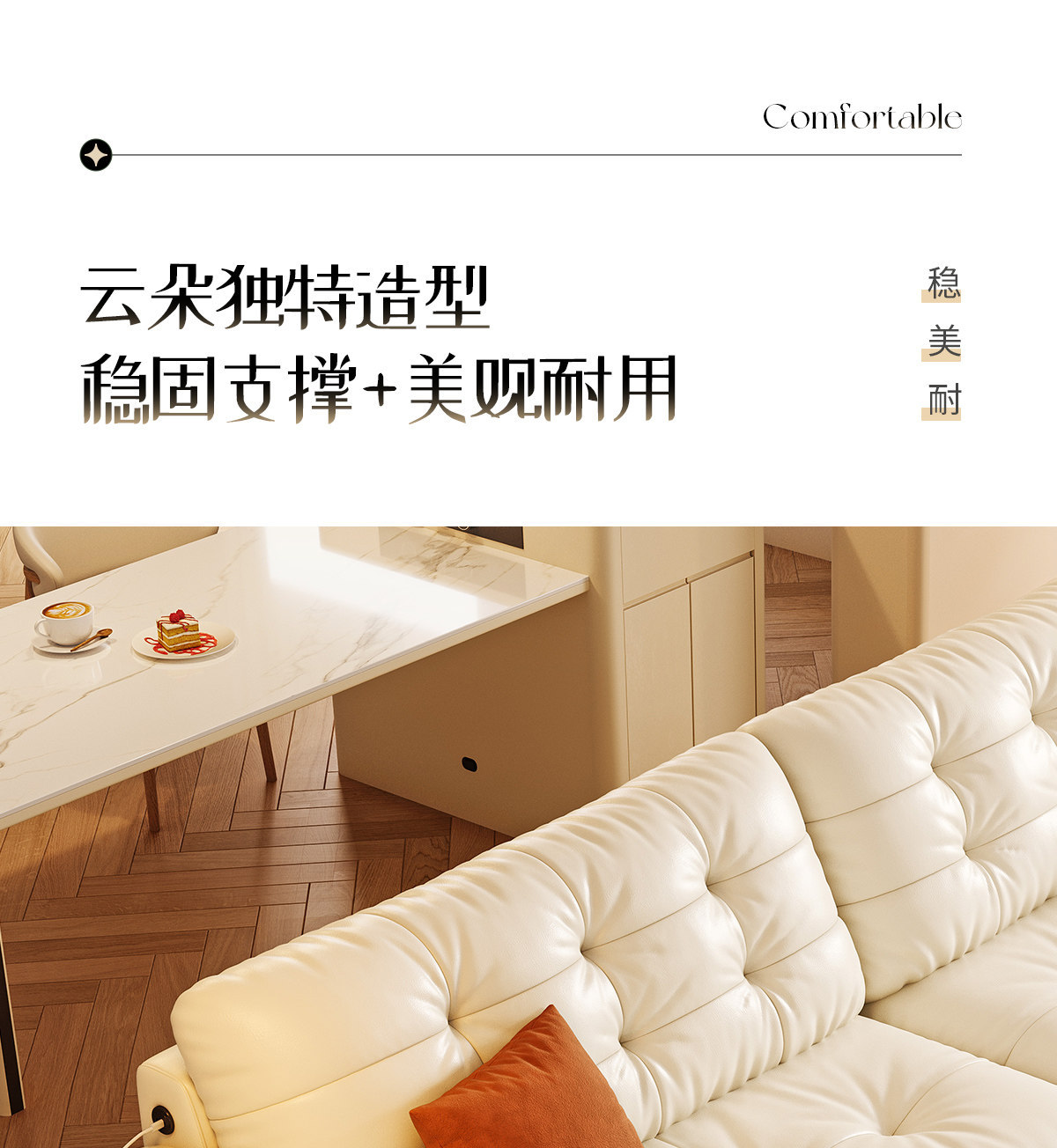 桐语特 真皮沙发法式奶油风云朵泡芙客厅小户型现代头层牛皮沙发