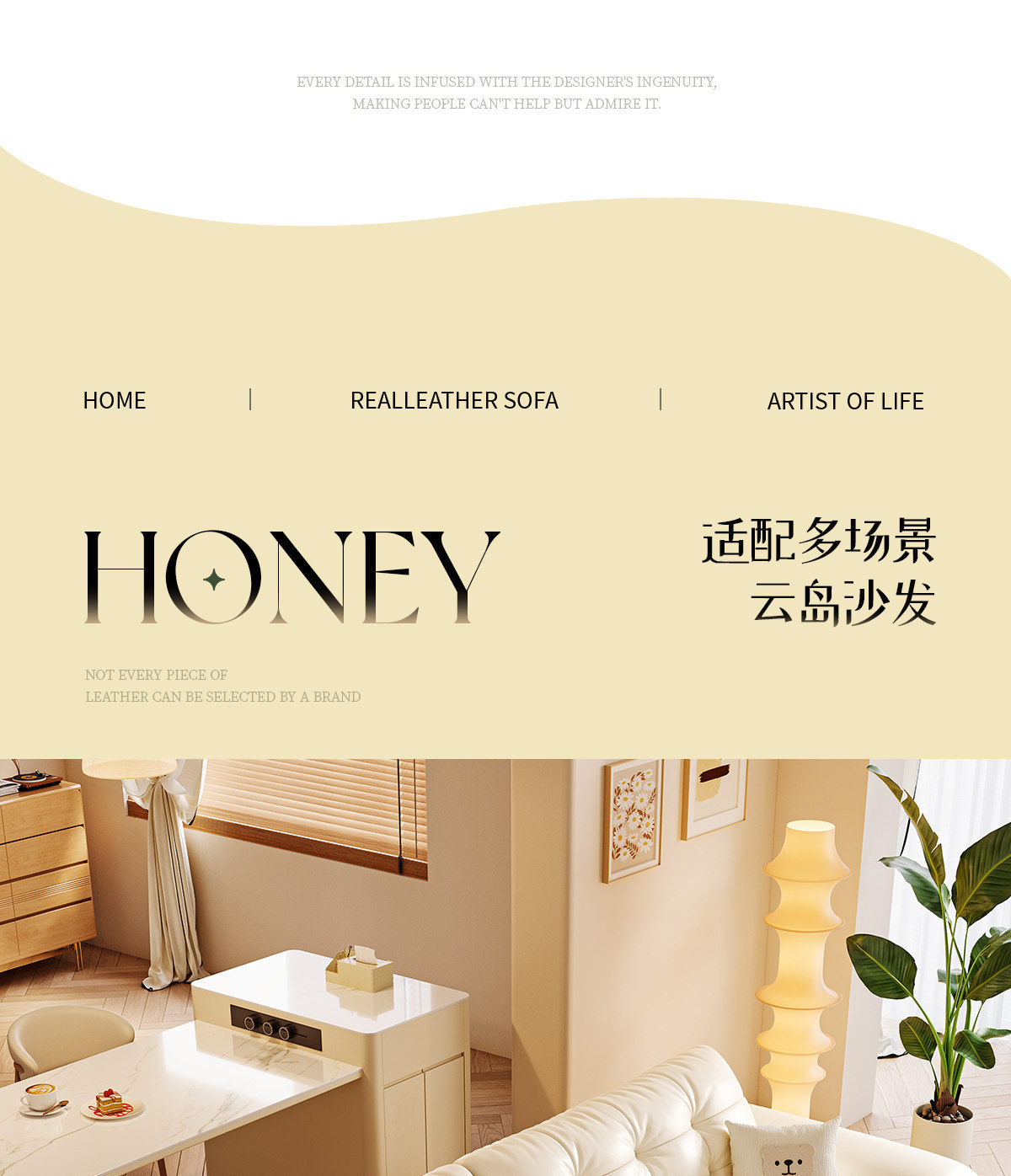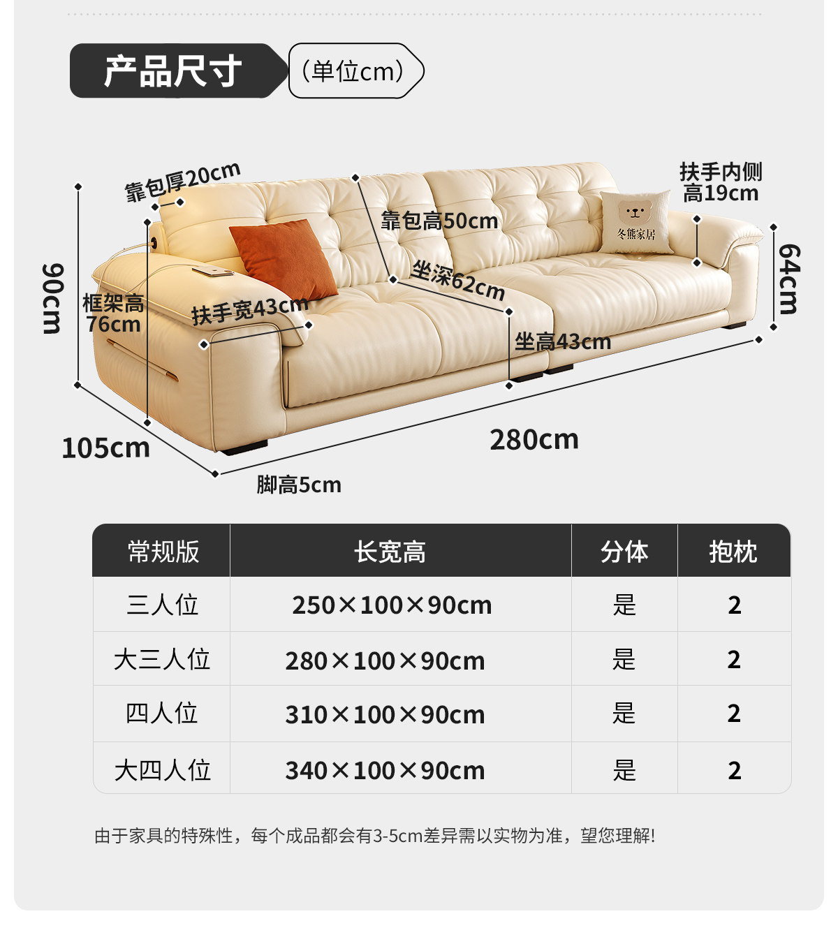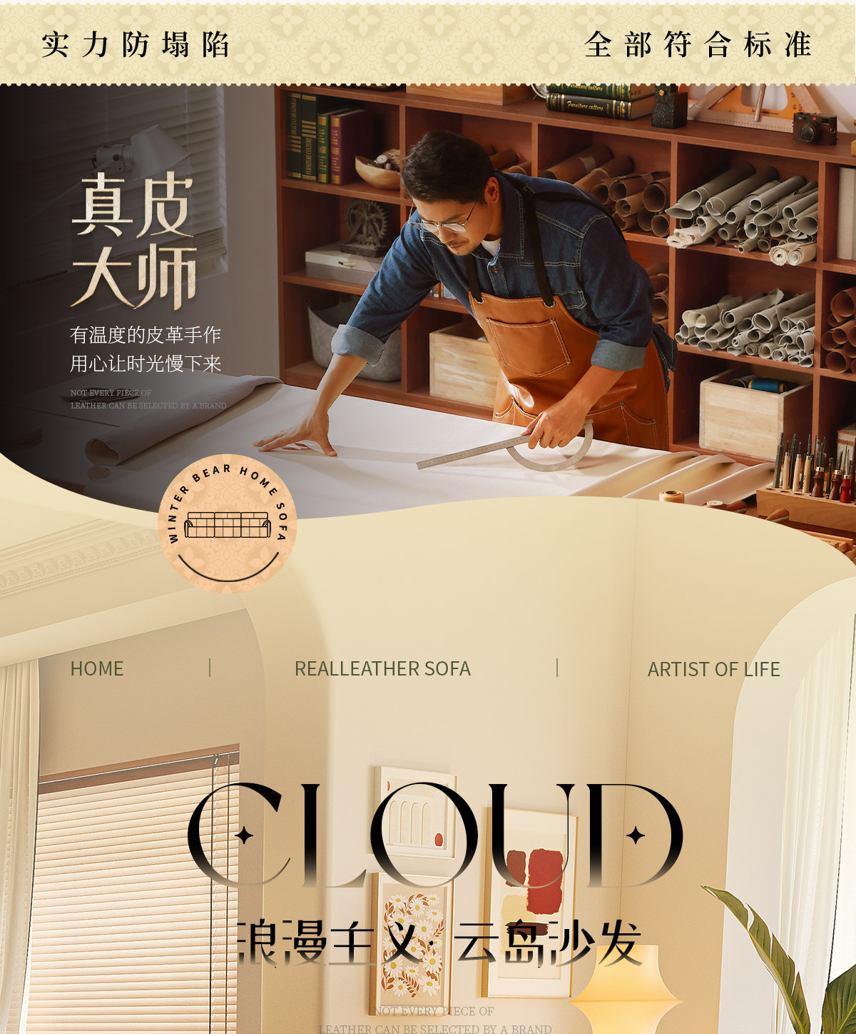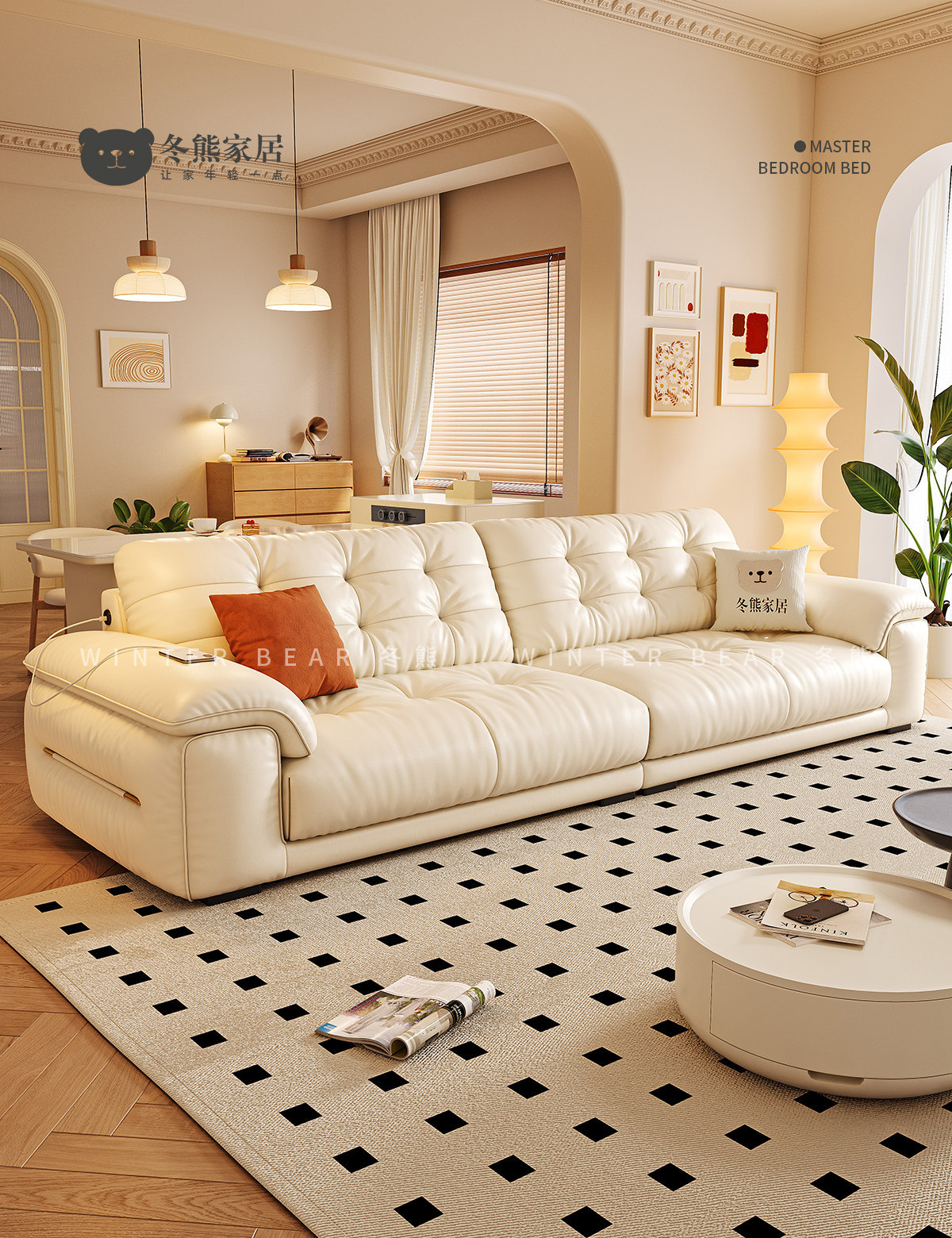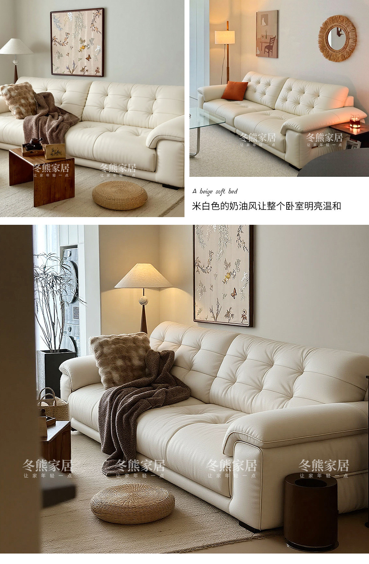 桐语特 真皮沙发法式奶油风云朵泡芙客厅小户型现代头层牛皮沙发