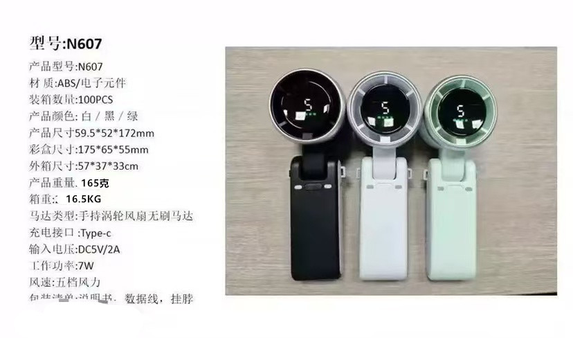 外贸爆款N607高速手持小风扇 usb迷你便携折叠挂脖暴力涡轮小风扇