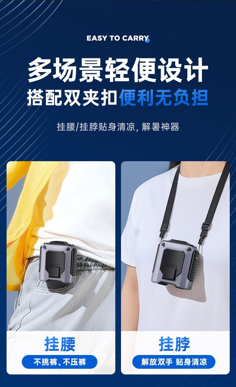 爆款户外挂腰风扇100档工地便携式大风力暴力涡轮空调