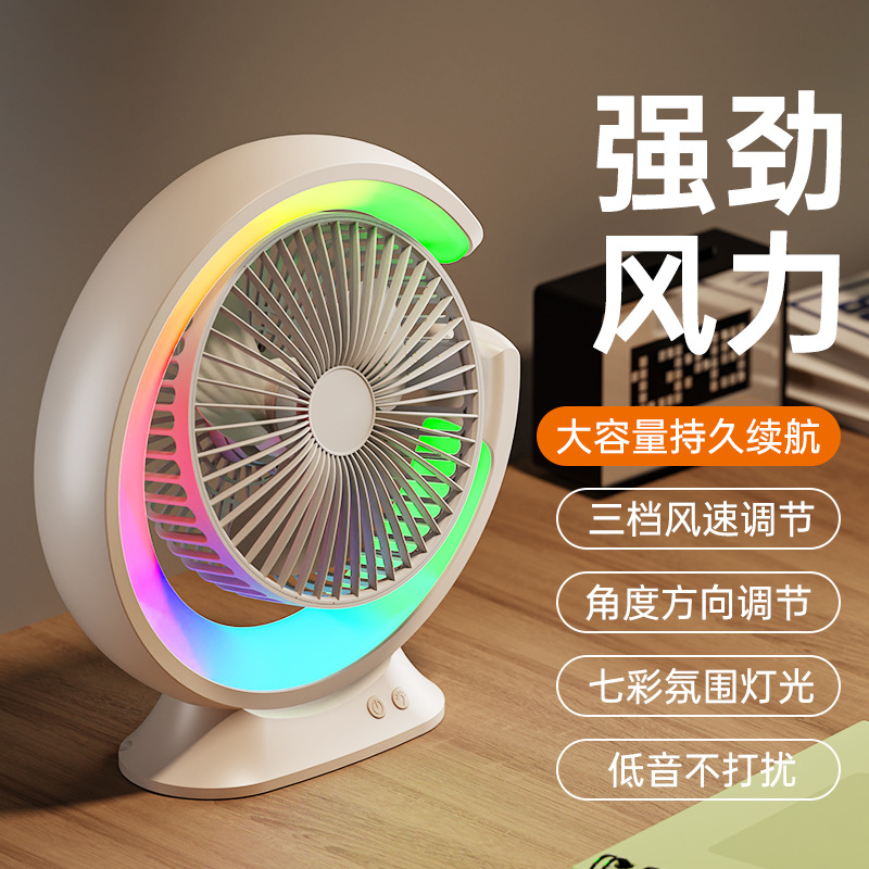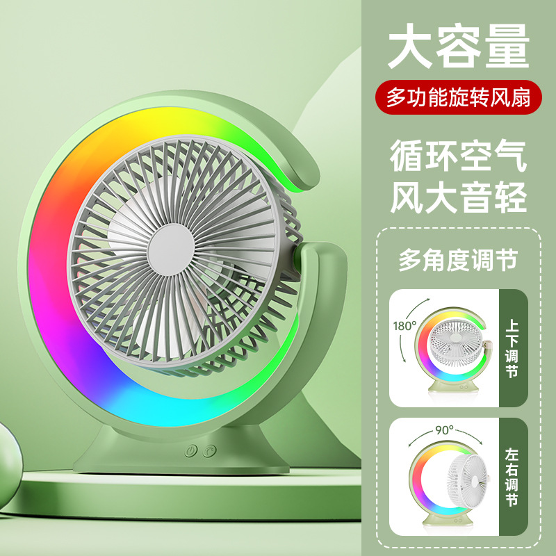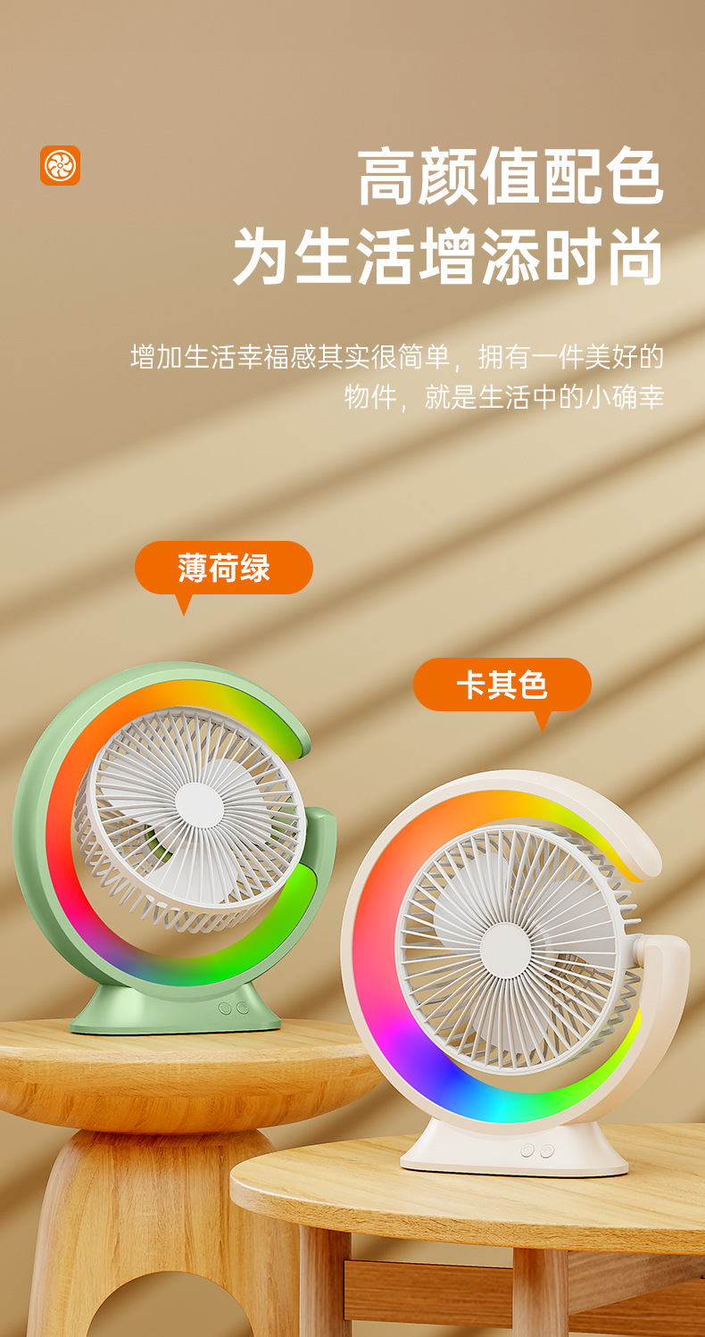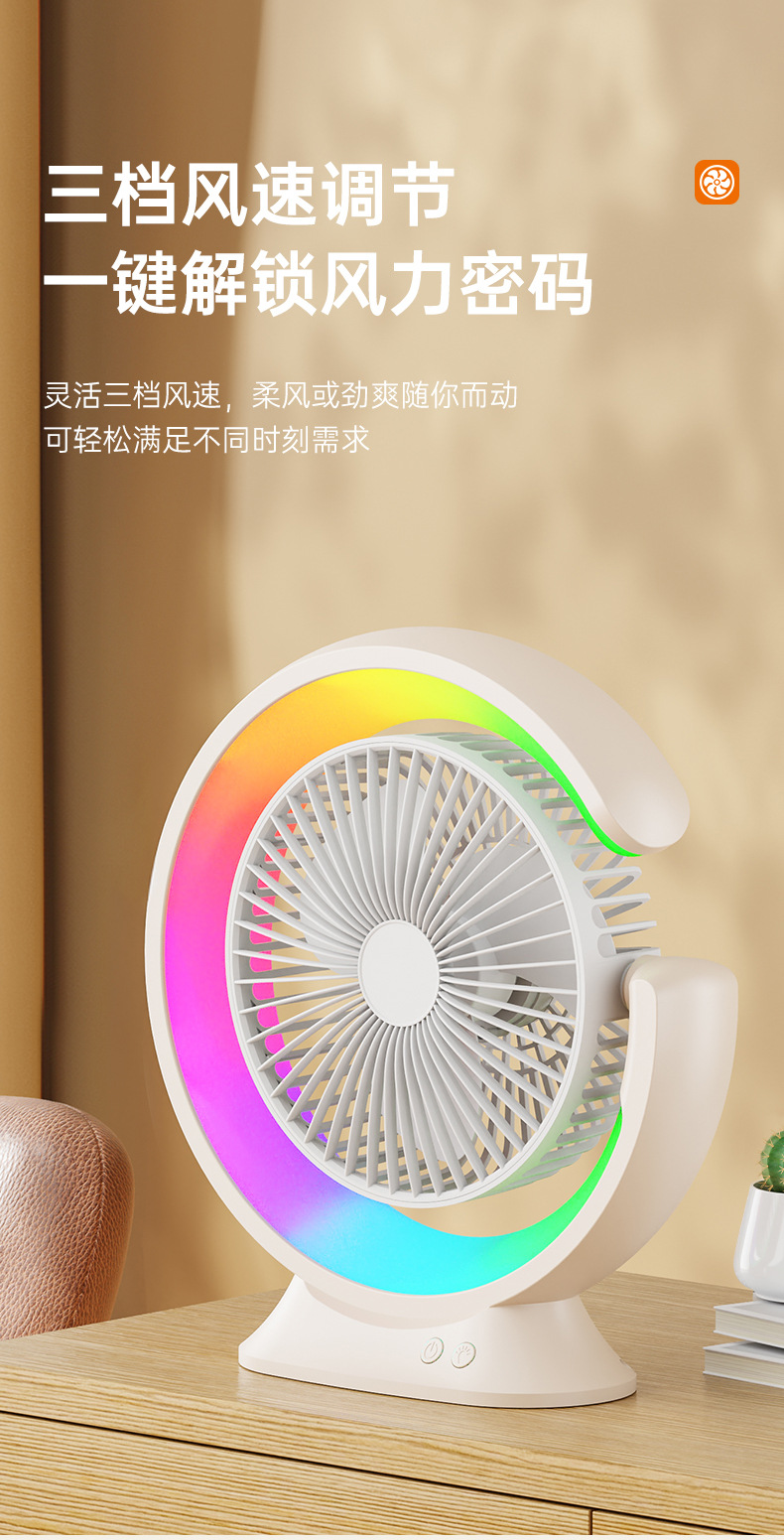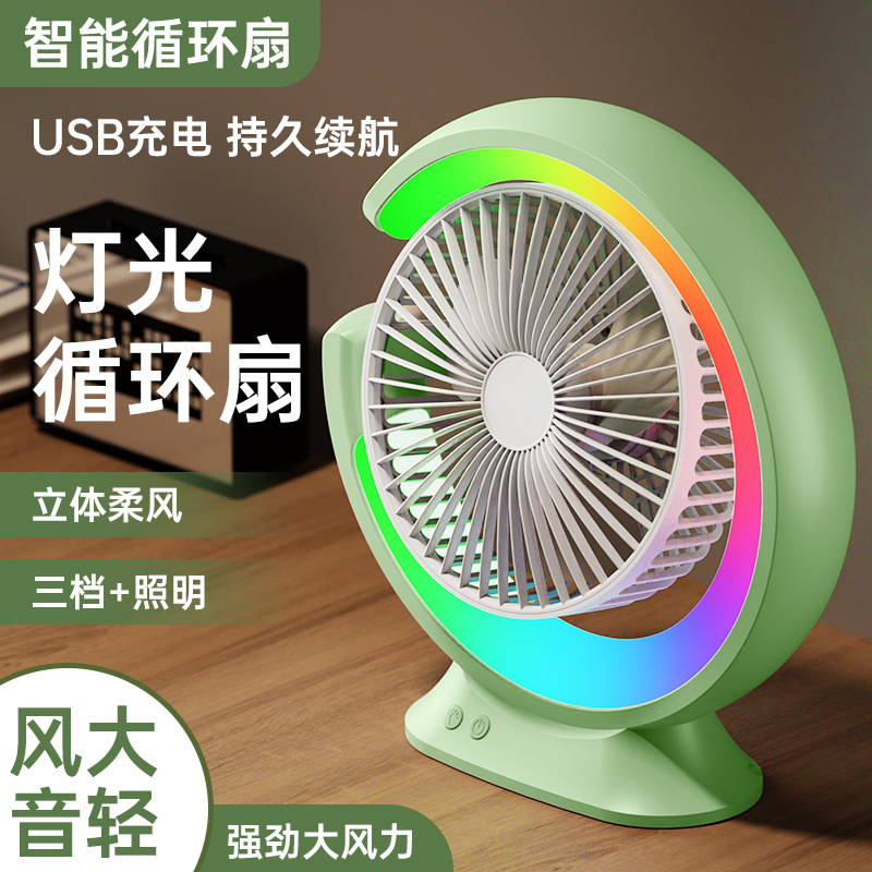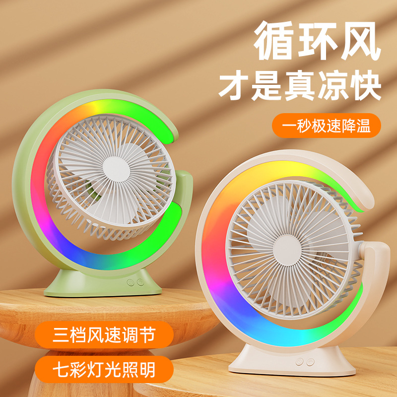 家用宿舍办公室便携跑马灯小风扇USB夜灯电风扇跨境大风力循环扇