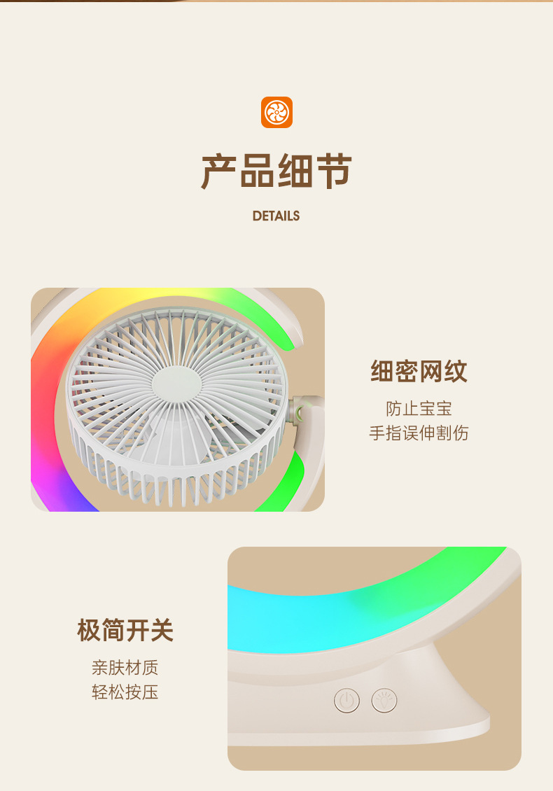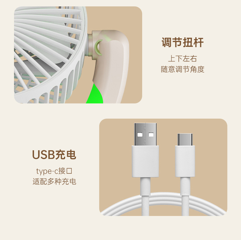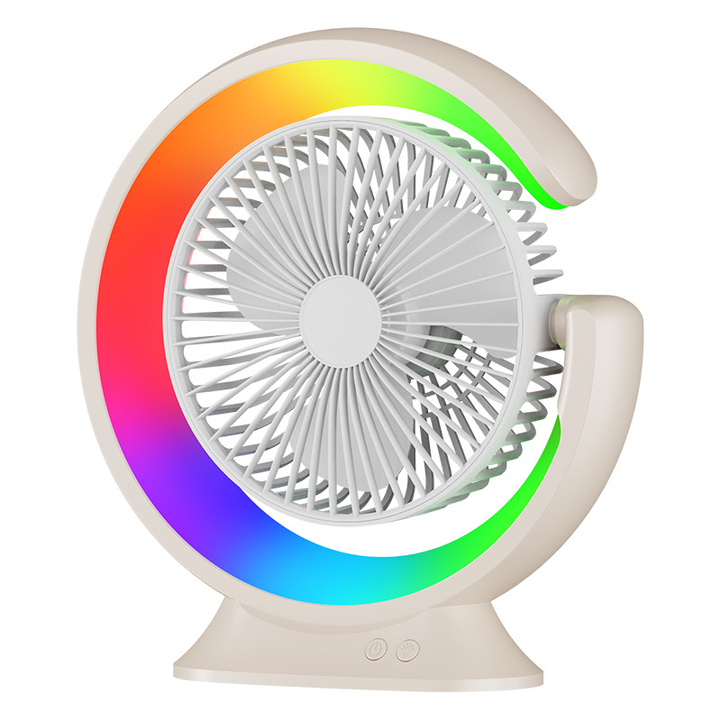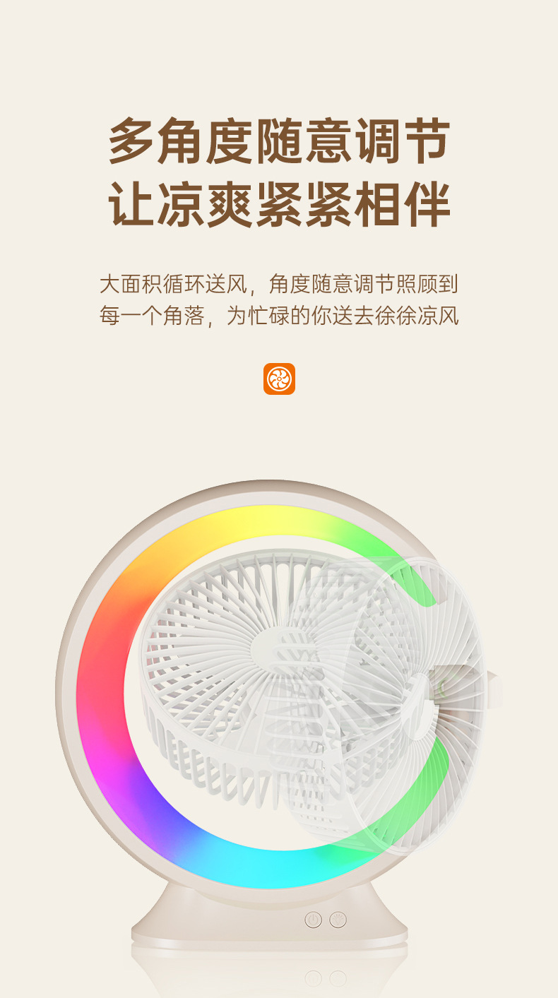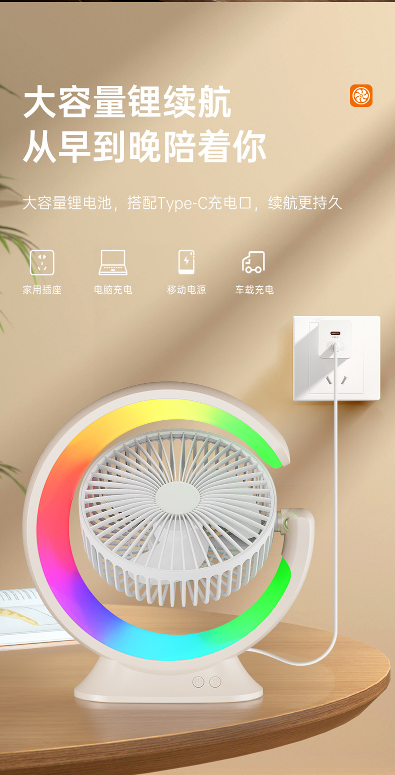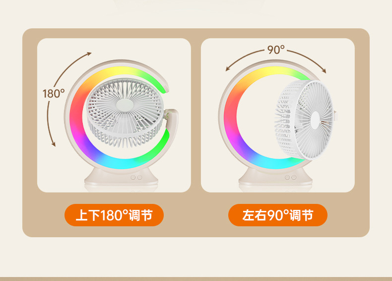 家用宿舍办公室便携跑马灯小风扇USB夜灯电风扇跨境大风力循环扇