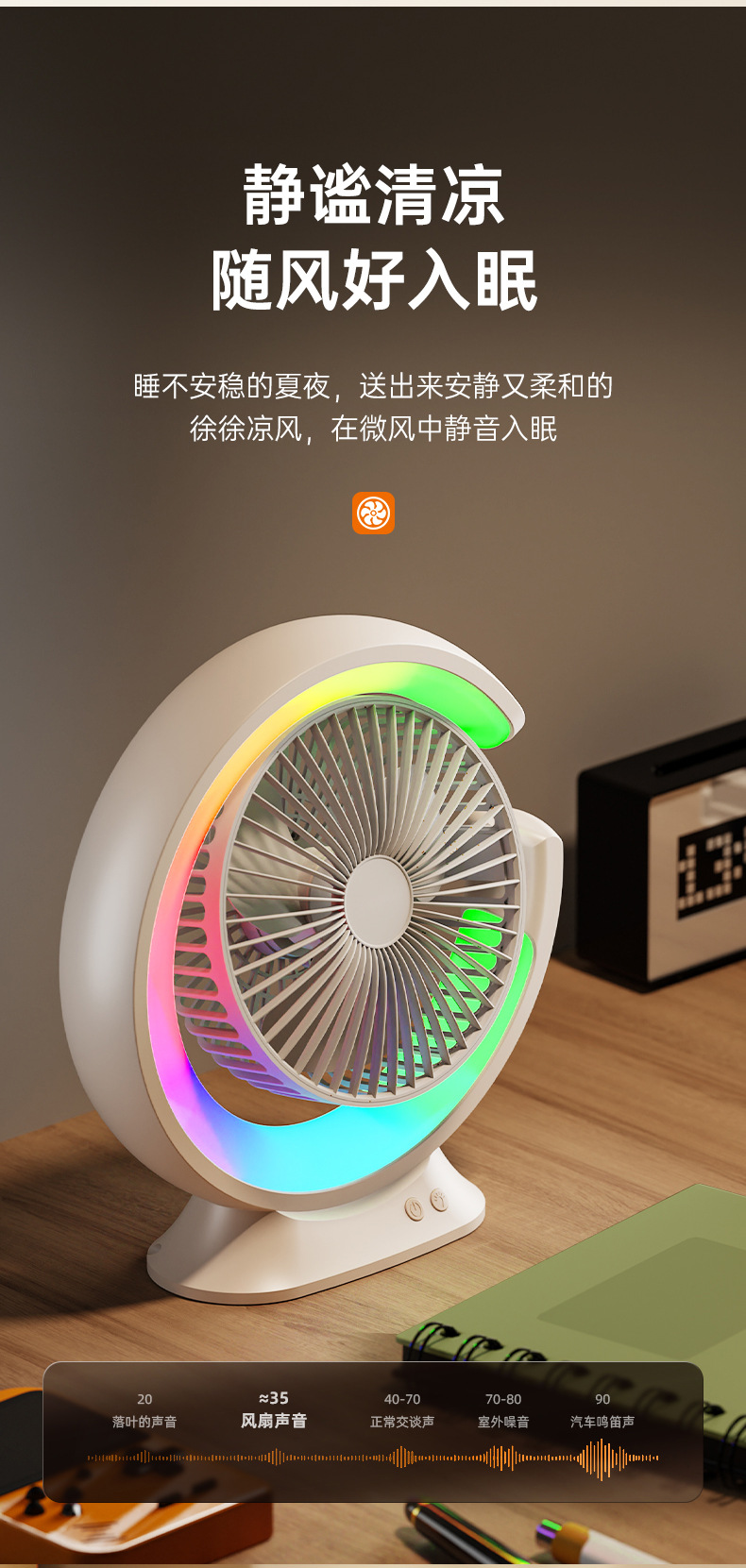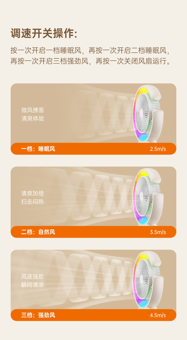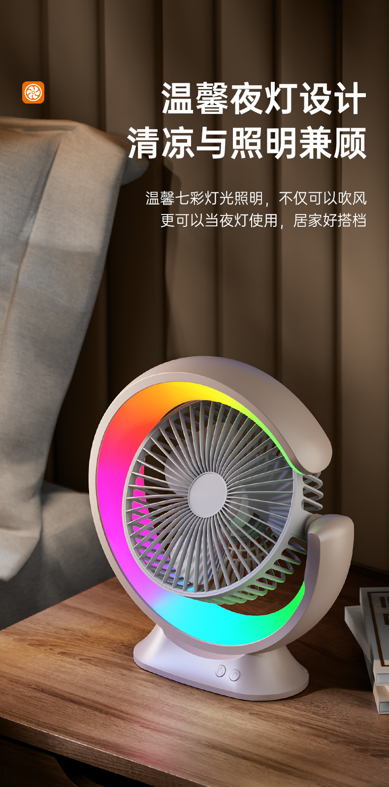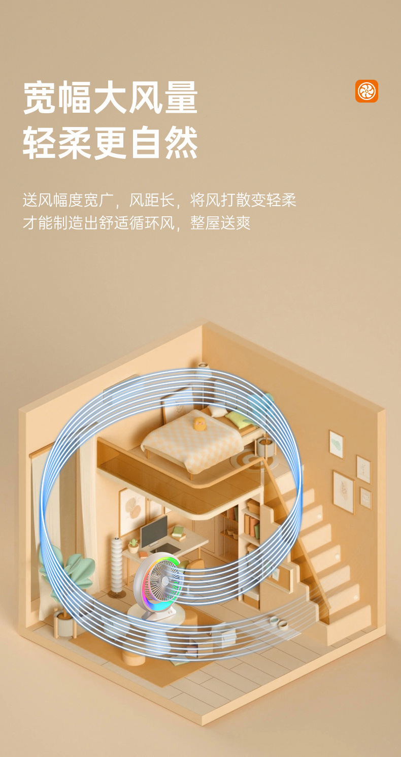 家用宿舍办公室便携跑马灯小风扇USB夜灯电风扇跨境大风力循环扇