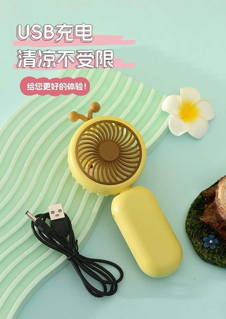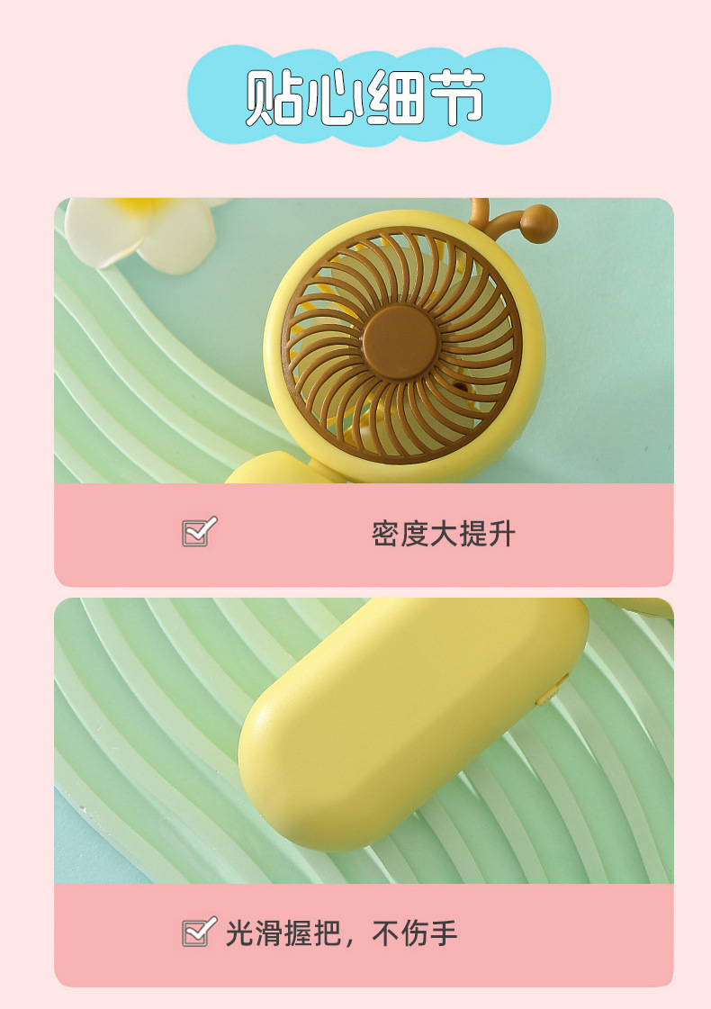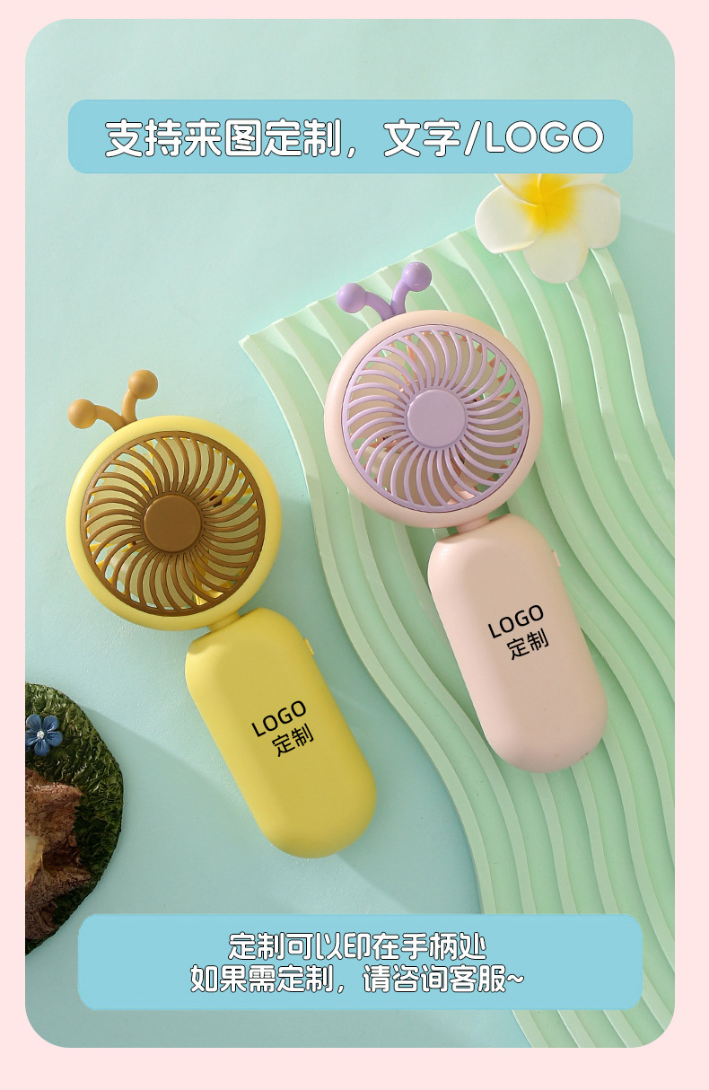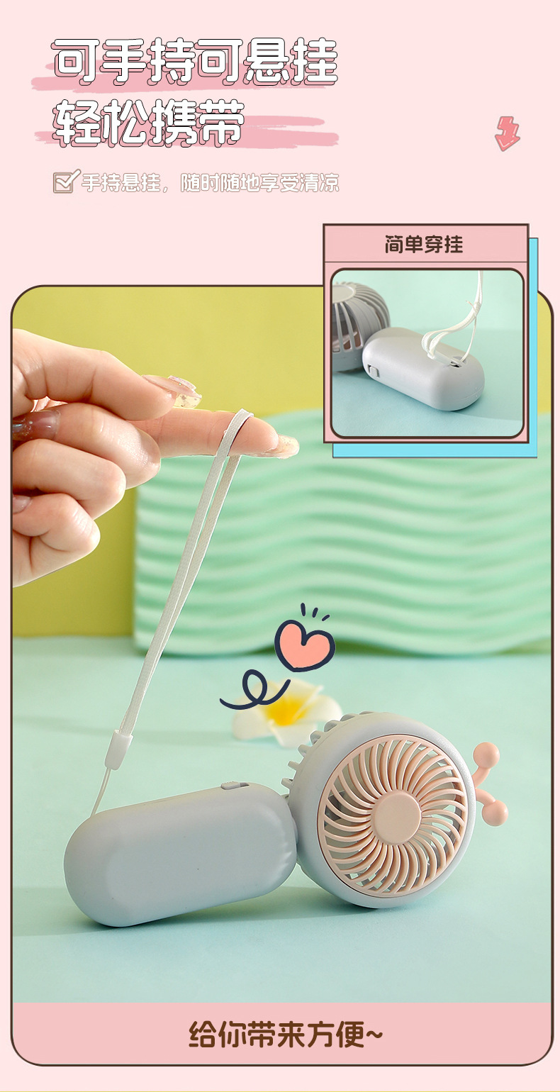 新款手持迷你风扇 桌面随身便携扣环USB充电灯光口袋风扇logo印制