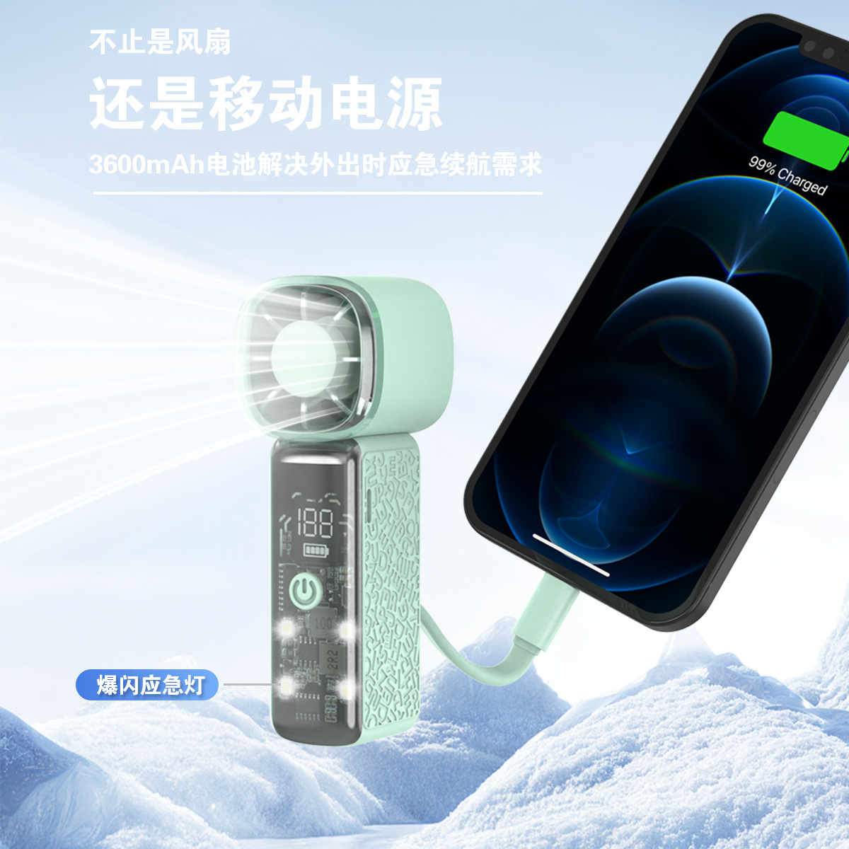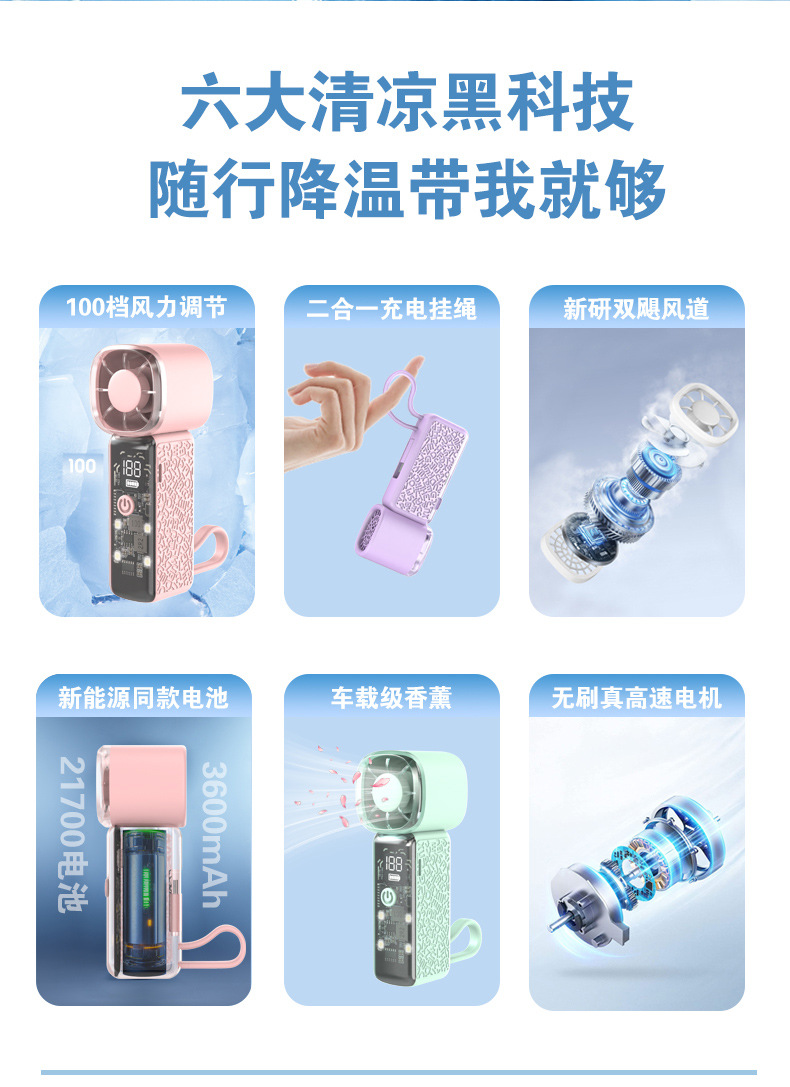 2026新款风扇马年迷你香薰驱蚊手持高速风扇二合一充电涡轮便携式