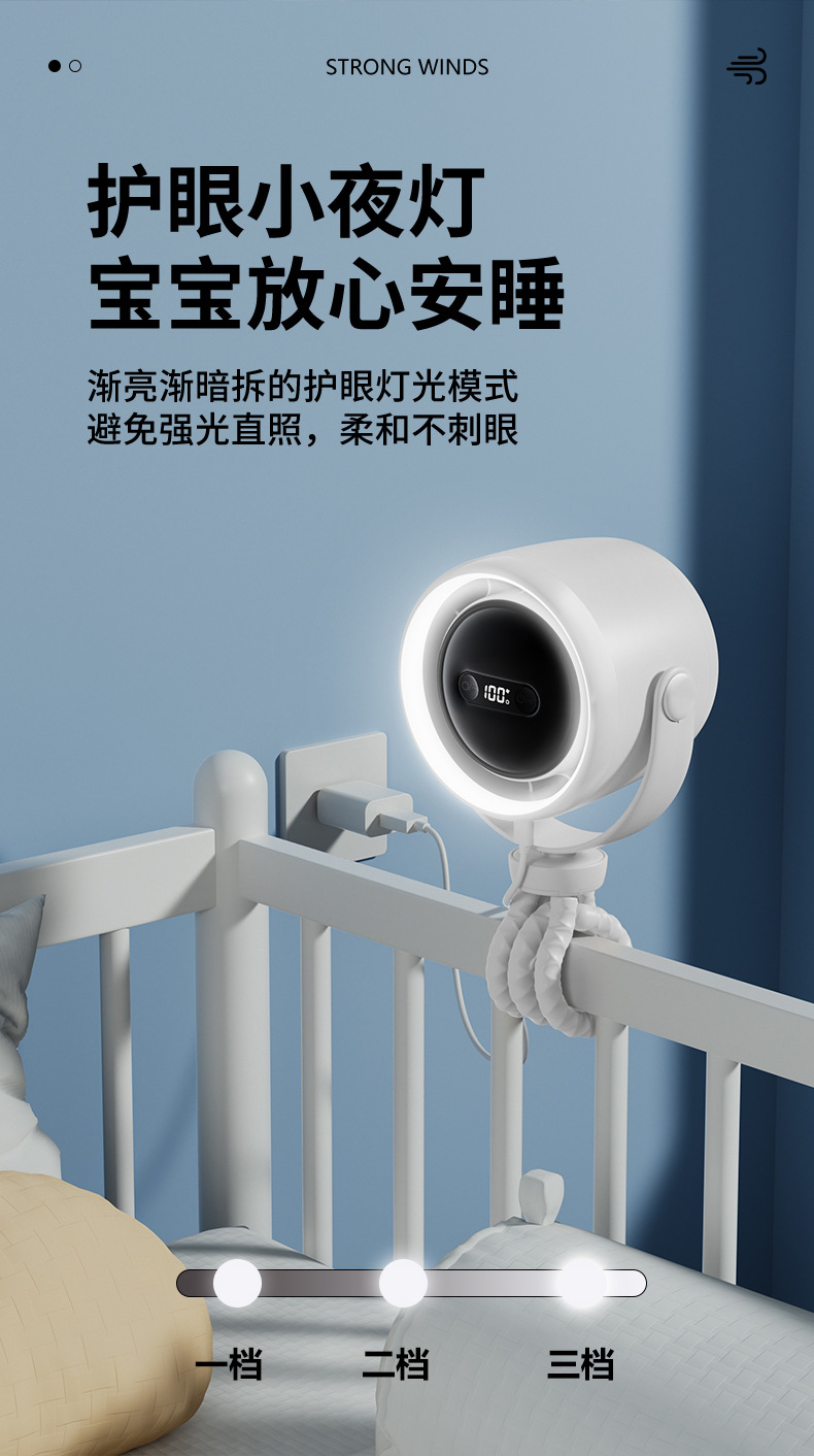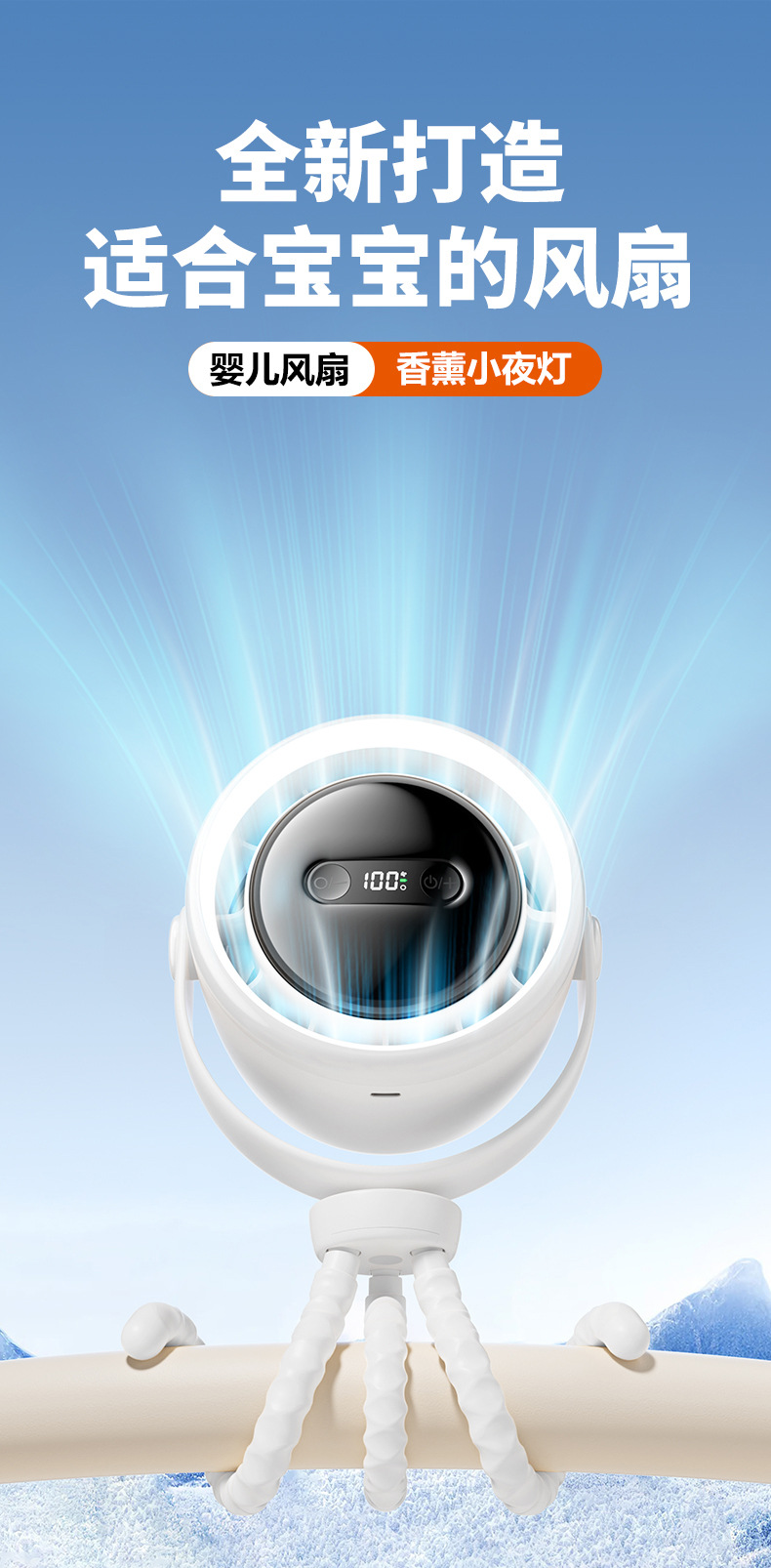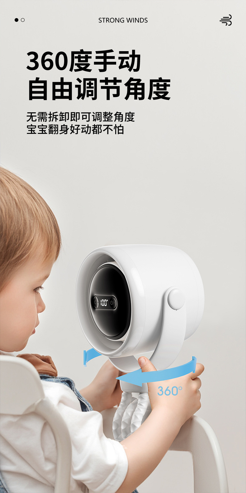 婴儿车风扇防夹手宝宝空气循环扇八爪鱼儿童便携吹辅食小静音便携