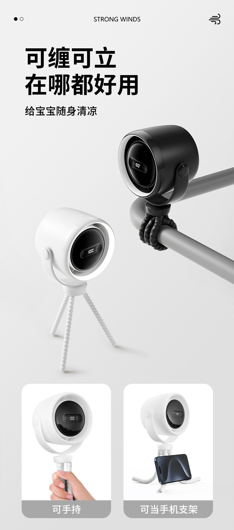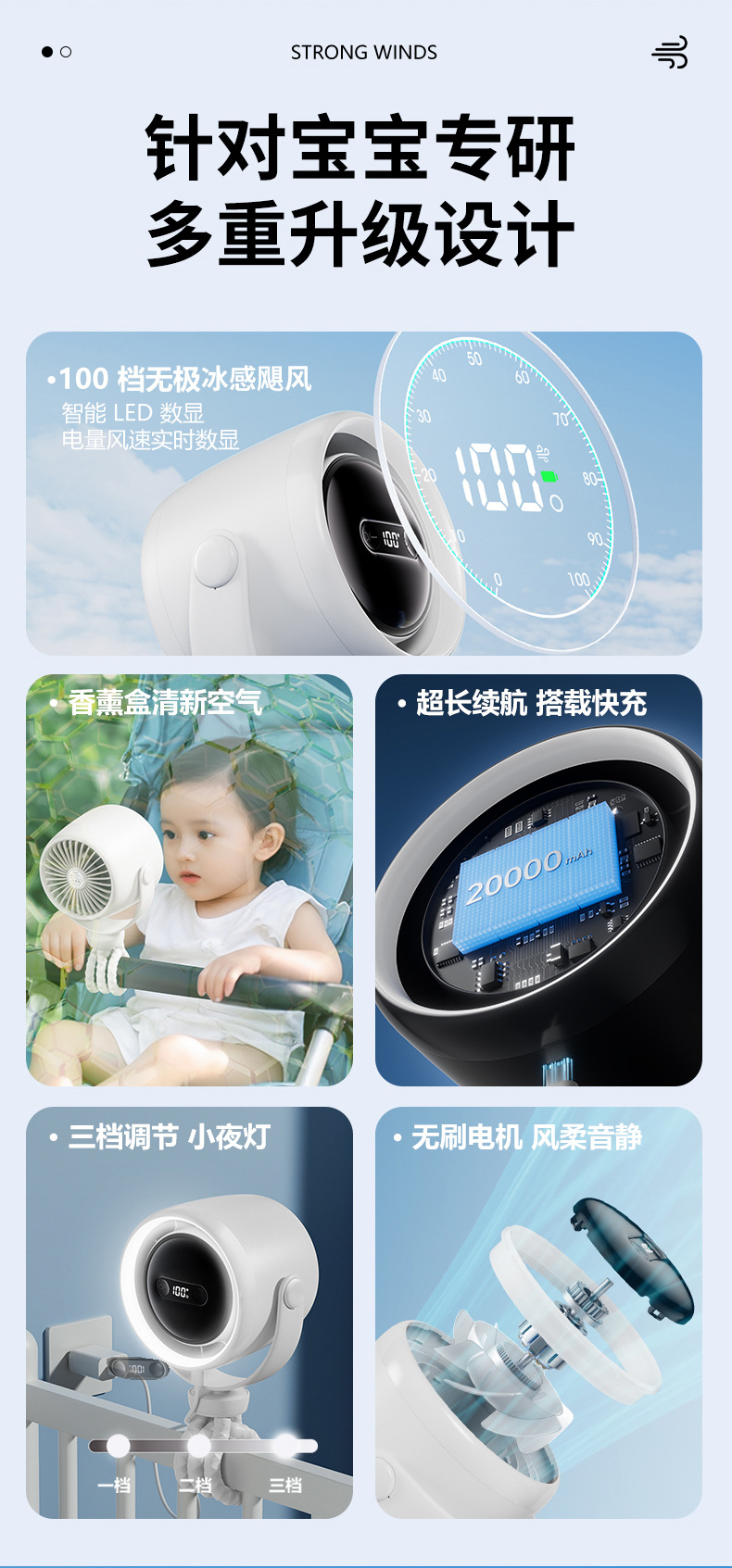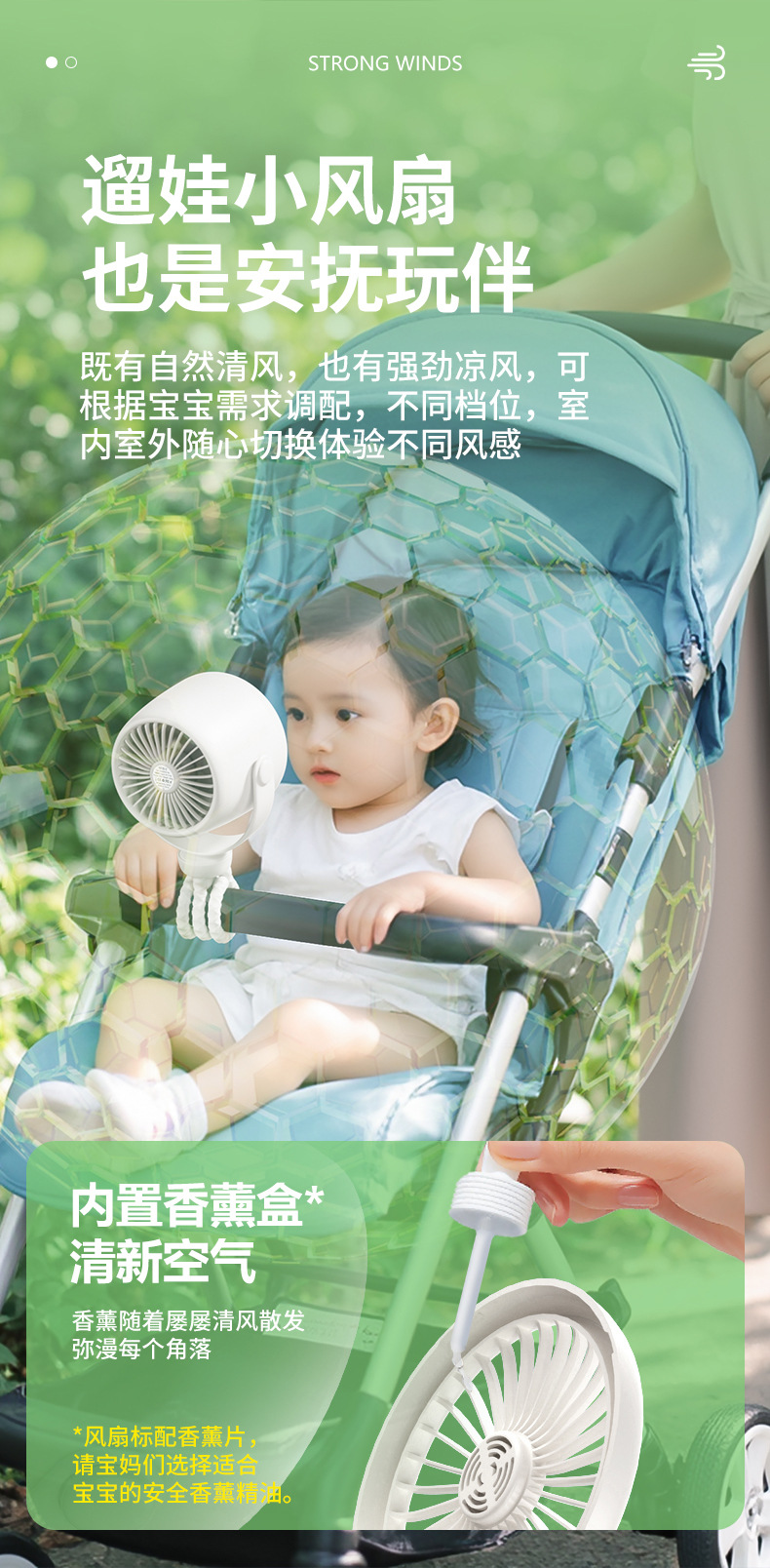 婴儿车风扇防夹手宝宝空气循环扇八爪鱼儿童便携吹辅食小静音便携