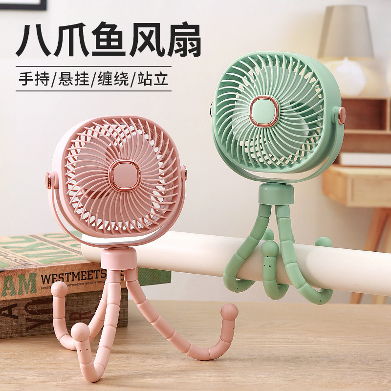 新款多功能八爪鱼风扇 婴儿车户外便携桌面usb充电迷你电风扇跨境