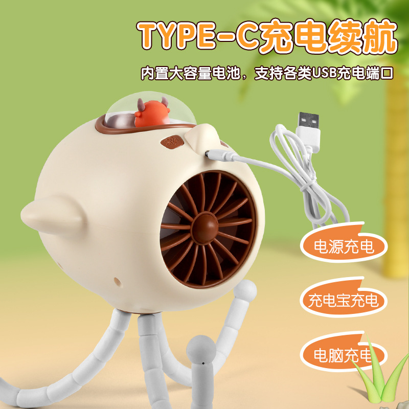 2026新款婴儿车风扇 usb无刷大容量桌面卡通八爪鱼小电扇跨境logo