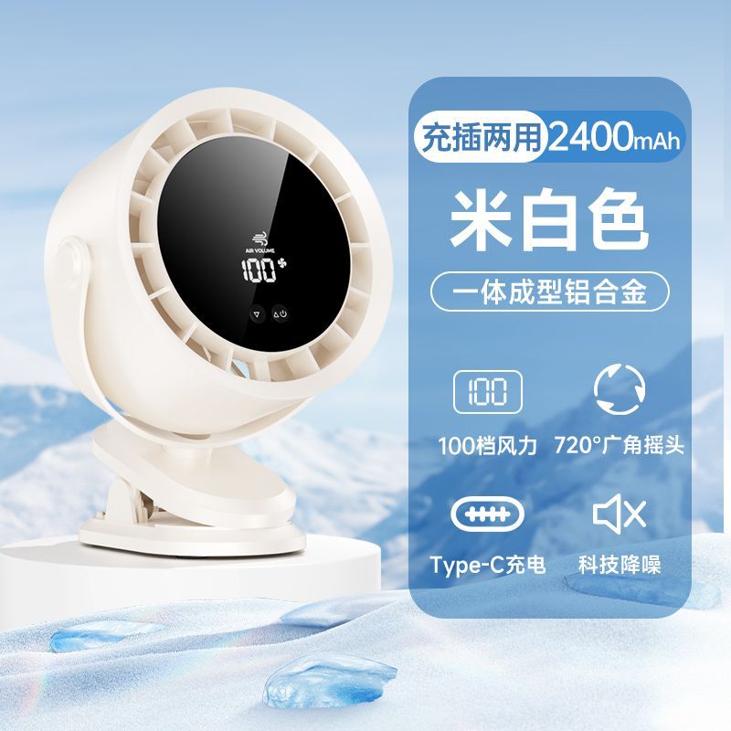 新款夹式自动摇头小风扇桌面办公usb可充电超长续航学生宿舍静音